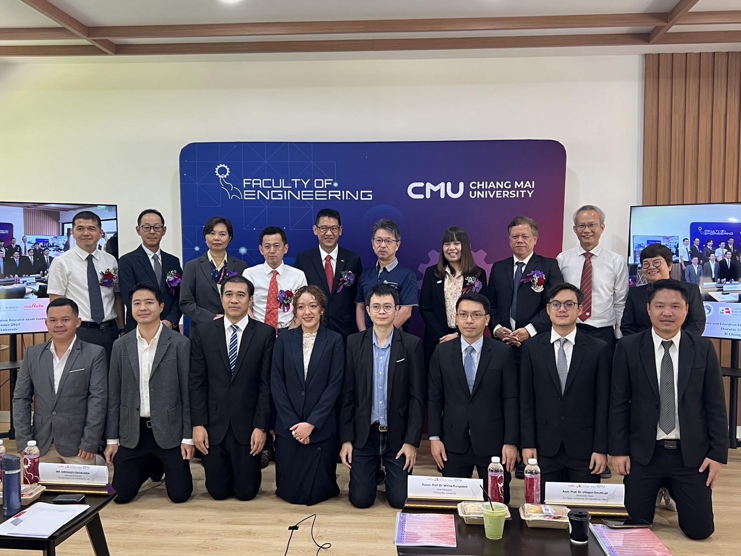 The ceremony was honored by the presence of the Director of Murata Electronics (Thailand), Ltd., Associate Professor Dr. Winita Punyodom, Vice President of Chiang Mai University, and Associate Professor Dr. Niramon Utama-ang, Associate Dean of the Faculty of Agro-Industry, who all joined in congratulating the grant recipient.