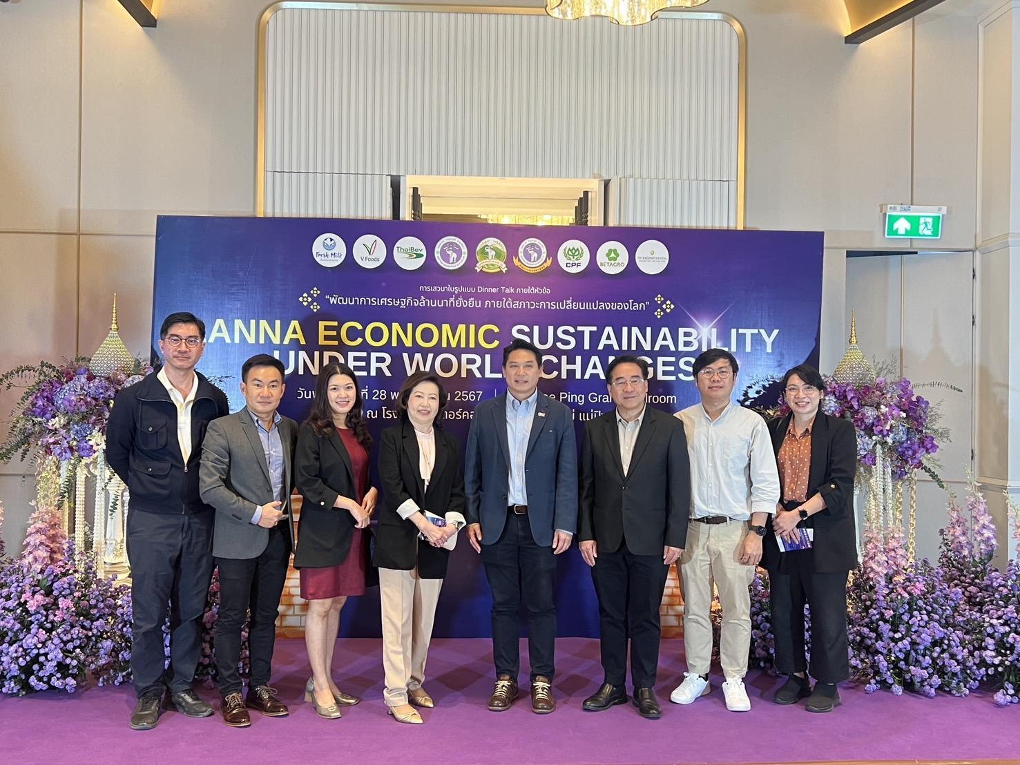 เมื่อวันพฤหัสบดีที่ 28 พฤศจิกายน 2567 รองศาสตราจารย์ ดร.ยุทธนา พิมลศิริผล คณบดีคณะอุตสาหกรรมเกษตร พร้อมด้วยคณะผู้บริหาร เข้าร่วมเป็นเกียรติในงาน “Dinner Talk : LANNA ECONOMIC SUSTAINABILITY UNDER WORLD CHANGES” ภายใต้หัวข้อ “พัฒนาการเศรษฐกิจล้านนาที่ยั่งยืนภายใต้สภาวะการเปลี่ยนแปลงของโลก” โดยได้รับเกียรติจาก ดร.ฐาปน สิริวัฒนภักดี ประธานเจ้าหน้าที่บริหาร บริษัท ไทยเบฟเวอเรจ จำกัด (มหาชน) องค์ปาฐกผู้ทรงคุณวุฒิ และดำเนินรายการโดย คุณอภิรักษ์ โกษะโยธิน ประธานกรรมการบริหาร บริษัท วีฟู้ดส์ (ประเทศไทย) จำกัด ซึ่งการจัดงานครั้งนี้มีวัตถุประสงค์เพื่อถ่ายทอดองค์ความรู้ในการพัฒนาเศรษฐกิจและสังคมล้านนาอย่างยั่งยืน ภายใต้การเปลี่ยนแปลงของโลกอย่างรวดเร็ว