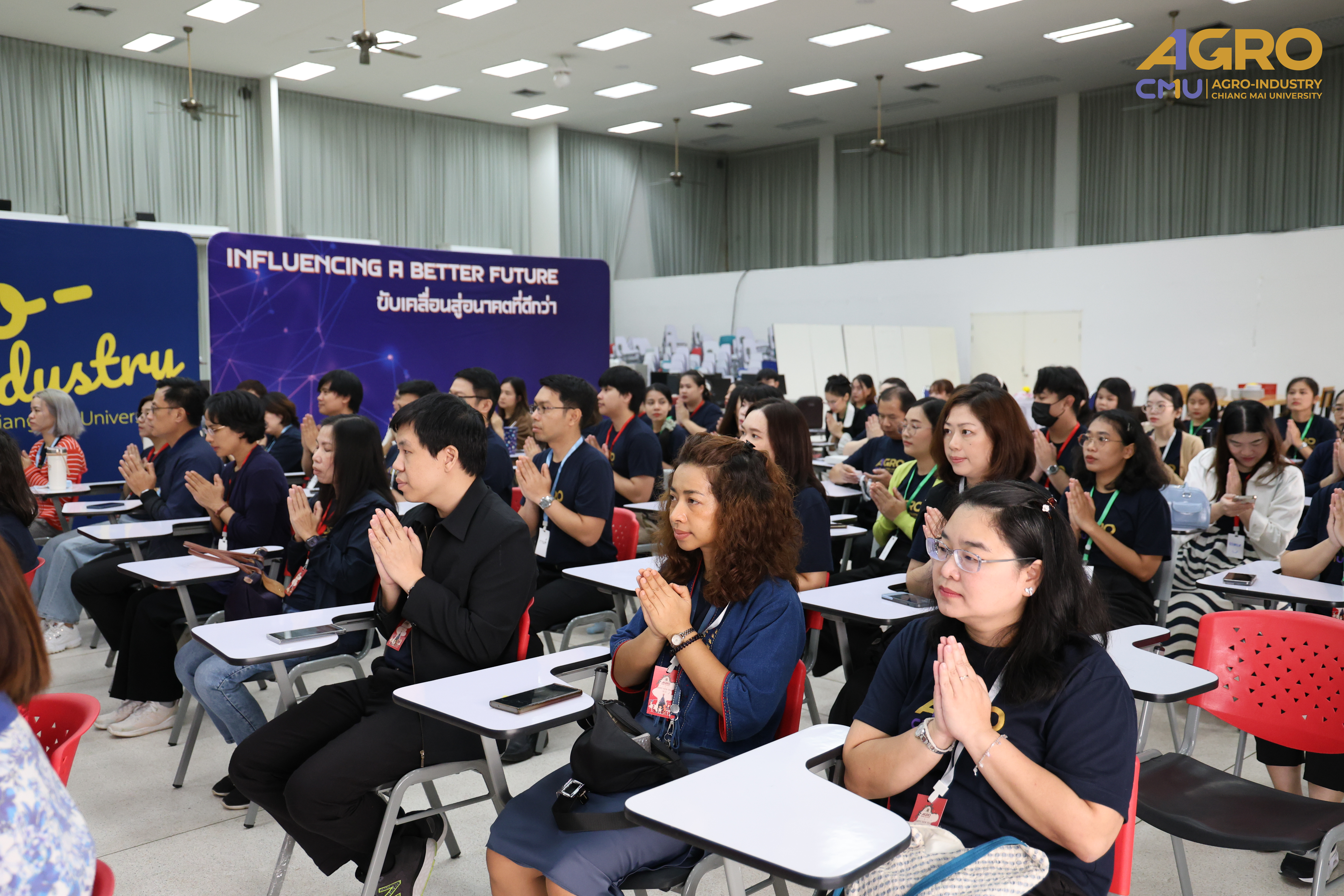 On December 18, 2024, Associate Professor Dr. Yuthana Phimolsiripol, Dean of the Faculty of Agro-Industry, along with the administration, faculty members, staff, and students of the Faculty of Agro-Industry, participated in a merit-making ceremony to commemorate the 32nd anniversary of the Faculty's establishment. The event included congratulatory activities for staff members who received various national and international awards (32 recipients), staff members who were promoted to higher academic positions (3 recipients), a New Year's Eve celebration, and the annual Agro-Industry Sports Day for 2024. The activities took place at the conference hall of the Faculty of Agro-Industry, Chiang Mai University.