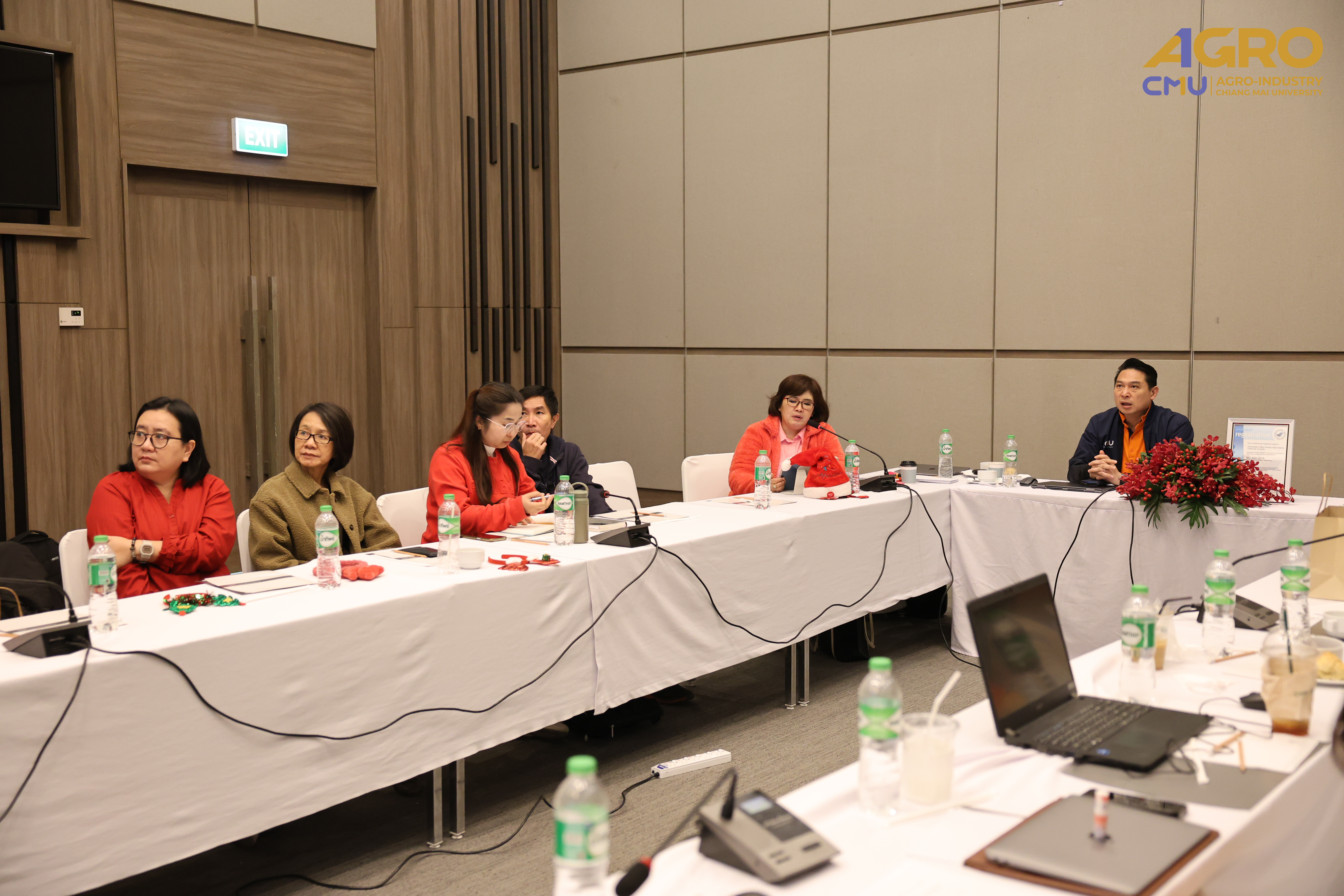 On December 26, 2024, the Office of the Faculty of Agro-Industry held its annual office meeting. Ms. Piyanuch Sawasdee, Secretary of the Faculty of Agro-Industry, presented the office development plan, the quality policy and ISO9001:2015 implementation, the No Gift Policy, the 2024 annual performance summary, and the 2025 Additionally, the dean, administrators, and faculty staff attended the meeting. which also featured a New Year's gift exchange activity. The meeting took place at the Doi Nang Meeting Room, 2nd Floor, Kantary Hills Hotel, Mueang District, Chiang Mai.