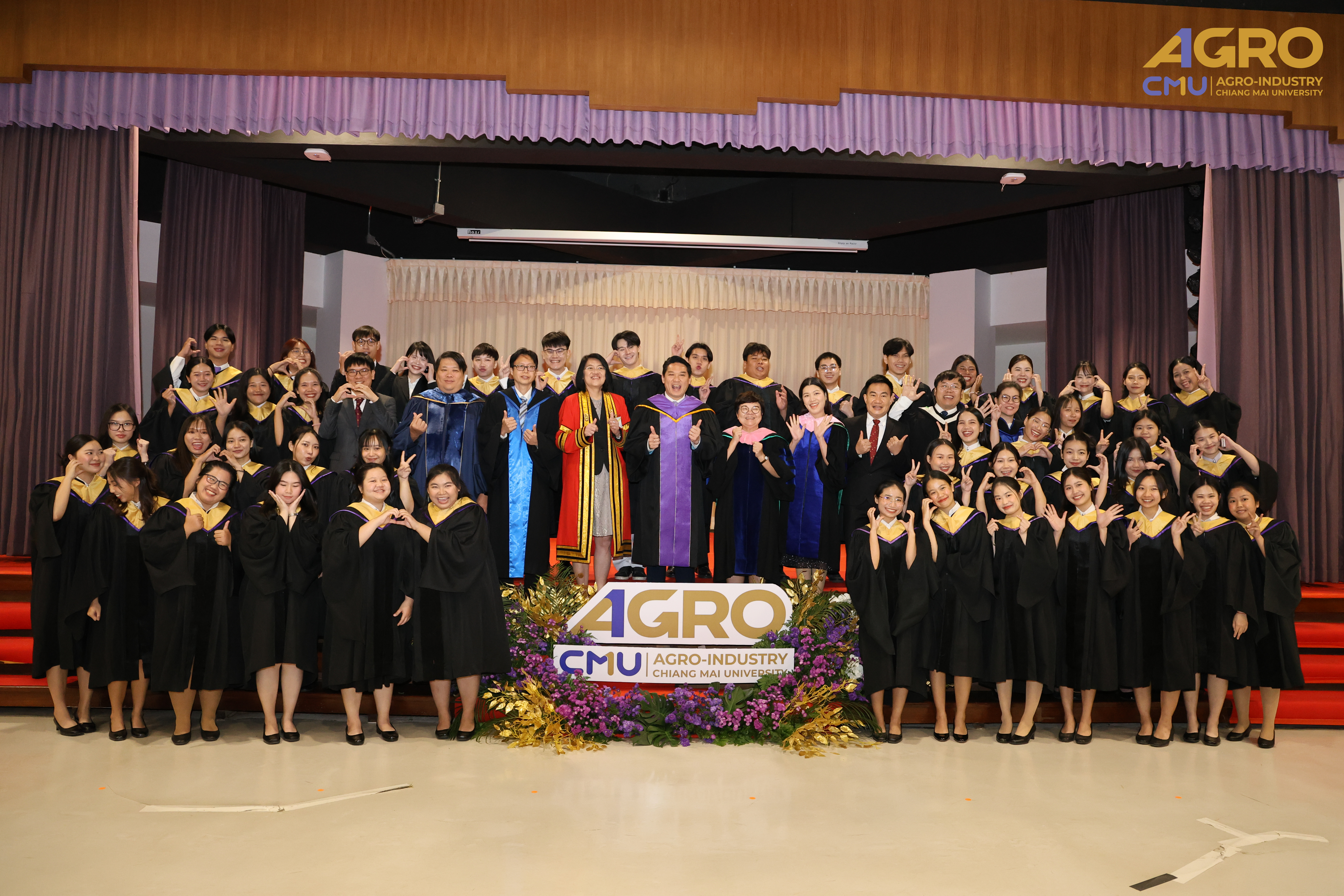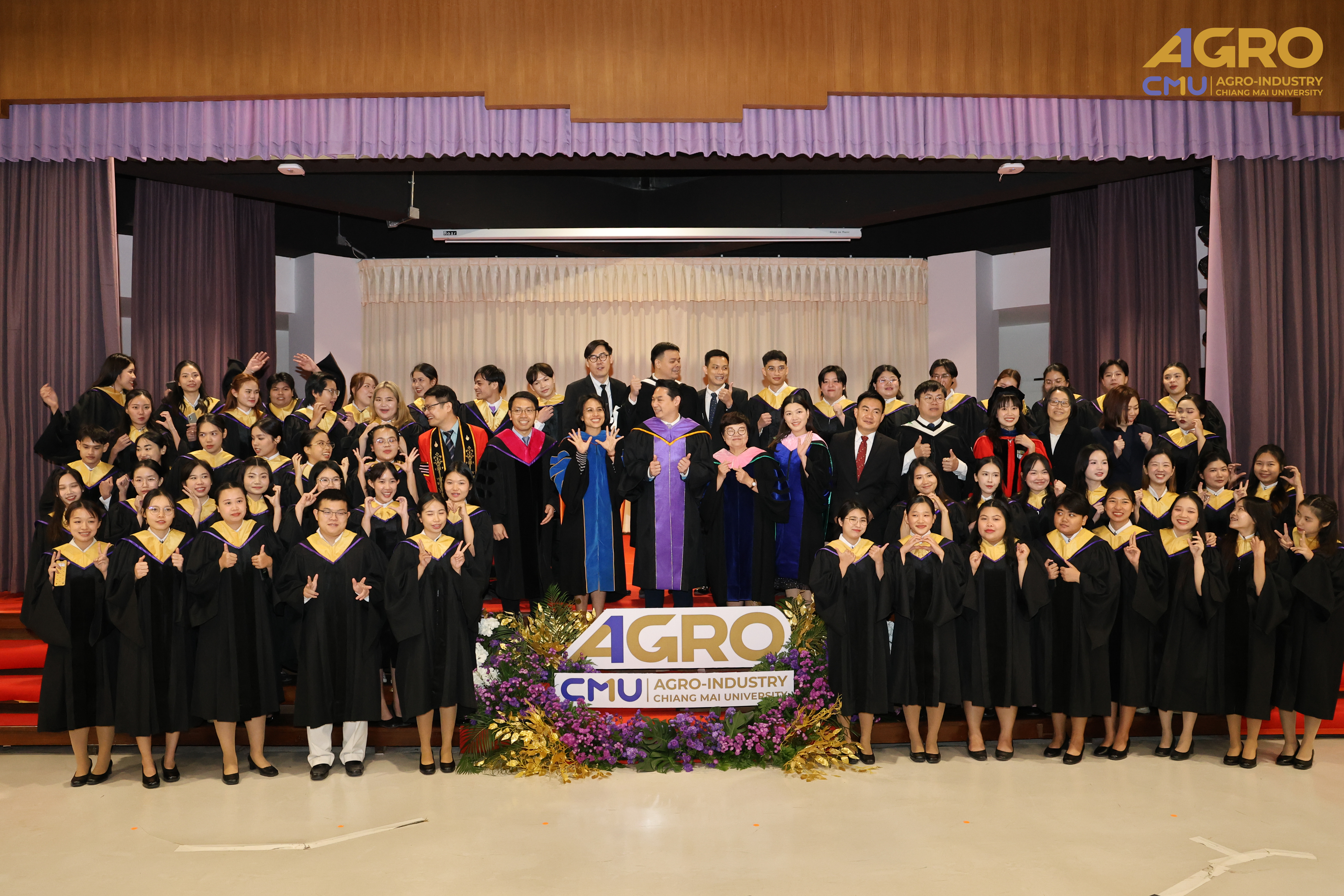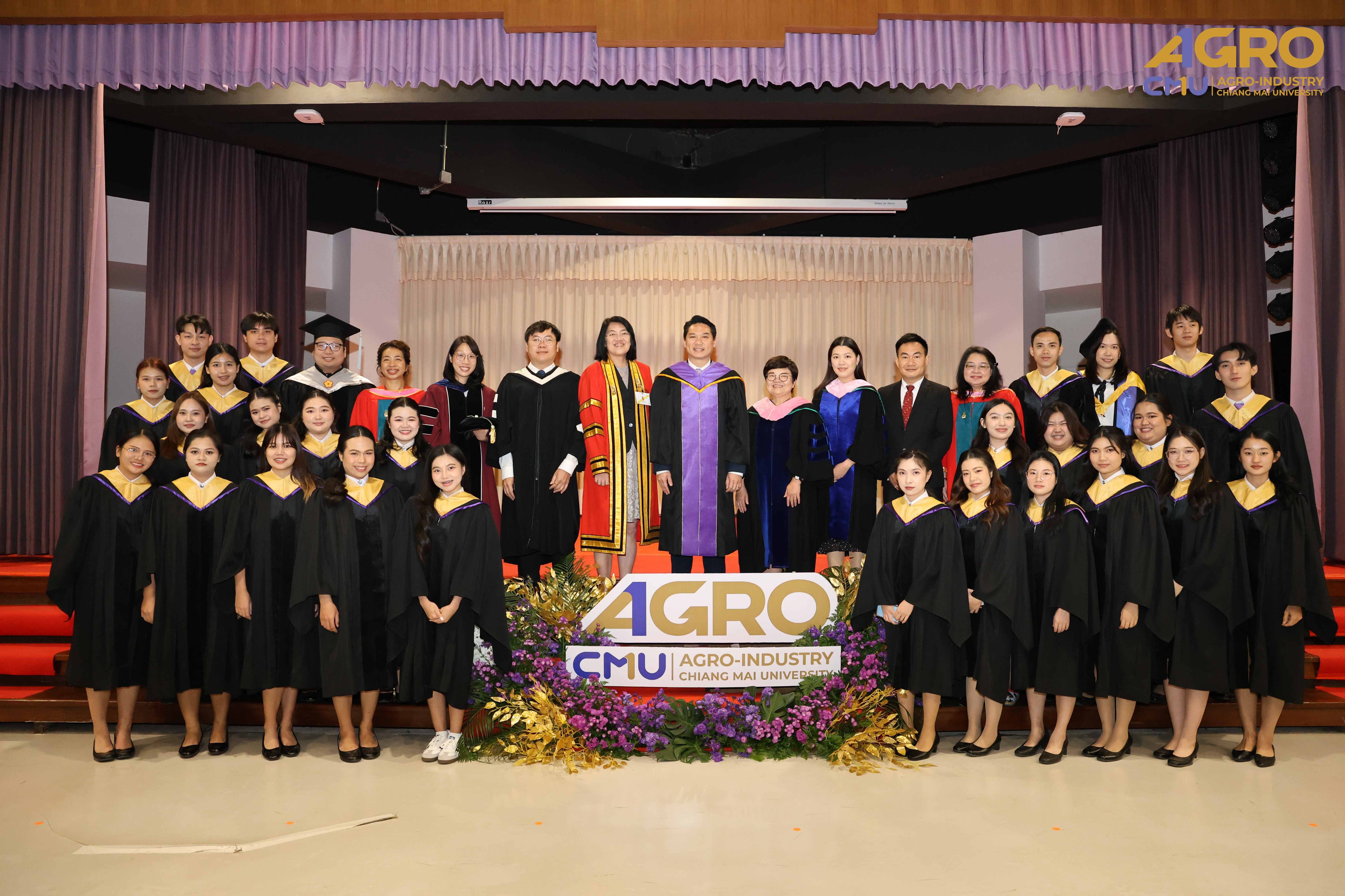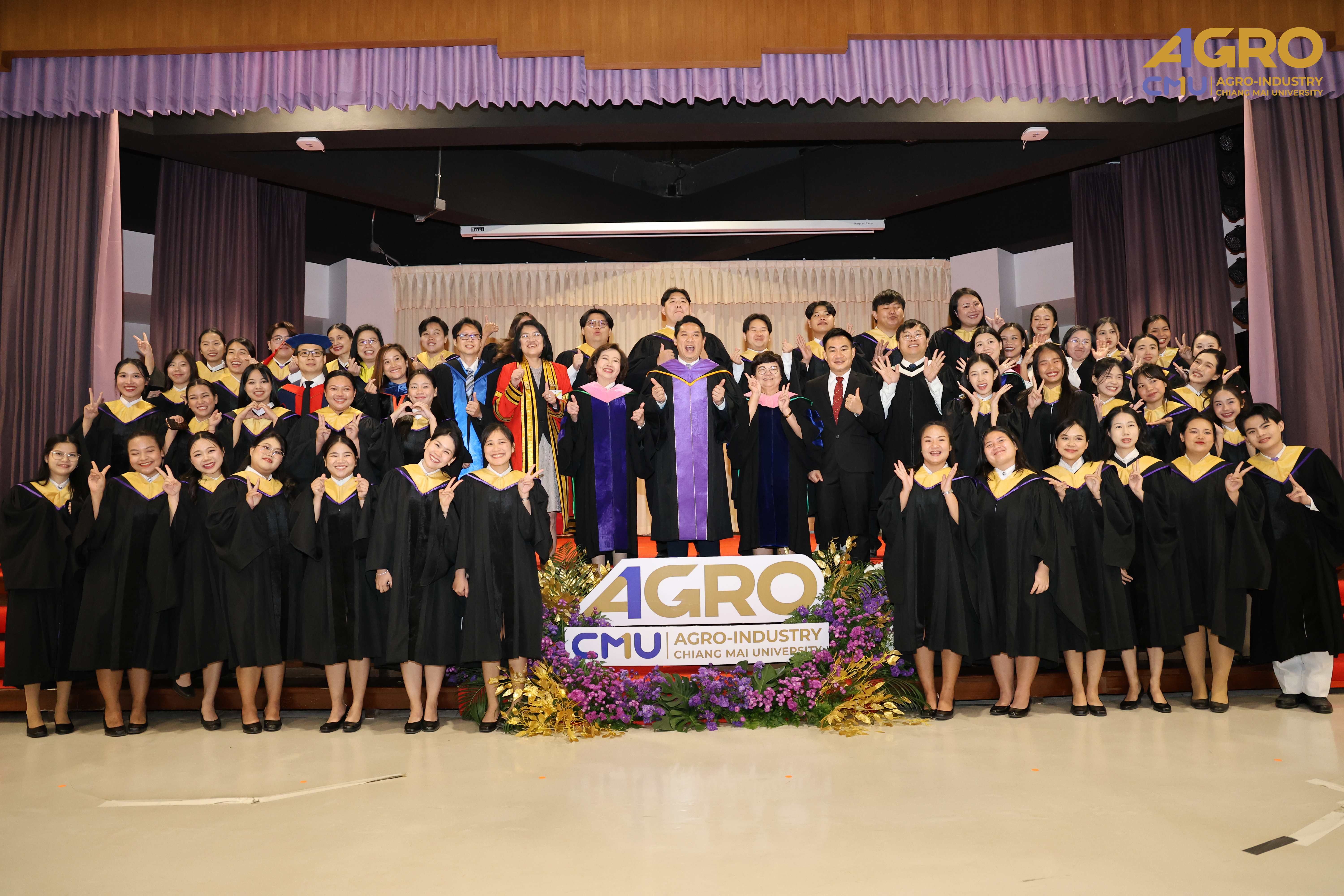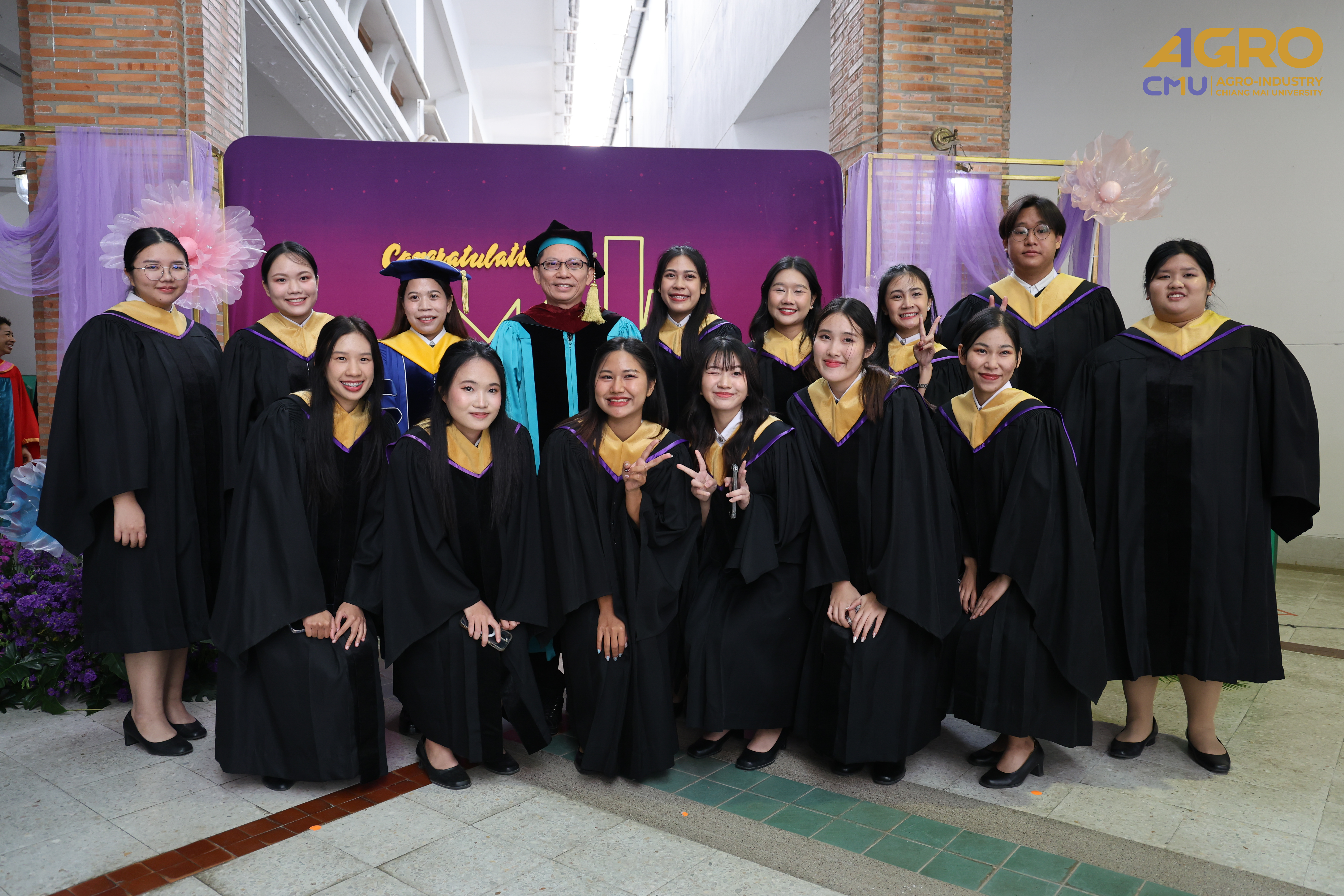 Sunday, January 12, 2025 at the More space, Chiang Mai University, Assoc. Prof. Yuthana Phimolsiripol, Ph.D., Dean of the Faculty of Agro-Industry, Chiang Mai University, along with the faculty executives, took a group photo and congratulated the graduates of Chiang Mai University, 59th CMU Commencement Ceremony of the faculty who graduated from the academic year 2023-2024, who will receive the 59th graduation ceremony on January 16, 2025.