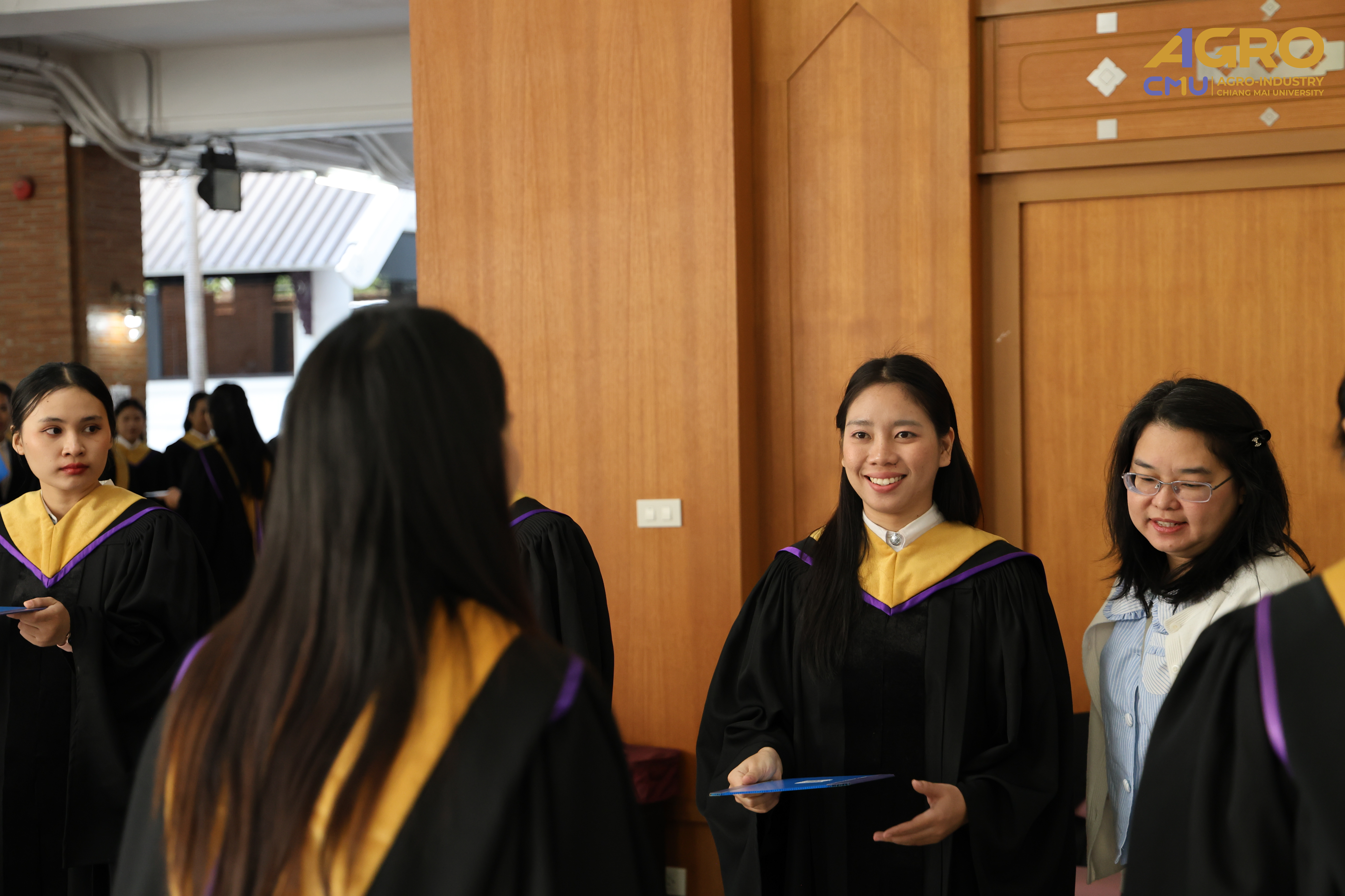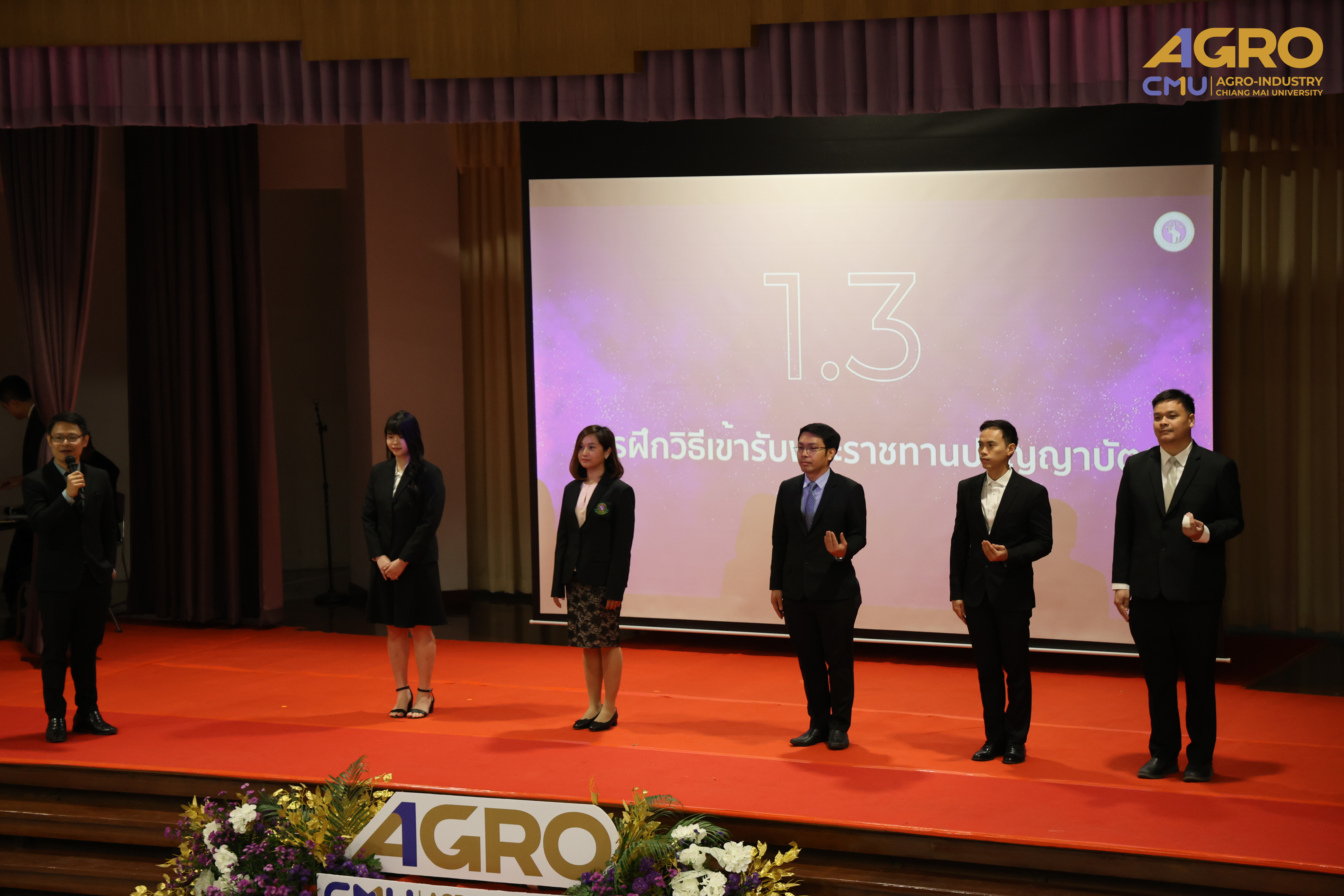 and the graduation ceremony rehearsal (Part of the faculty) at the small conference room Chiang Mai University Main Auditorium with more than 350 Participants along with the faculty executives, Lecturers , staff of faculty, the graduates of Faculty of Agro-Industry, and students attending the event.