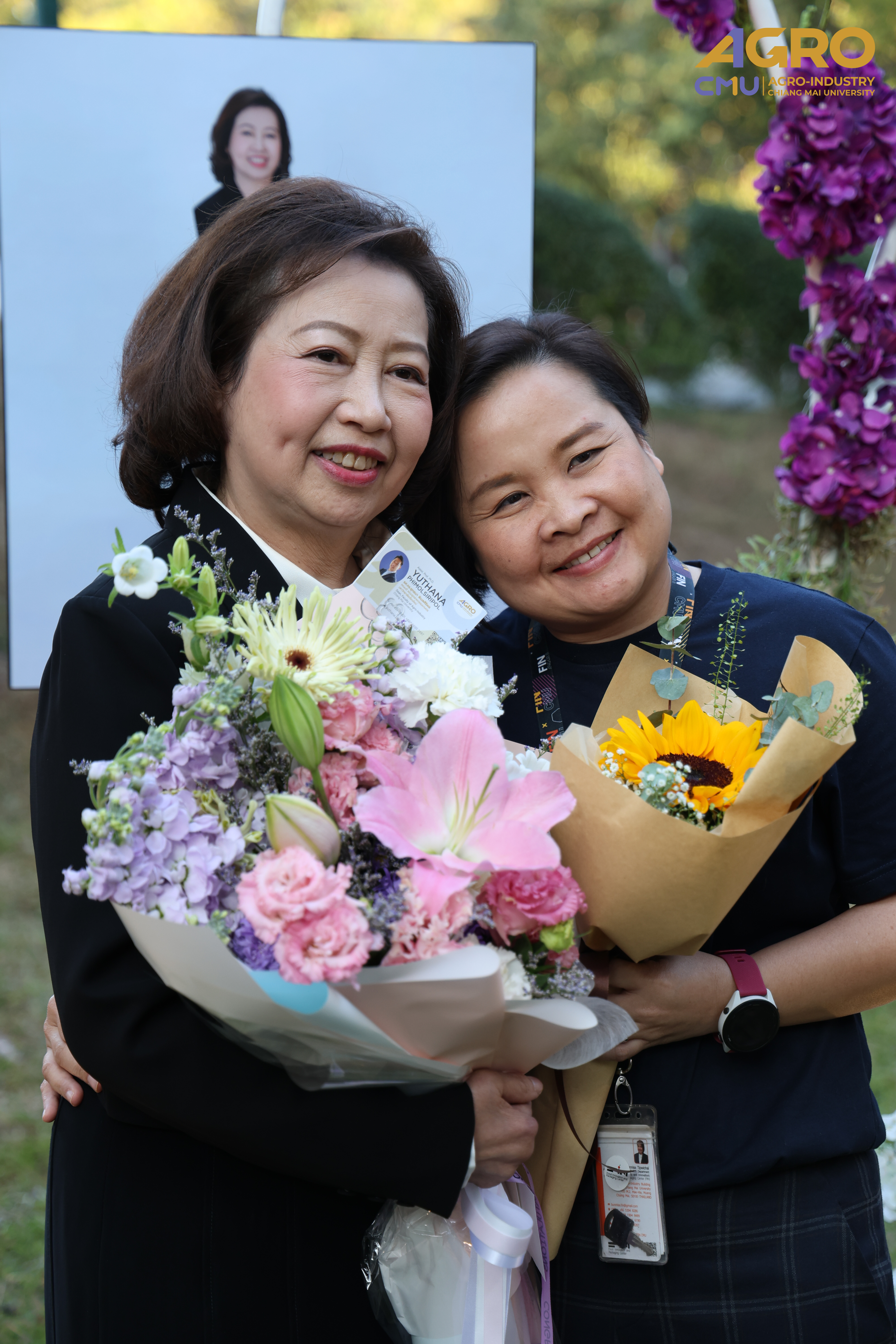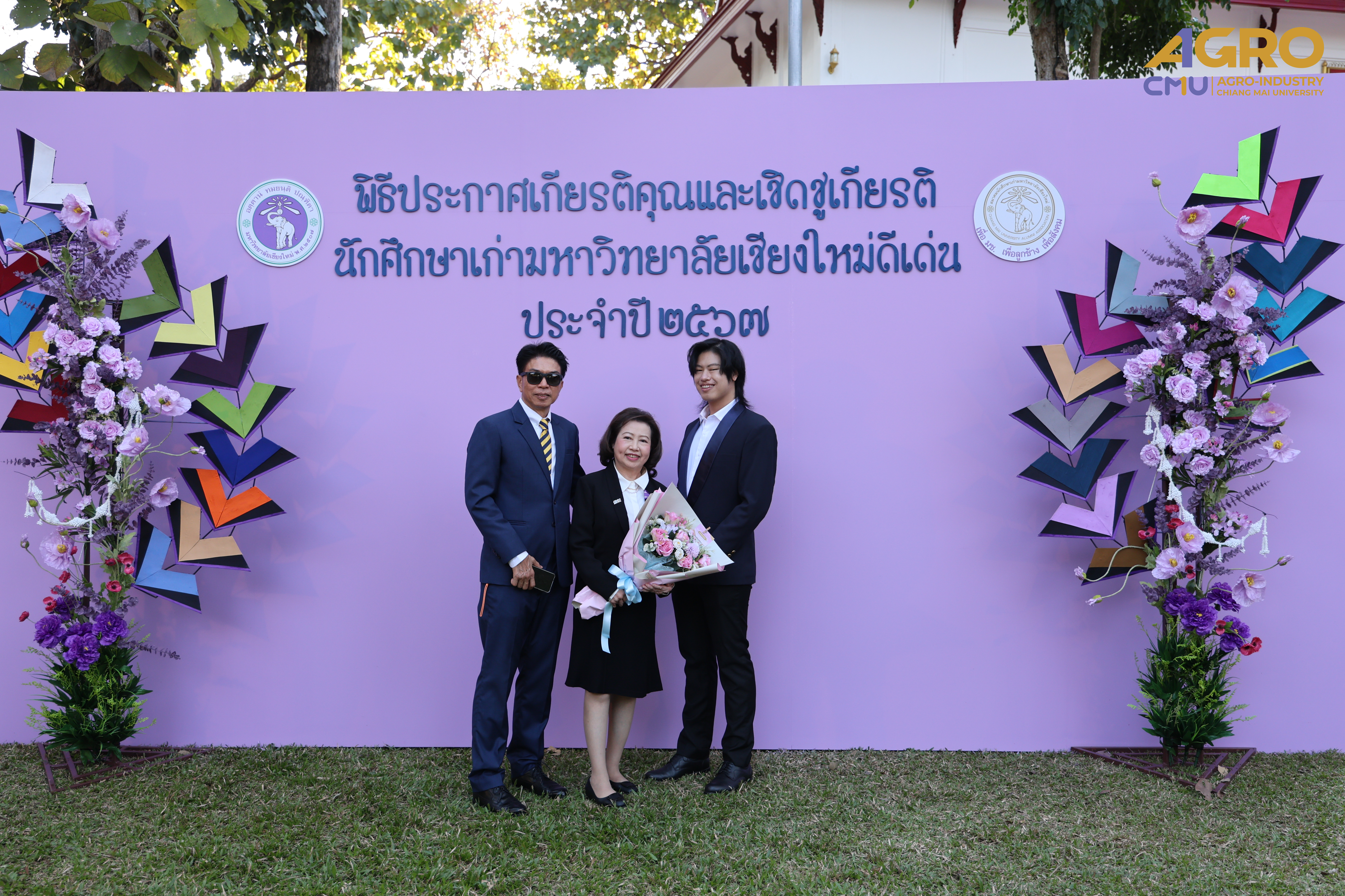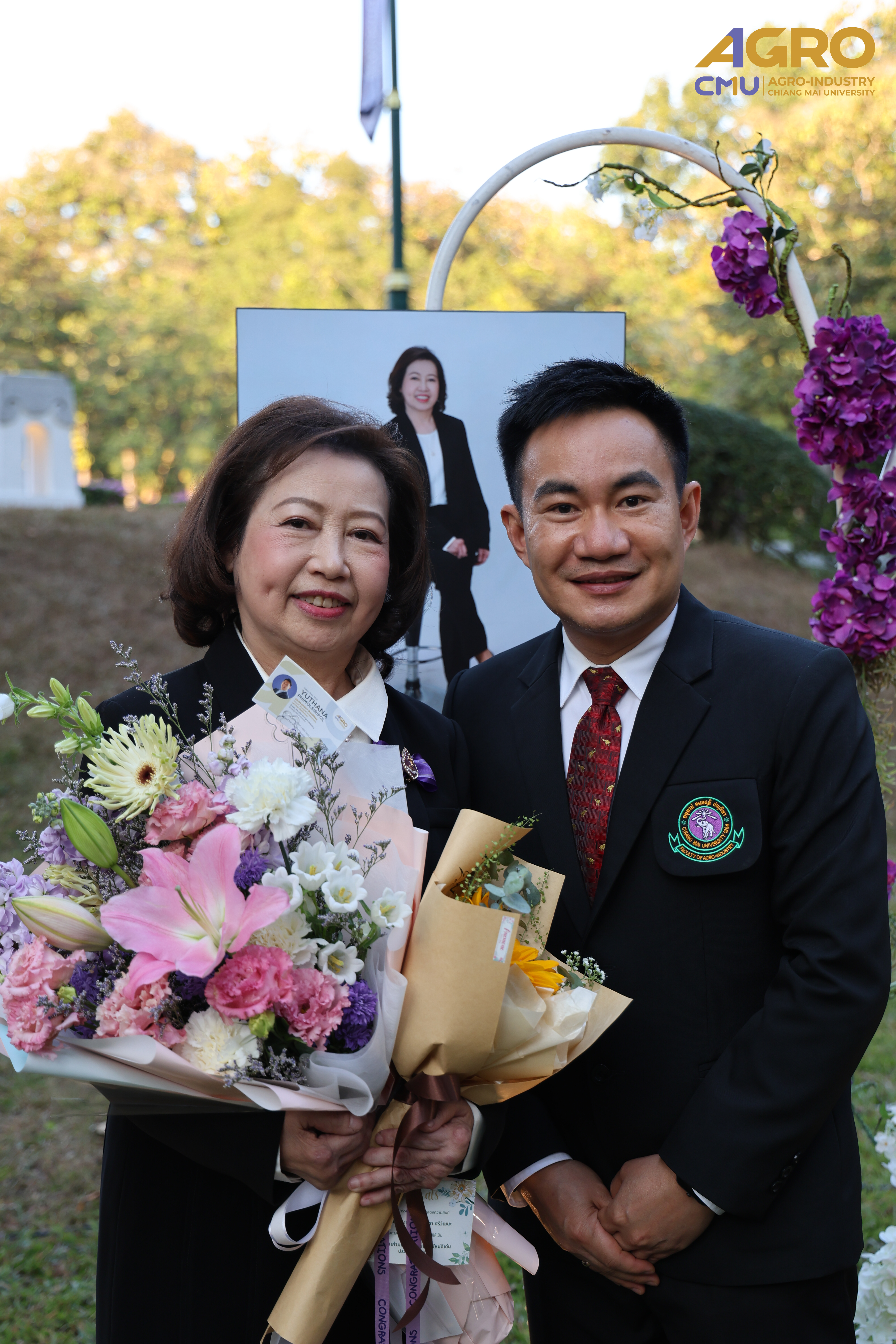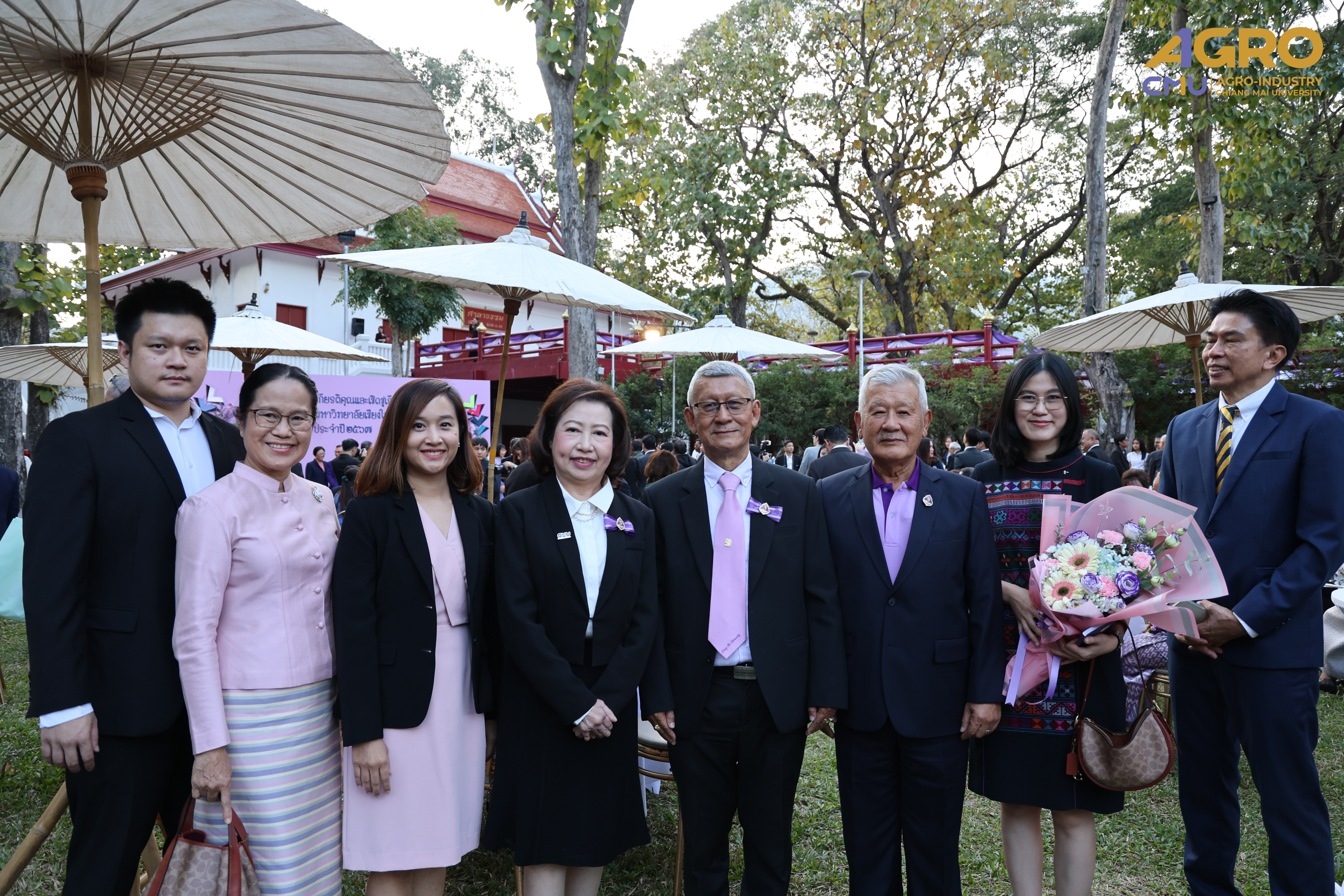 On January 14, 2025, Associate Professor Dr.Yuthana Phimolsiripol, Dean of the Faculty of Agro-Industry, along with the faculty executives and staffs gave the bouquet of flower to extended its heartfelt congratulations to Associate Professor Dr.Sujinda Sriwattana (Student ID 2508167) who have received Outstanding Alumni Award from CMU Alumni Association at Dhamma pavilion of Chiang Mai University. On the special occasion of being selected as Outstanding alumni of Chiang Mai University Educational Organization Administration Branch, the Year 2024.