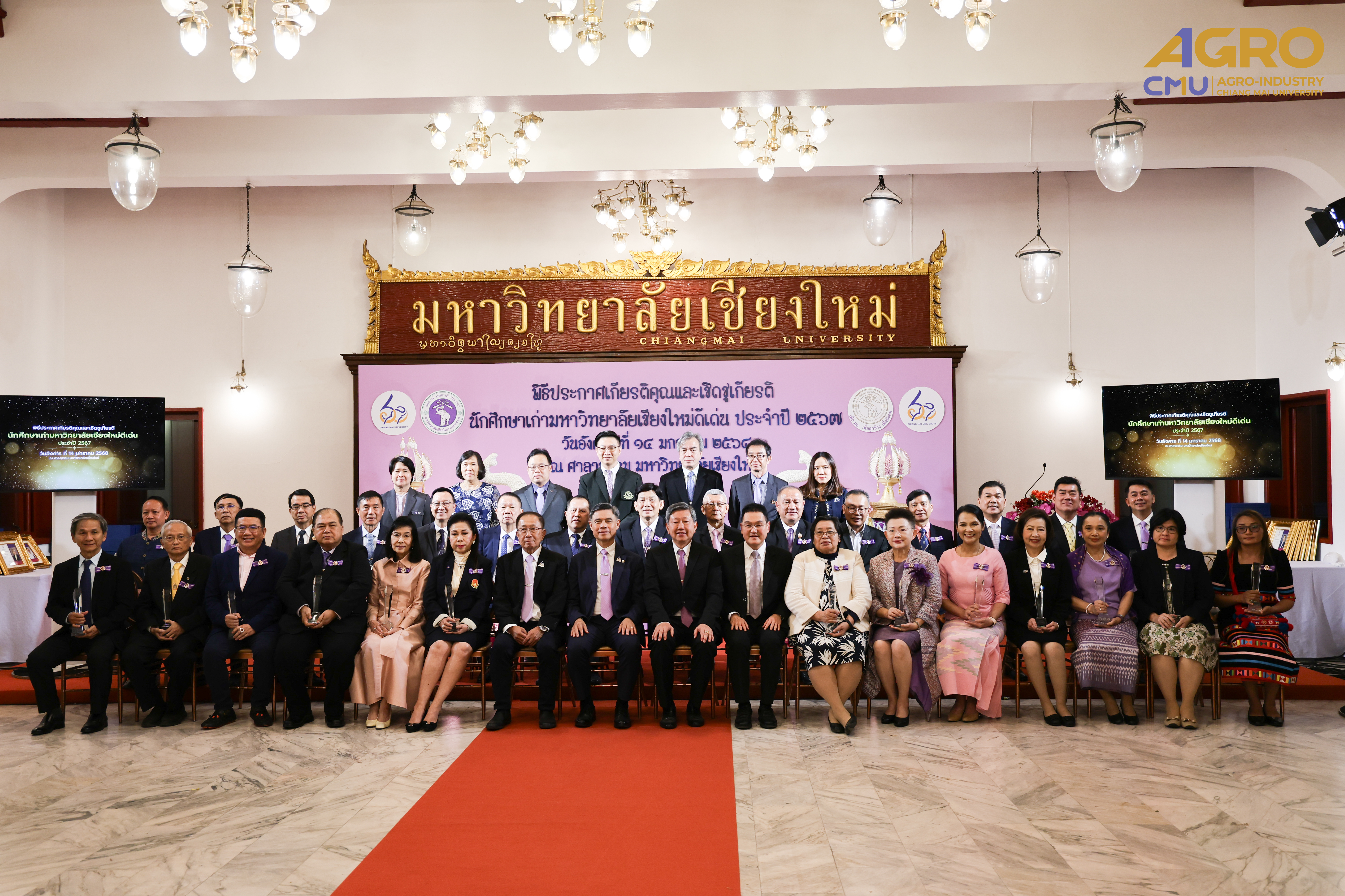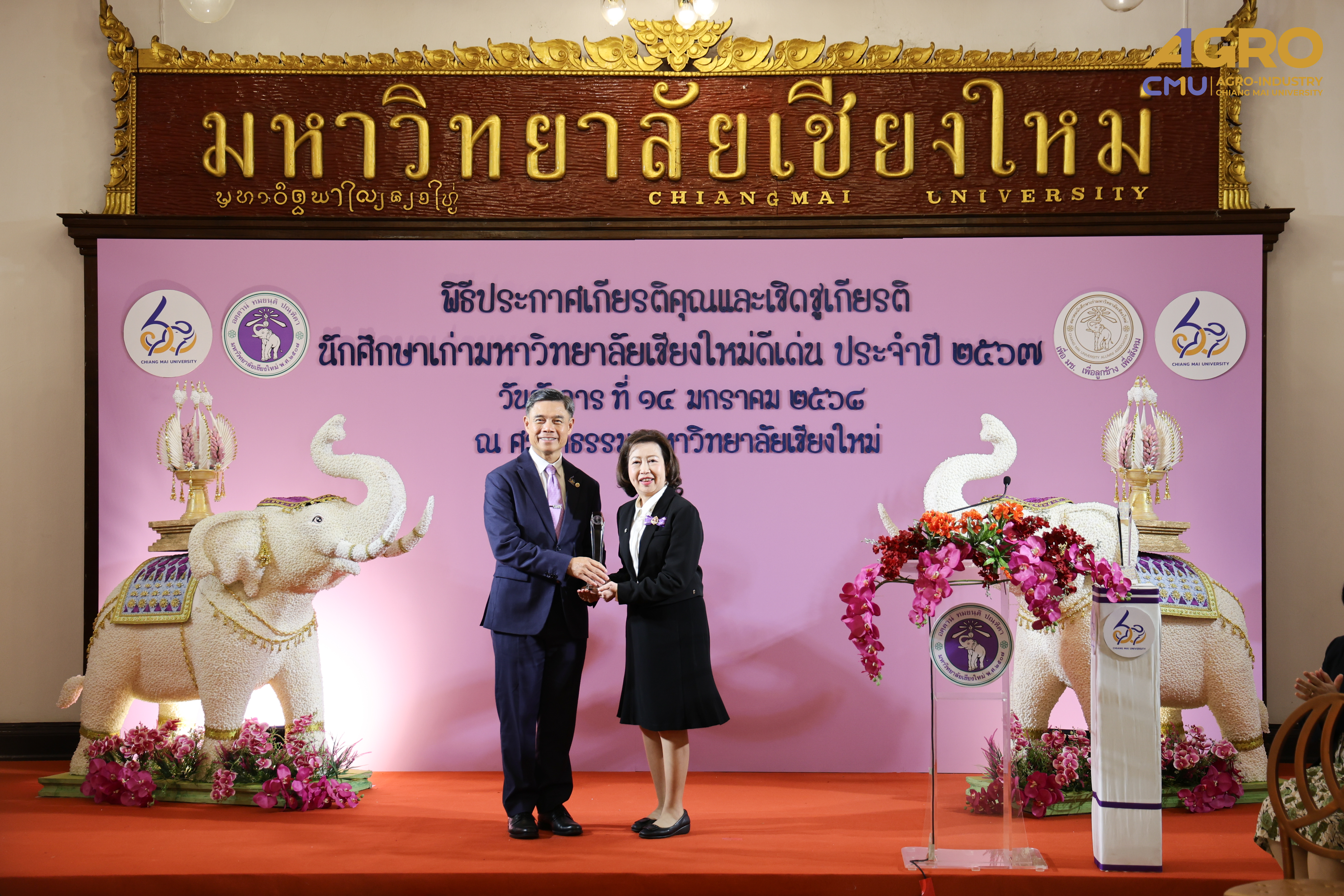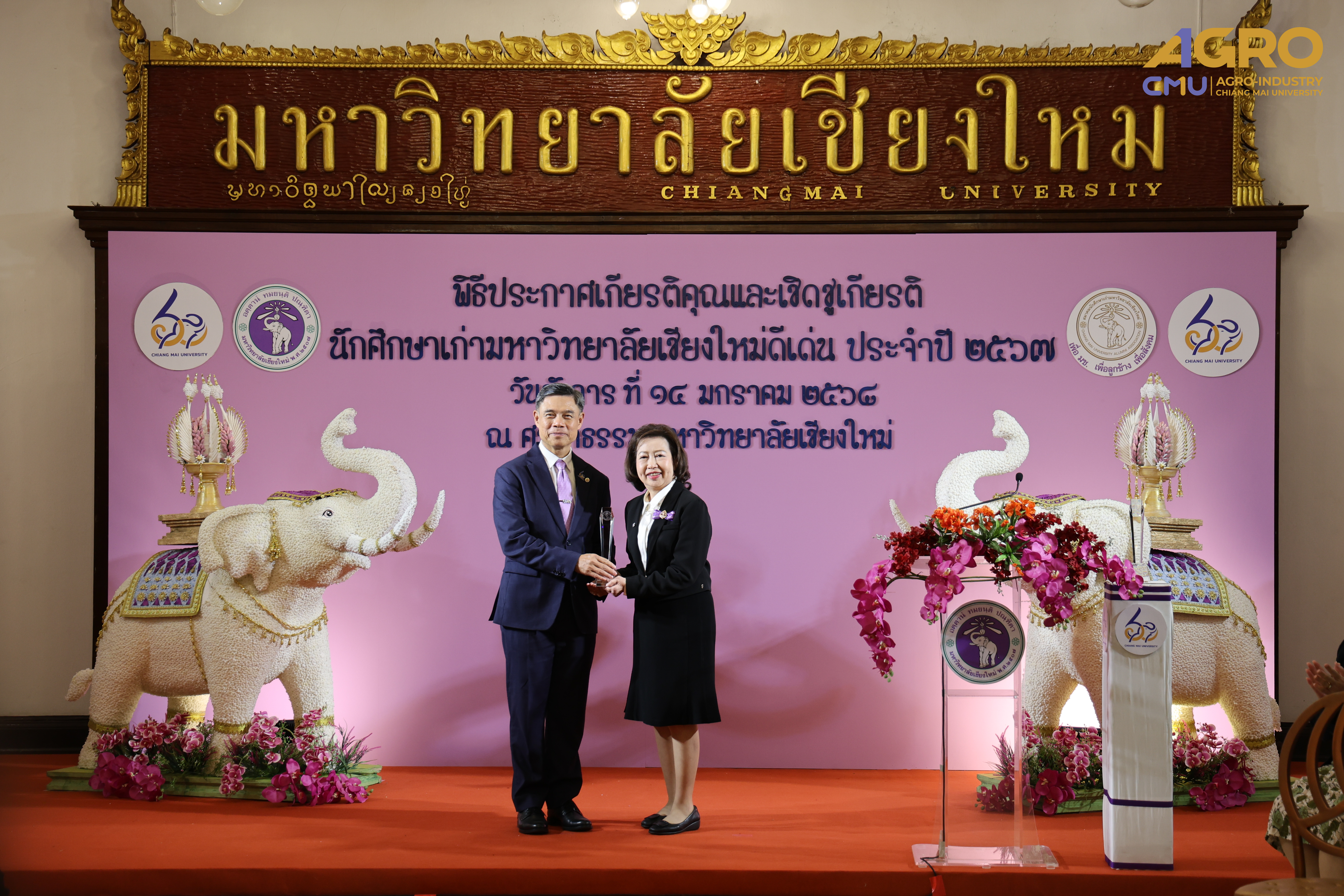 เมื่อวันที่ 14 มกราคม 2568 รองศาสตราจารย์ ดร.ยุทธนา พิมลศิริผล คณบดีคณะอุตสาหกรรมเกษตร พร้อมด้วยผู้บริหาร และบุคลากร ร่วมมอบช่อดอกไม้แสดงความยินดีกับ รองศาสตราจารย์ ดร.สุจินดา ศรีวัฒนะ (รหัสนักศึกษา 2508167) ในพิธีประกาศเกียรติคุณและแสดงความยินดีแก่นักศึกษาเก่ามหาวิทยาลัยเชียงใหม่ดีเด่น ประจำปี 2567 ณ ศาลาธรรม มหาวิทยาลัยเชียงใหม่ ในโอกาสที่ได้รับรางวัลนักศึกษาเก่ามหาวิทยาลัยเชียงใหม่ดีเด่น สาขาบริหารองค์กรการศึกษา
