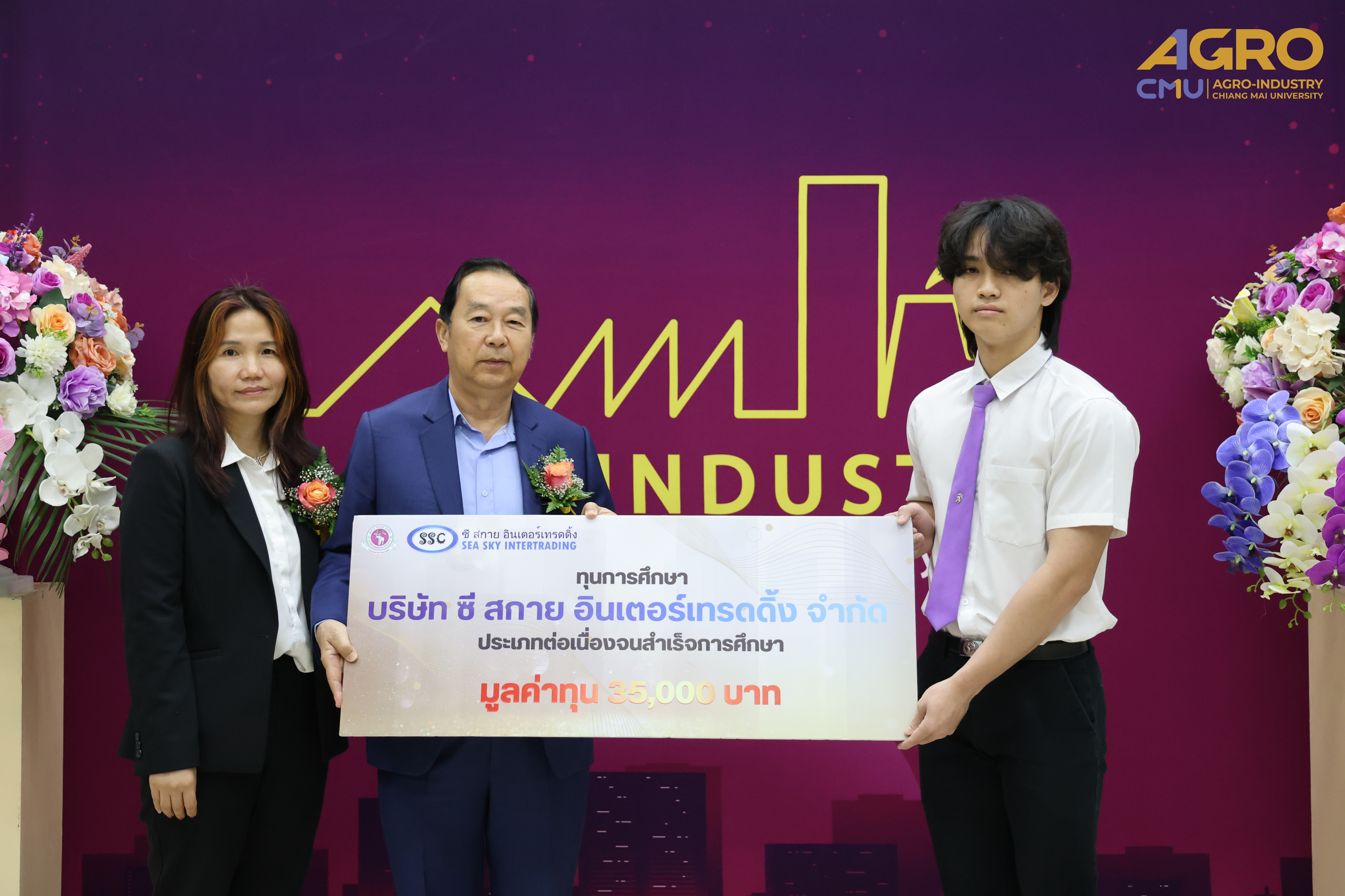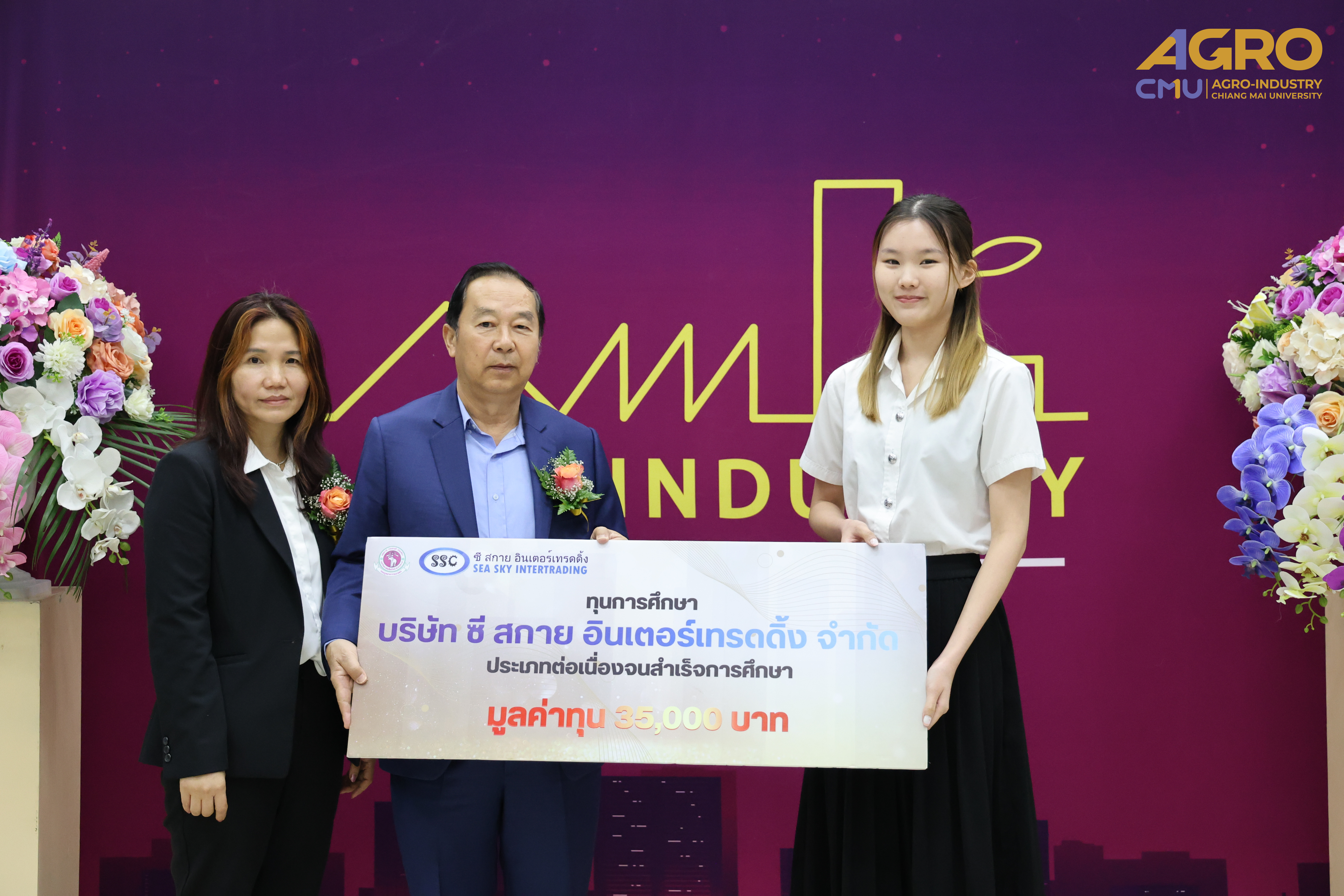 On February 4, 2025, Associate Professor Dr. Yuthana Phimolsiripol, Dean of the Faculty of Agro-Industry, President for Ceremony for the 2024 academic year Faculty of Agro-Industry Scholarship Award and Mr. Termchai Siripong, President of Sea Sky Intertrading Co., Ltd., awarded the Sea Sky Continuing Scholarships for the third year. A total of 13 scholarships, each valued at 35,000 THB per academic year, were granted to students of the Faculty of Agro-Industry, Chiang Mai University. The ceremony took place in Room 1-111-112, Building 1, Faculty of Agro-Industry, with faculty executives, professors, and students in attendance.