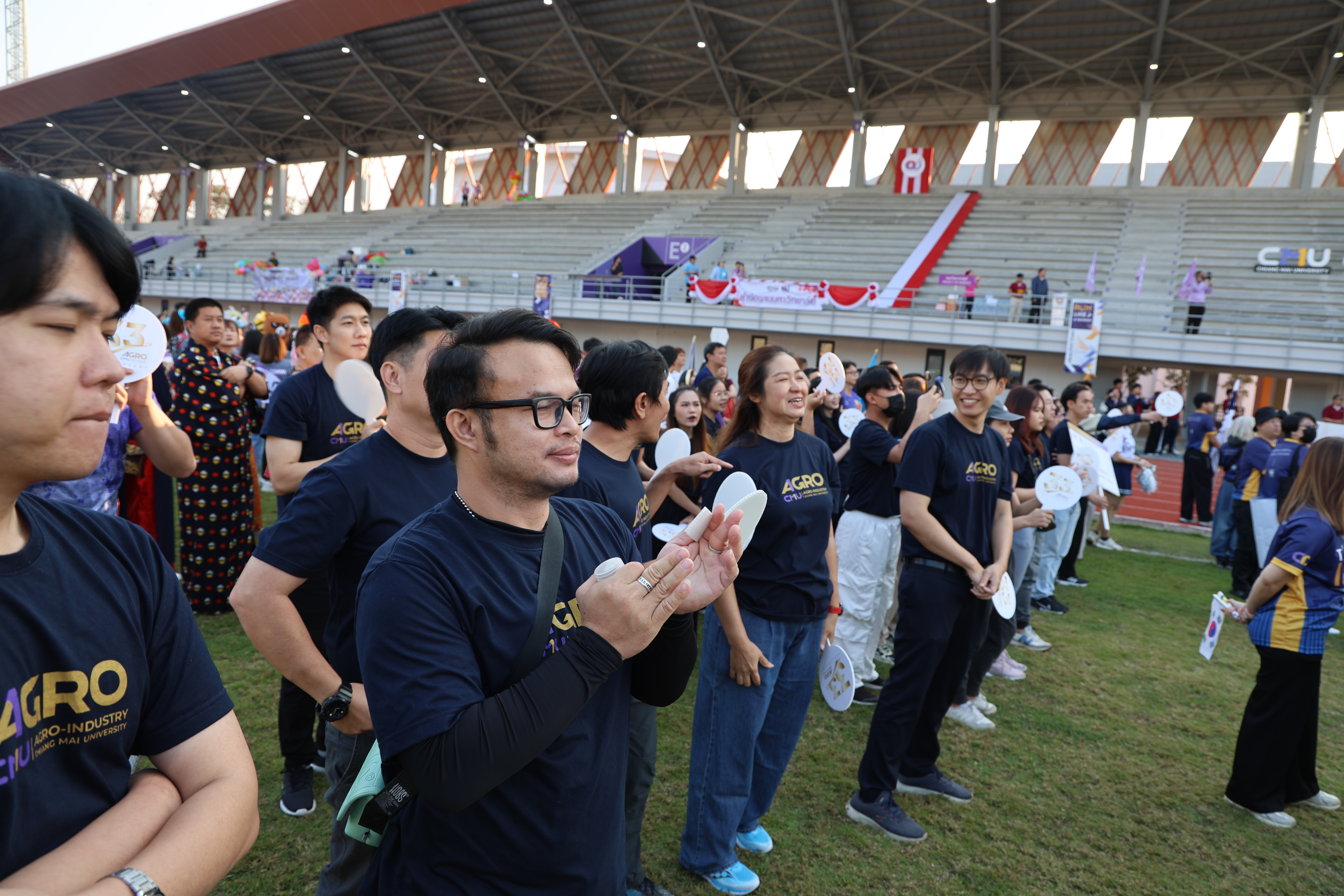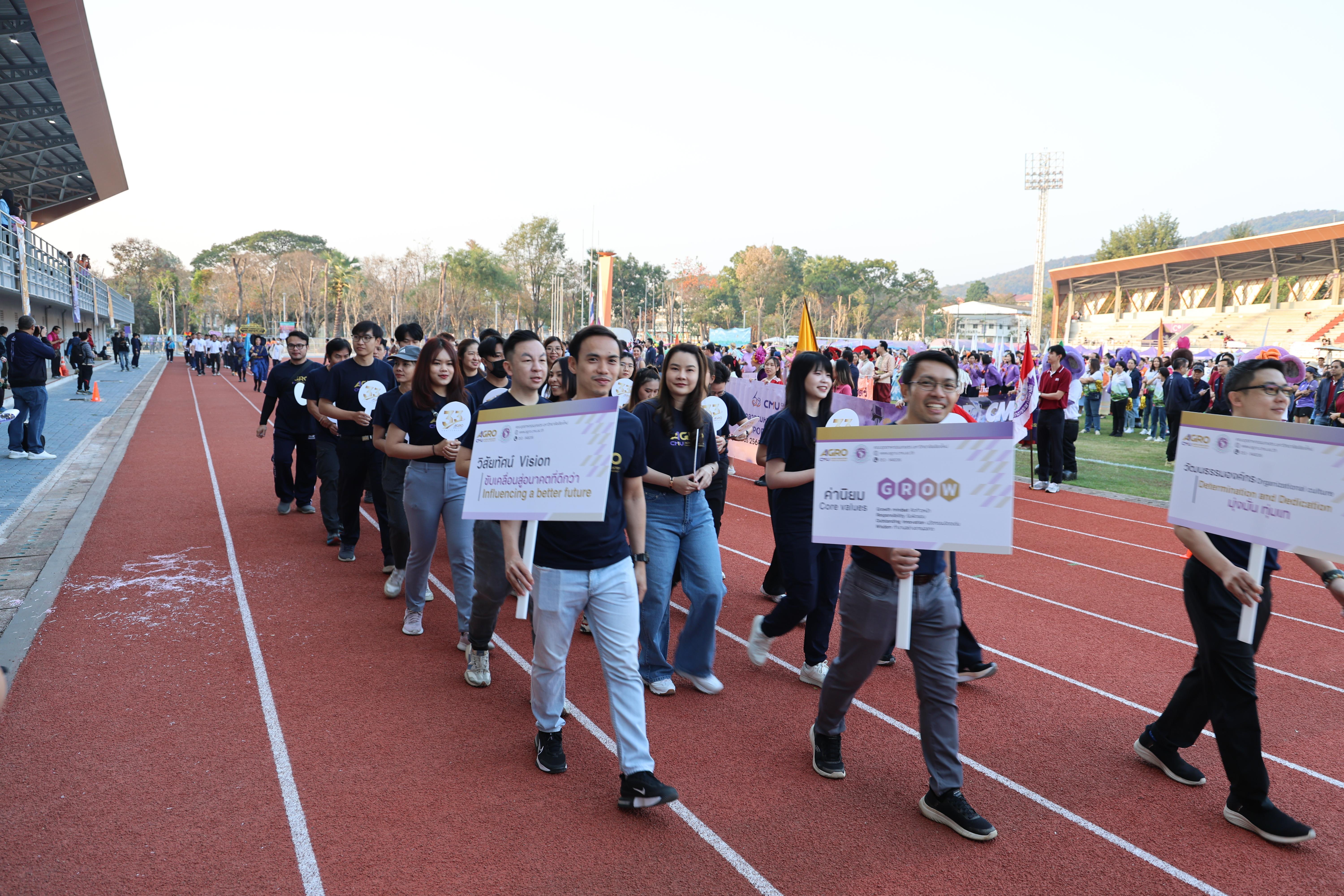 On February 15, 2025, Associate Professor Dr. Yuthana Phimolsiripol, Dean of the Faculty of Agro-Industry, along with the administration, faculty members, and staff of the Faculty of Agro-Industry, participated in the Chiang Mai University Staff Sports Event 2025. The event aimed to encourage Chiang Mai University staff to engage in sports and physical activities to promote good health. Additionally, it served to foster unity and strengthen relationships among staff members from various departments. The event took place at the Chiang Mai University Main Stadium.