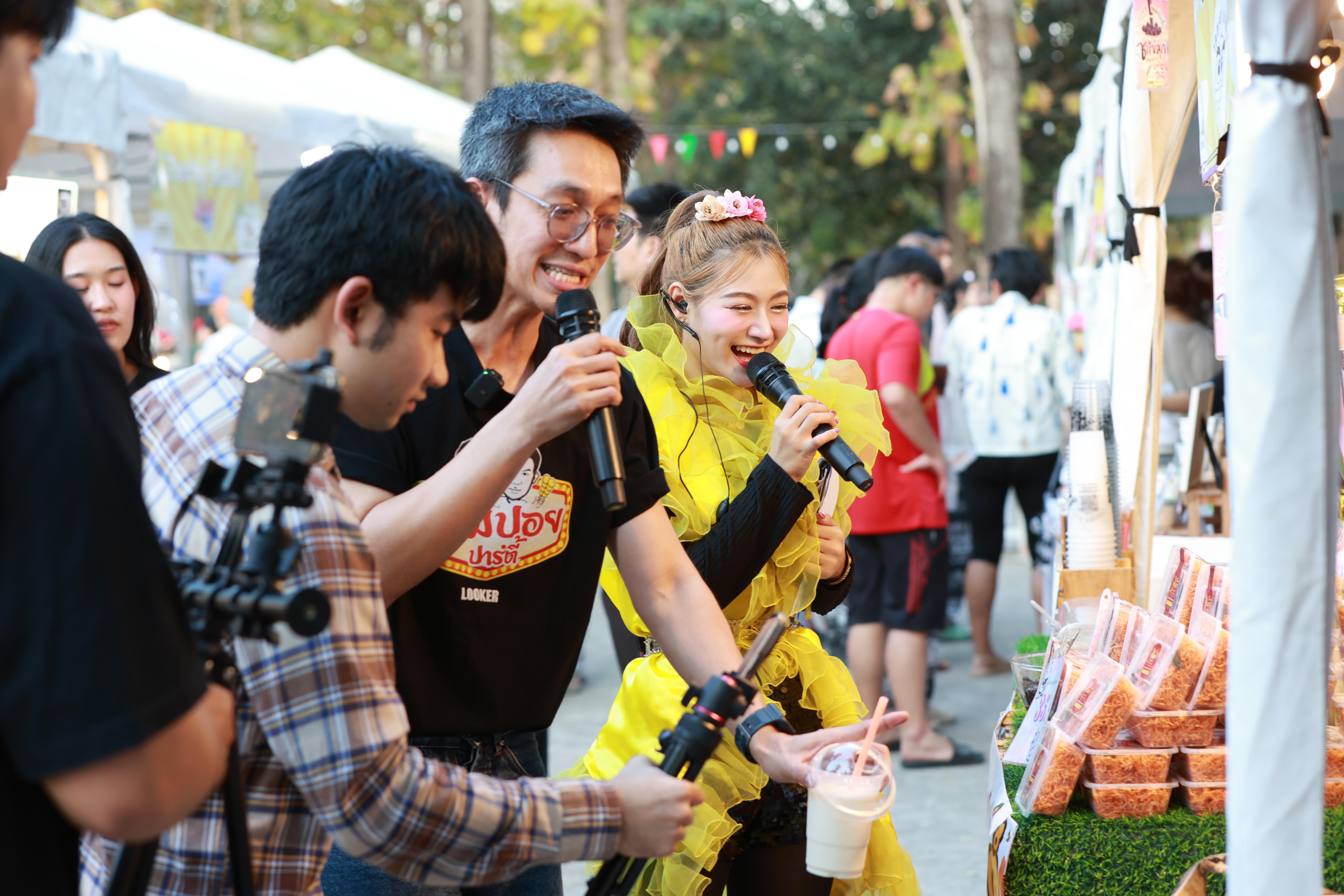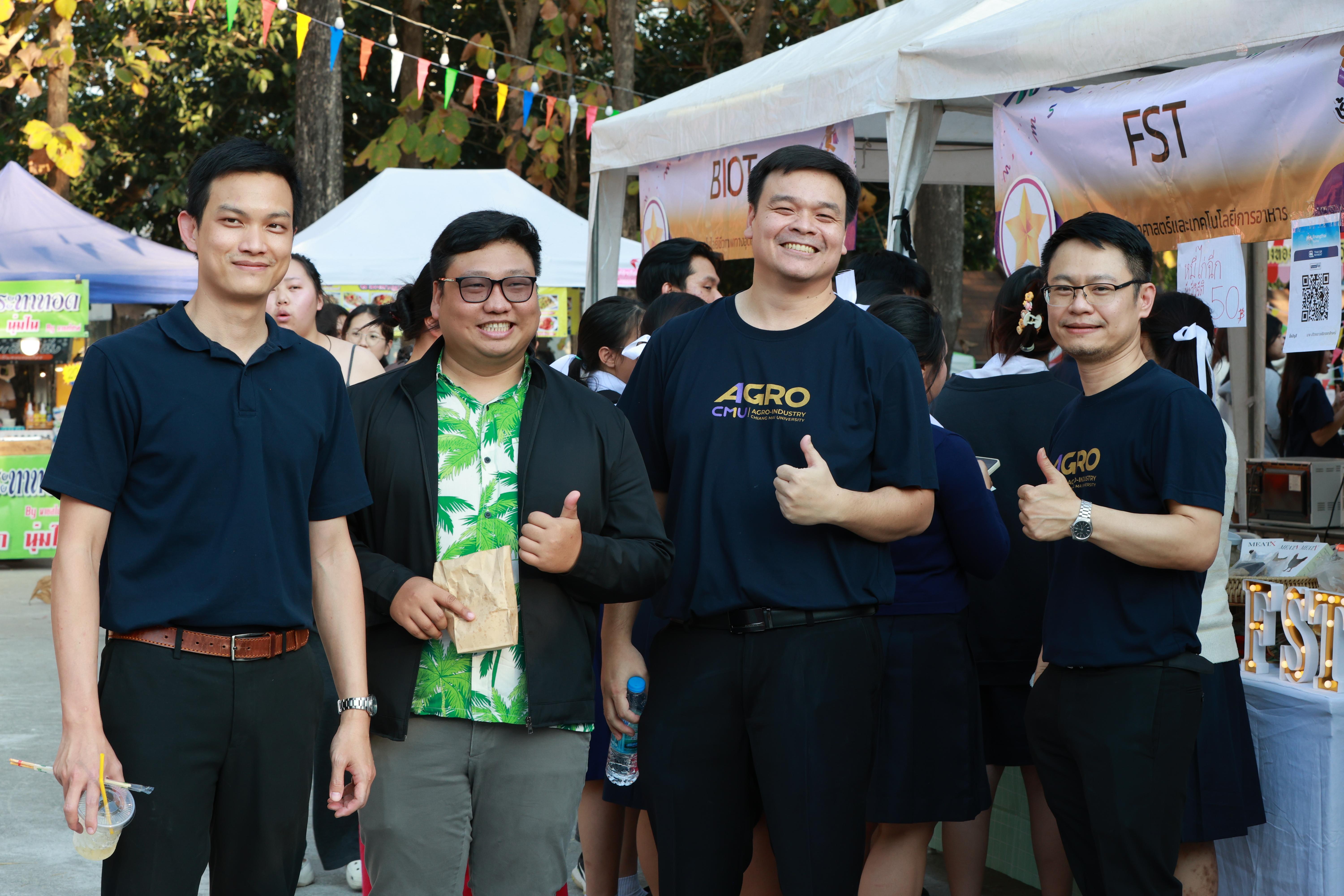 Dr. Thapkrit Khumthup, Assistant Professor responsible for Student Quality Development and Alumni Relations at the Faculty of Agro-Industry, Chiang Mai University, officially opened the event, accompanied by faculty members and a famous Chiang Mai influencer from the "Kongphop Sa Review" page. They toured the student product booths from all six academic departments, as well as booths from alumni and more than 30 external vendors.