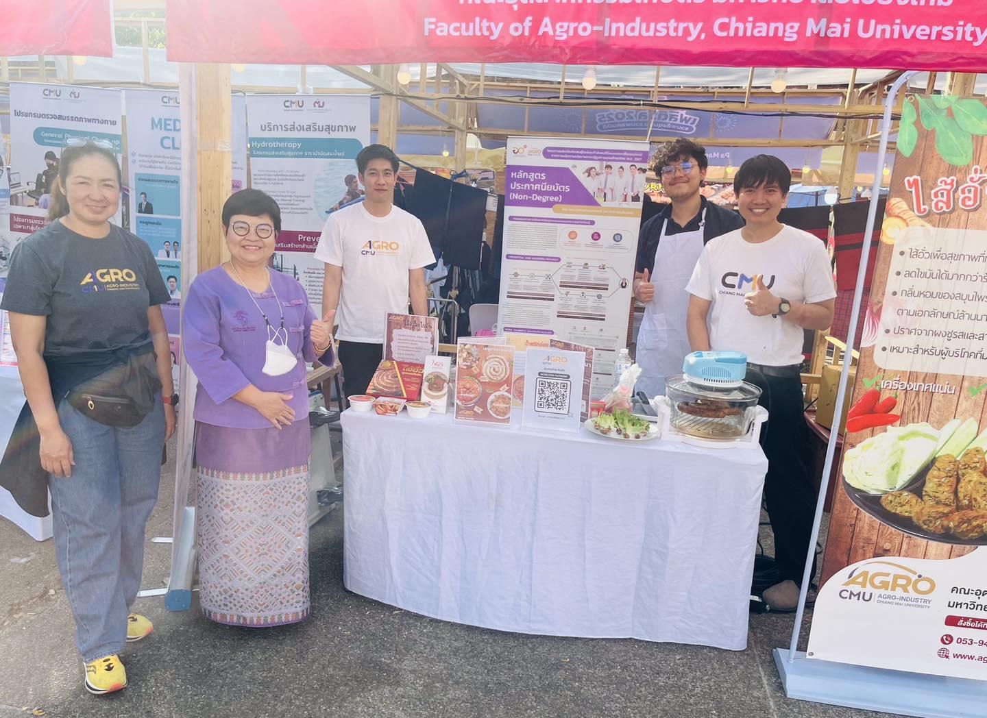 วันที่ 16 กุมภาพันธ์ 2568 คณะอุตสาหกรรมเกษตร นำโดยรองศาสตราจารย์ ดร. นิรมล อุตมอ่าง รองคณบดี ร่วมนำหลักสูตร 8 สาขาวิชา และหลักสูตรประกาศนียบัตร (non degree) ออกจัดแสดงในงาน คนไทยมีดี festival 2025 ณ ลานประตูท่าแพ และยังนำผลิตภัณฑ์ไส้อั่วลดไขมัน ออกขายภายในงานอีกด้วย