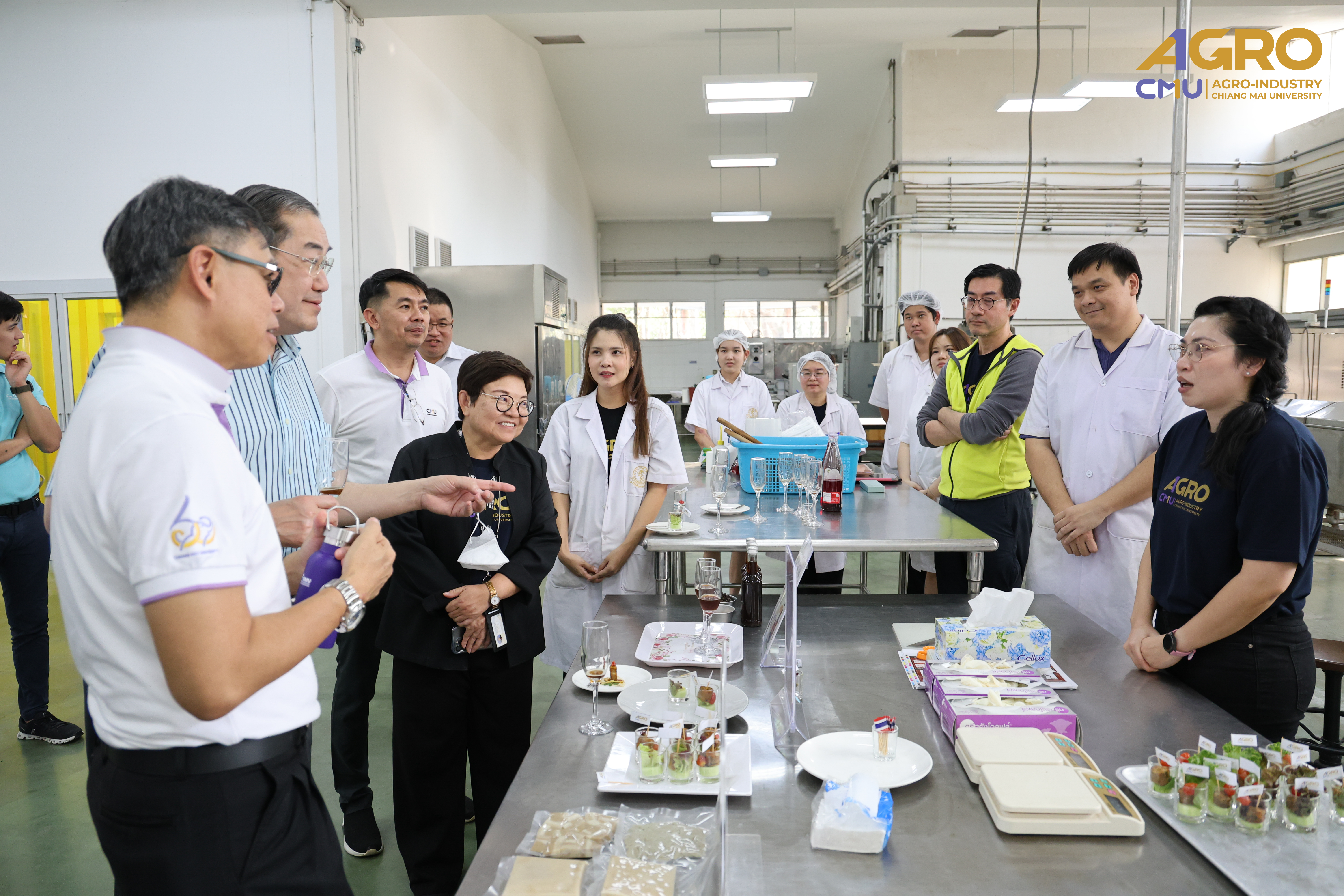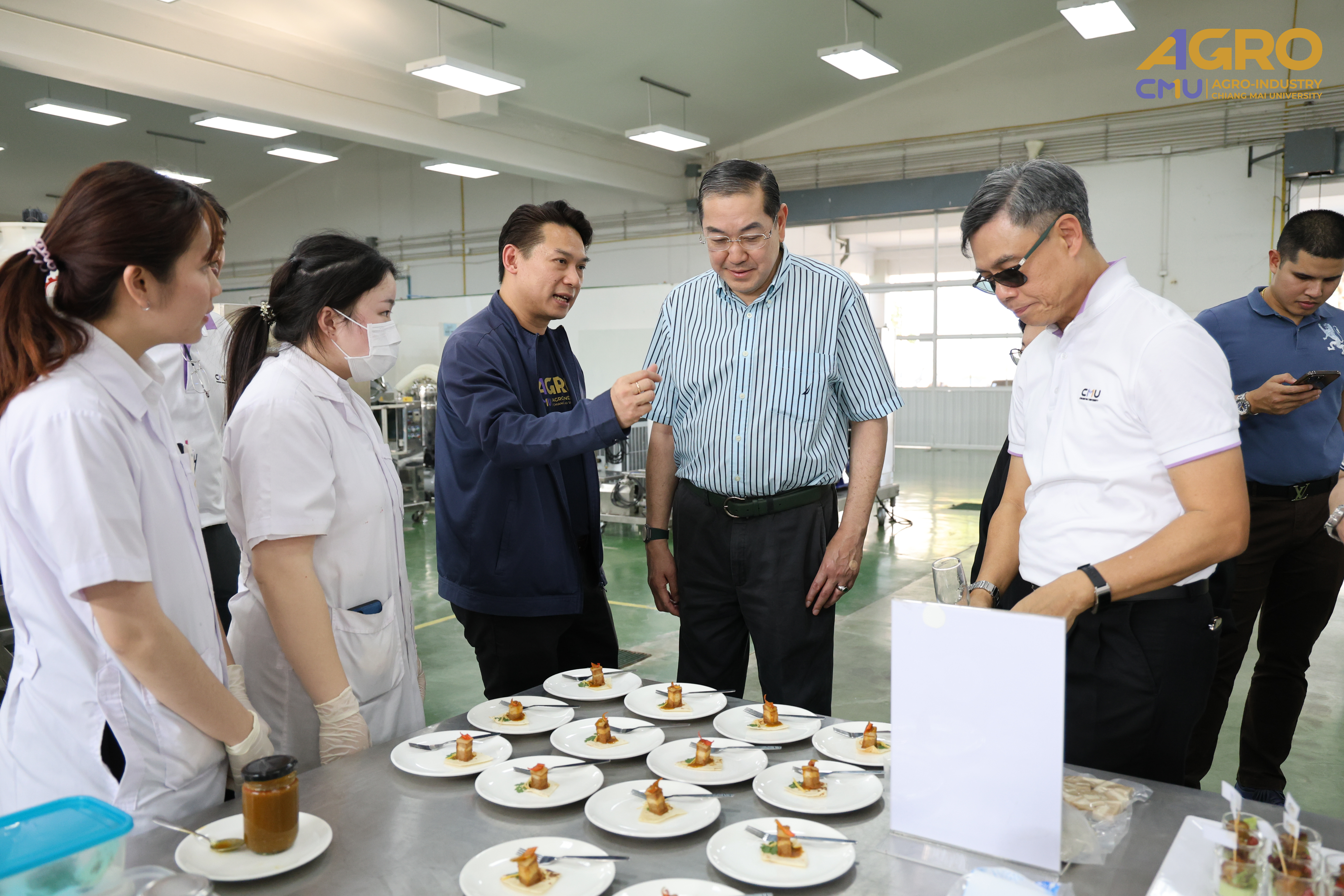 February 21, 2025 – Professor Emeritus Dr. Surakiart Sathirathai, President of the Chiang Mai University Council, together with Professor Dr. M.D. Pongruk Sribanditmongkol, President of Chiang Mai University, and the university's executive team, visited the Pilot Plant at the Faculty of Agro-Industry to explore advancements in food processing technology and agro-industrial innovations.