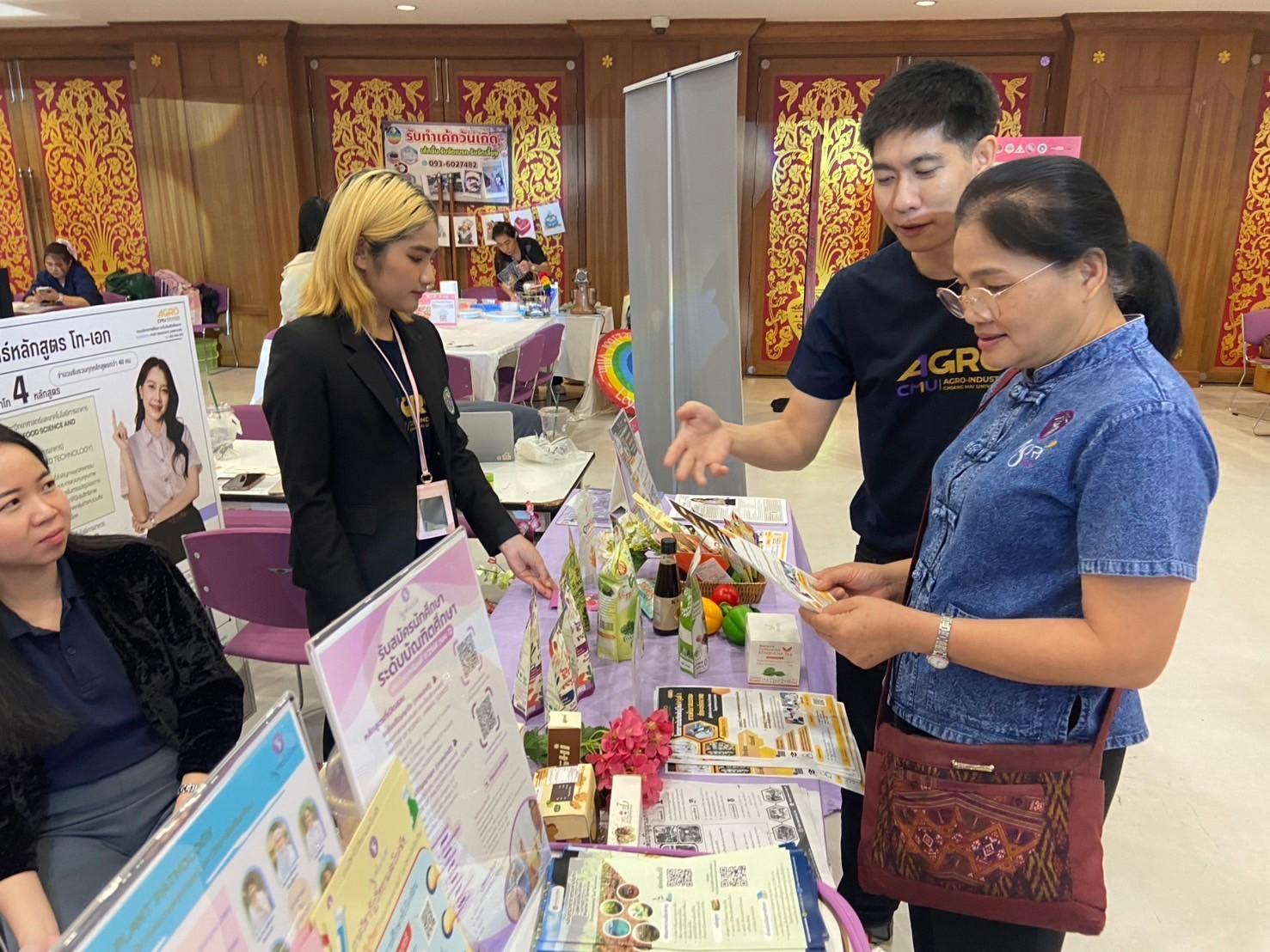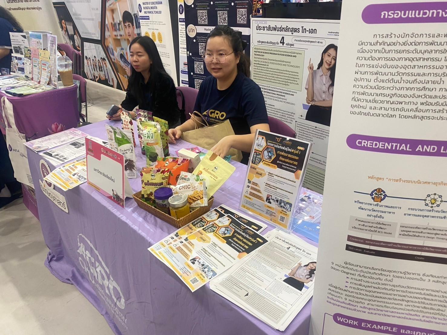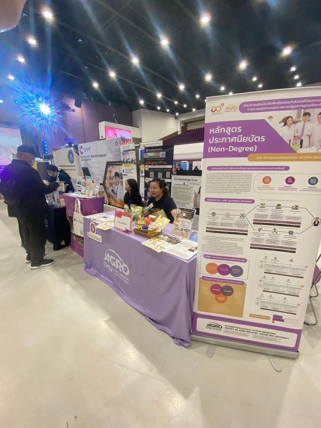 From February 28 to March 1, 2025, the Faculty of Agro-Industry, Chiang Mai University, participated in the FOB FAIR 2025 @Chiang Mai by setting up an exhibition booth to provide educational guidance. The Office of Educational Services and Student Quality Development presented information on bachelor's degree programs, graduate programs, and short courses under the New Growth Engine Project.