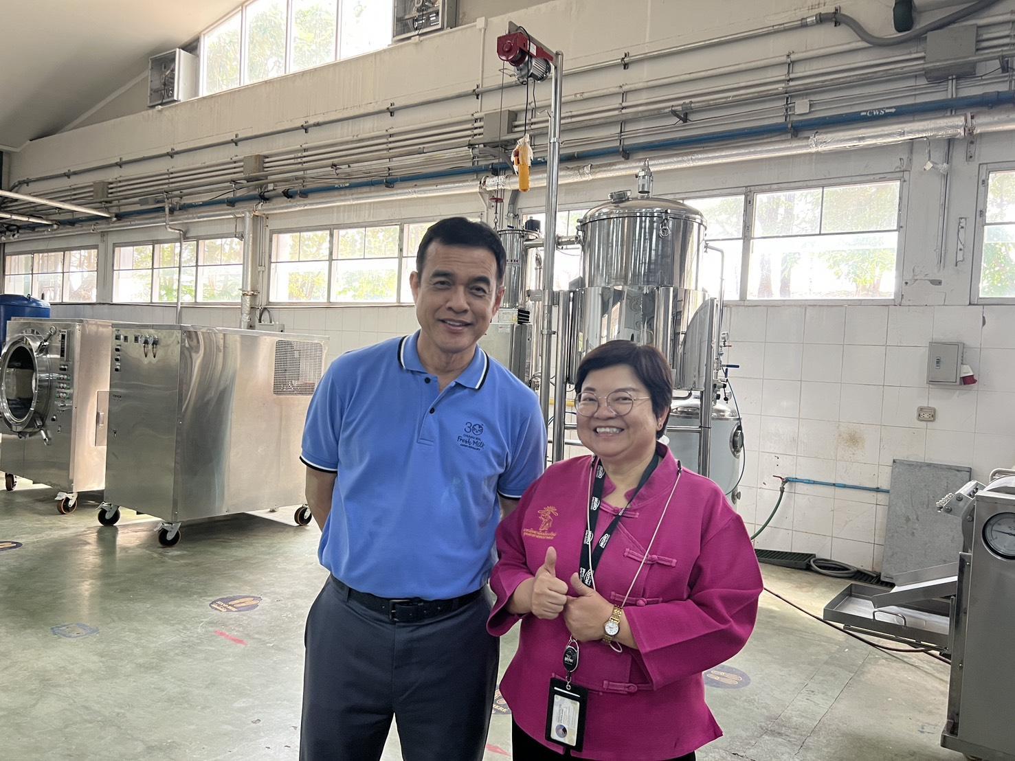 On March 20, 2025, Associate Professor Dr. Niramol Utama-ang and Assistant Professor Dr. Srisuwan Naruennatwongkornsakul, Associate Deans of the Faculty of Agro-Industry, welcomed the executives from Chiang Mai Fresh Milk Co., Ltd. on their visit to the model factory. The purpose of the visit was to discuss the use of machinery for developing the company's dairy products, serving as a guideline for providing academic services to entrepreneurs. This collaboration aims to optimize the utilization of machinery and tools for commercial benefits in the future.