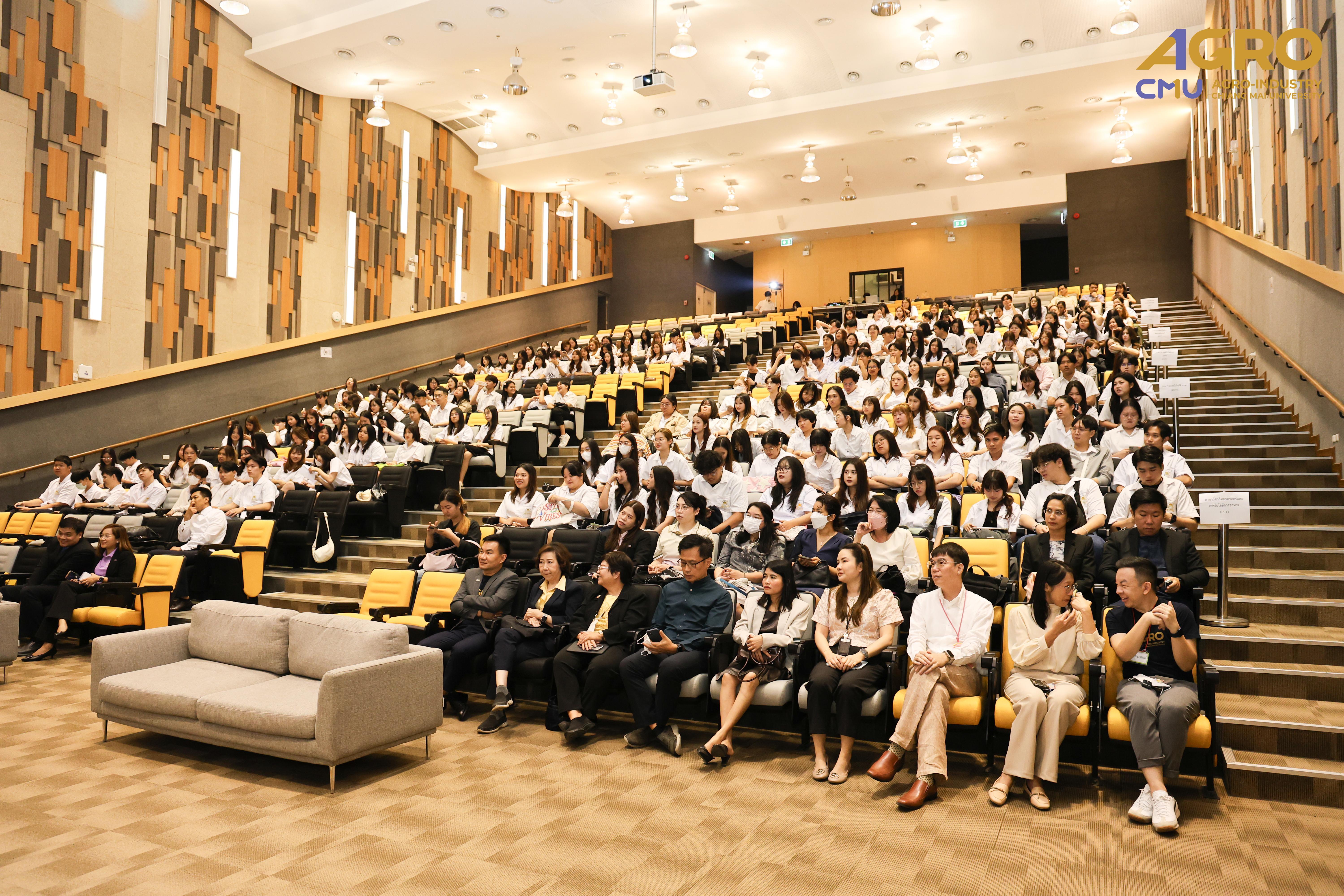 On March 24, 2025, the Faculty of Agro-Industry, Chiang Mai University, organized the "Graduation Orientation 2024" to prepare and inspire students before they graduate. The event was presided over by Associate Professor Dr. Yutthana Phimolsiripol, Dean of the Faculty of Agro-Industry, who delivered an opening speech and words of encouragement to the students. The ceremony took place at the Auditorium, 1st Floor, Science and Technology Park (STeP), Chiang Mai University.