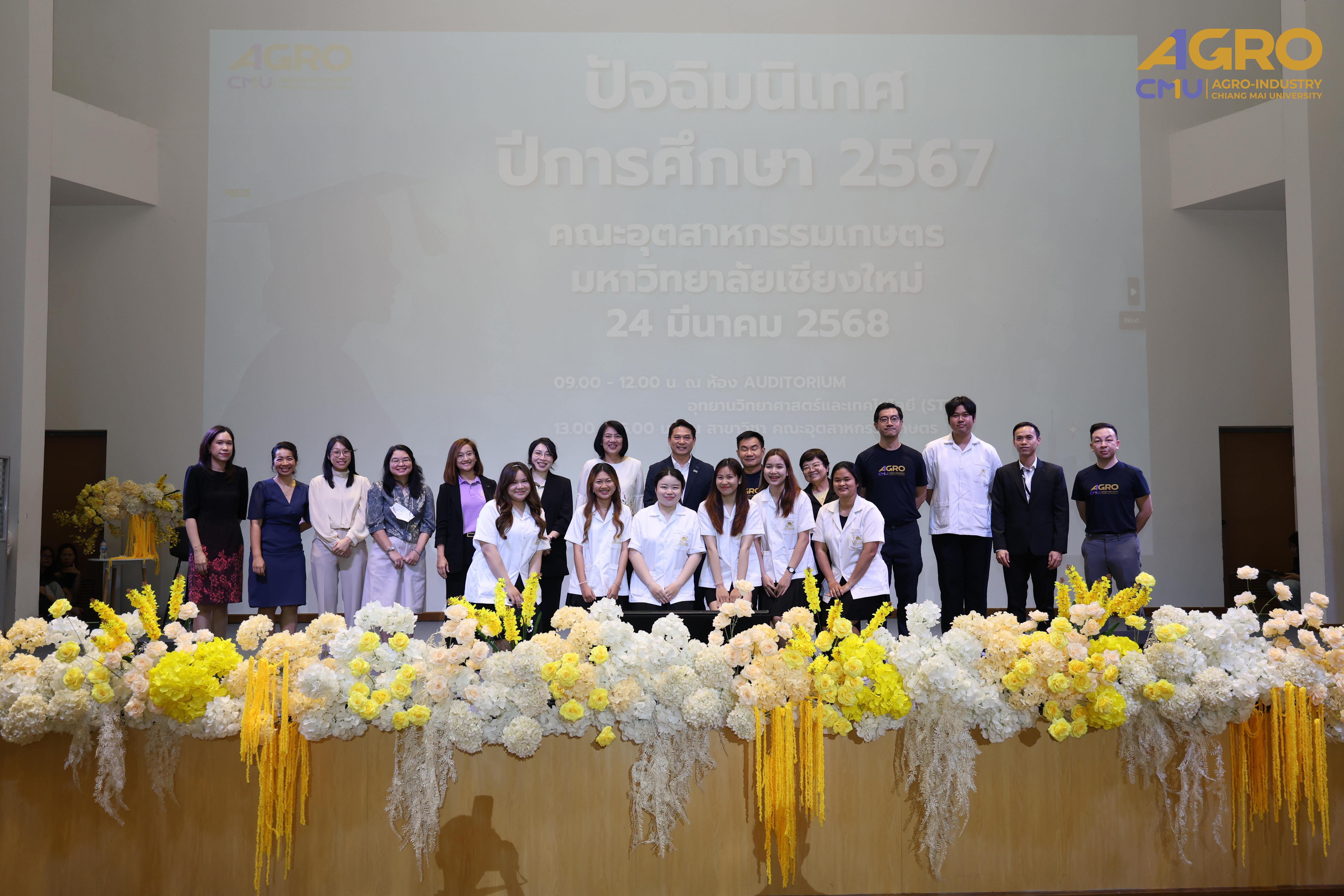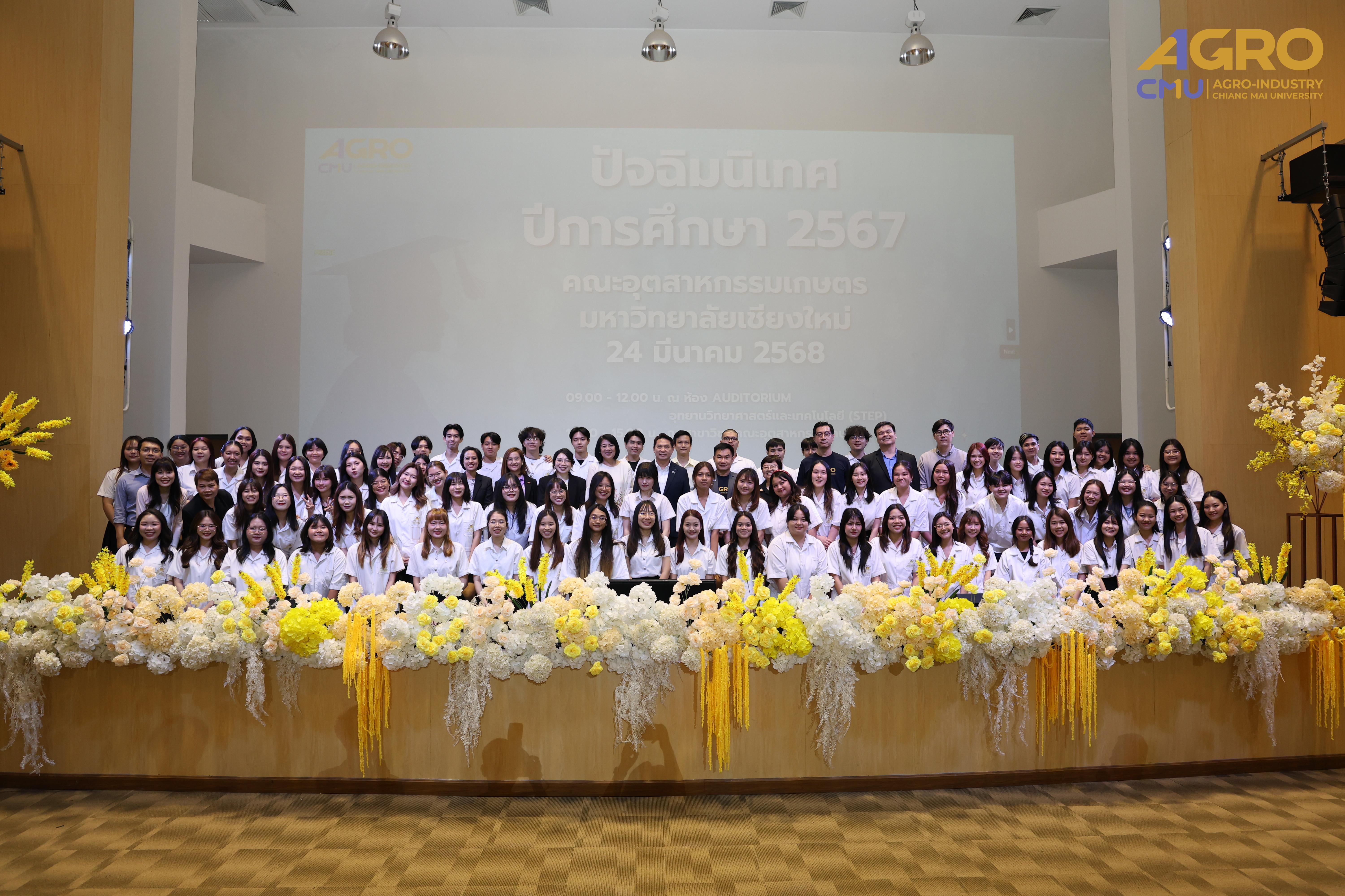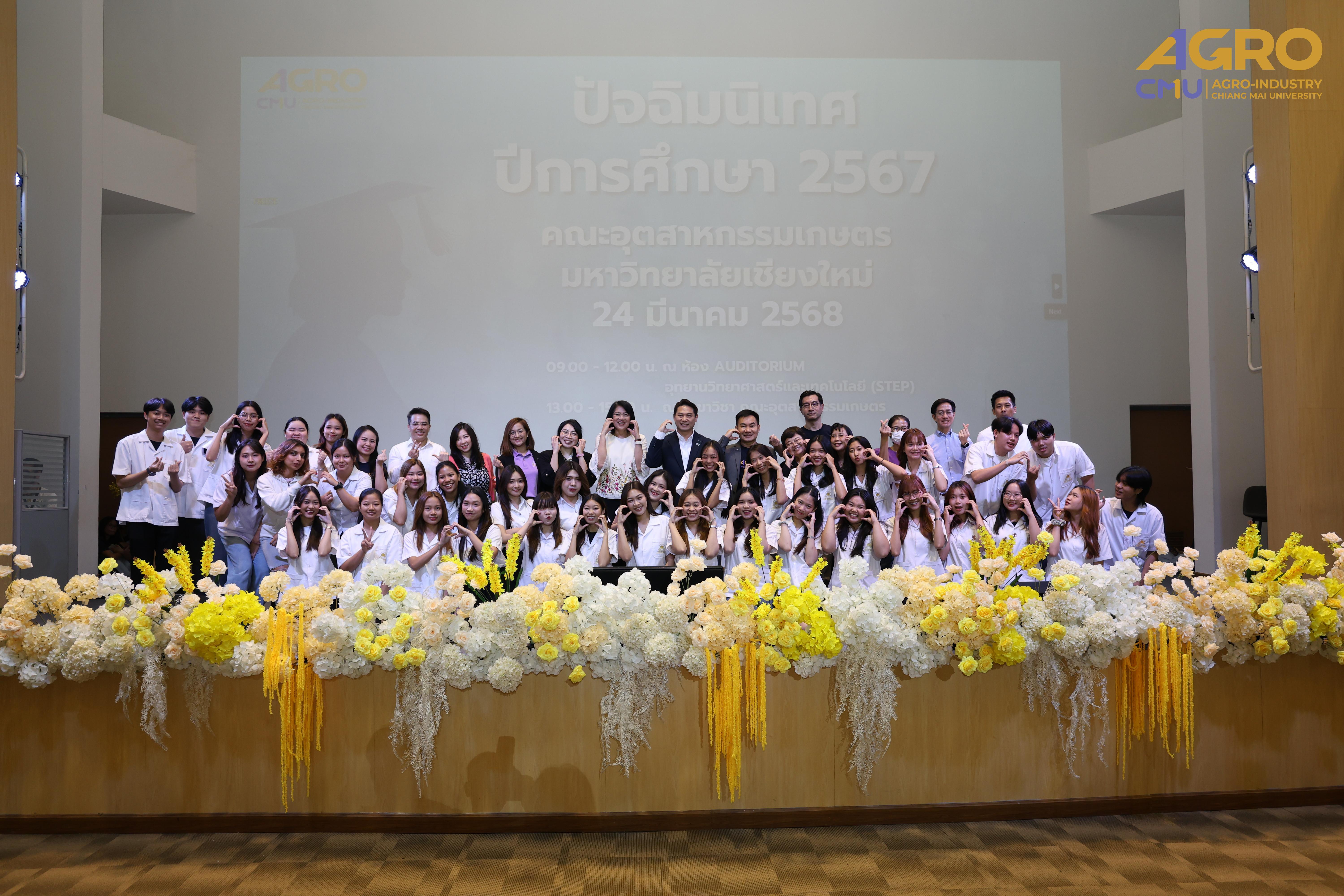 เมื่อวันที่ 24 มีนาคม 2568 คณะอุตสาหกรรมเกษตร มหาวิทยาลัยเชียงใหม่ ได้จัดกิจกรรม “ปัจฉิมนิเทศนักศึกษา ปีการศึกษา 2567” โดยมี รองศาสตราจารย์ ดร.ยุทธนา พิมลศิริผล คณบดีคณะอุตสาหกรรมเกษตร เป็นประธานเปิดงานและกล่าวให้โอวาทแก่นักศึกษา ณ ห้อง Auditorium ชั้น 1 อุทยานวิทยาศาสตร์และเทคโนโลยี มหาวิทยาลัยเชียงใหม่ (STeP)