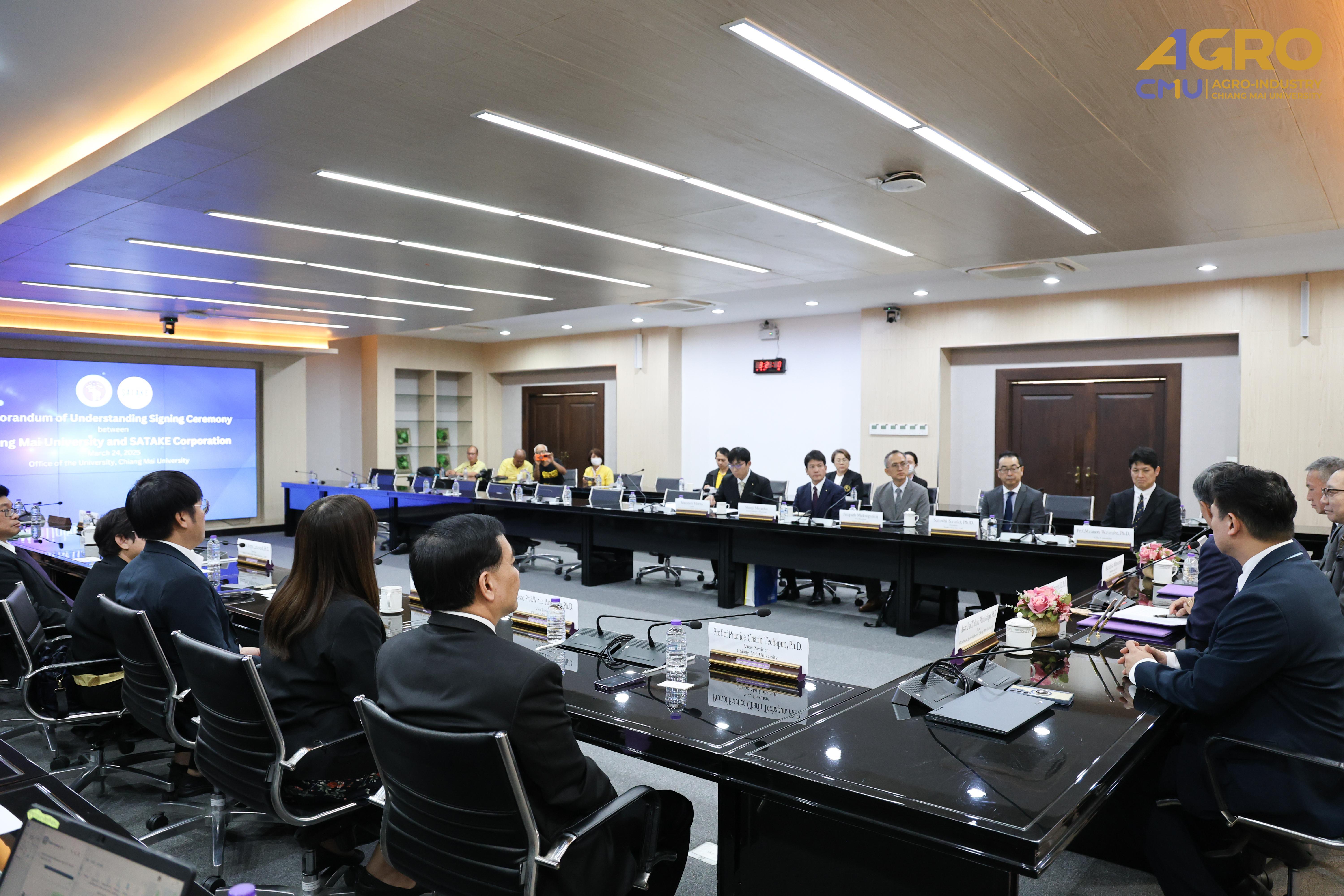 On March 24, 2025, Chiang Mai University (CMU) and Satake Corporation, Japan, signed a Memorandum of Understanding (MOU) at the Praya Srivisarnvacha Room, Office of the University, Chiang Mai University.