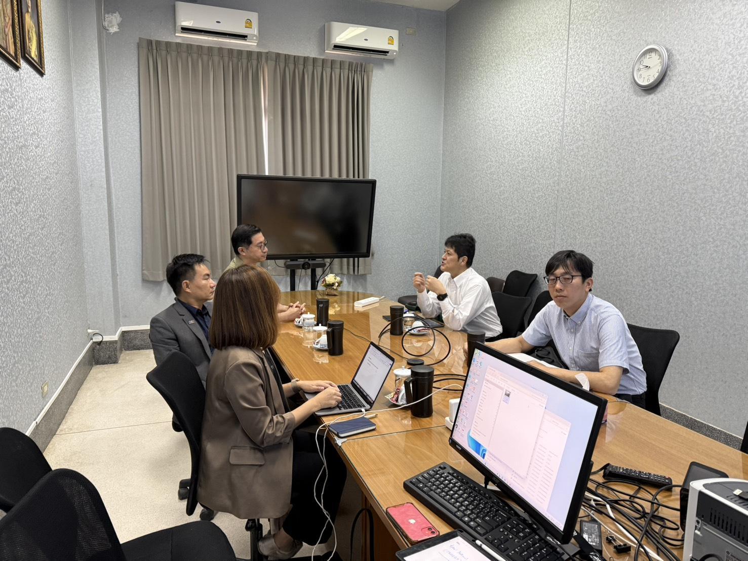 On March 25, 2025, the Faculty of Agro-Industry, Chiang Mai University, warmly welcomed delegates from Gifu University and Satake Corporation, Japan, to discuss potential academic collaborations, including student, researcher, and staff exchanges in the future. The meeting was attended by Assoc. Prof. Dr. Pisit Seesuriyachan, Associate Dean; Assoc. Prof. Dr. Thanongsak Chaiyaso, Head of the School of Agro-Industry; and Asst. Prof. Dr. Pavalee Chompoorat Tridtitanakiat, Assistant Dean. The discussion took place in Meeting Room 2 at the Faculty of Agro-Industry Office.