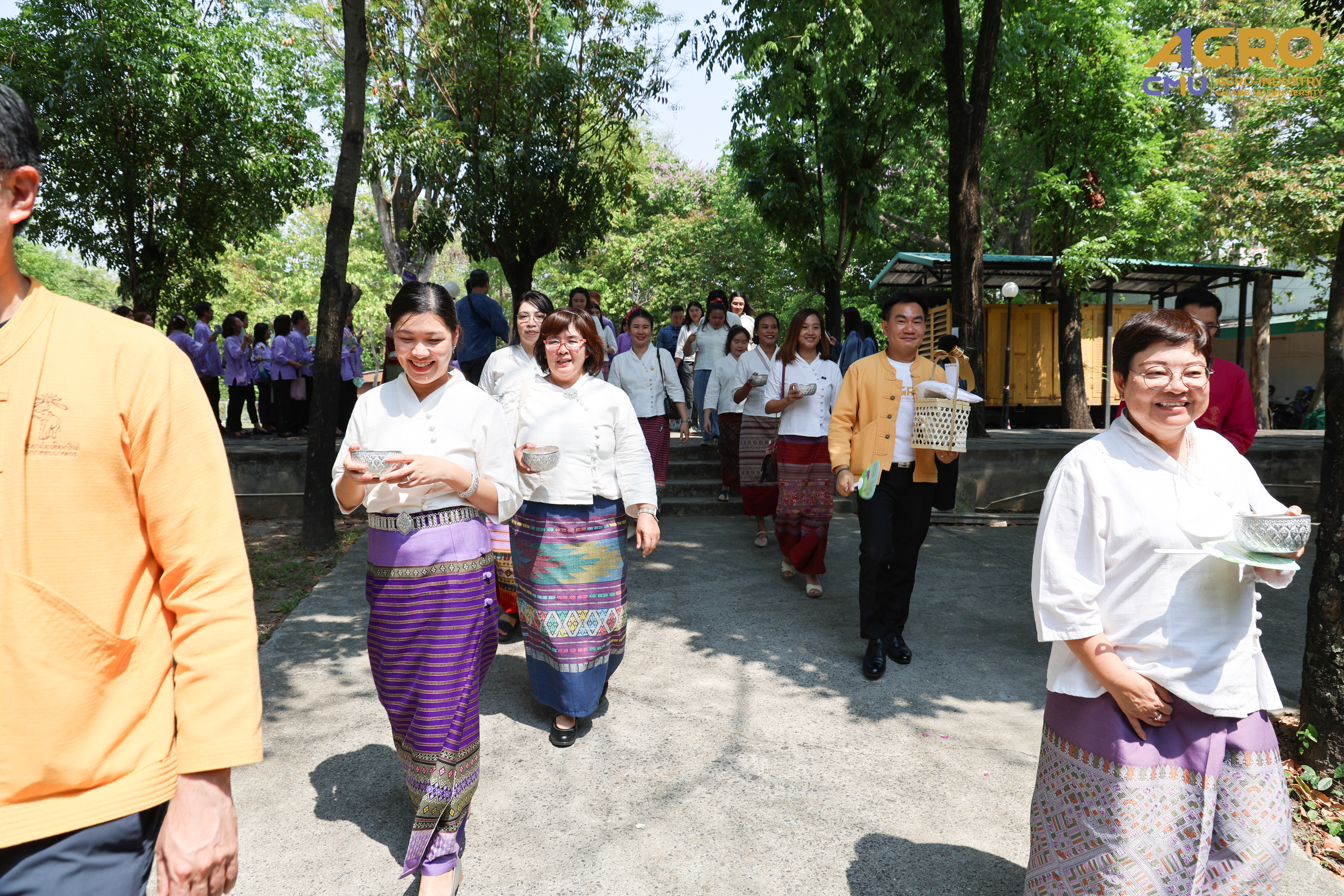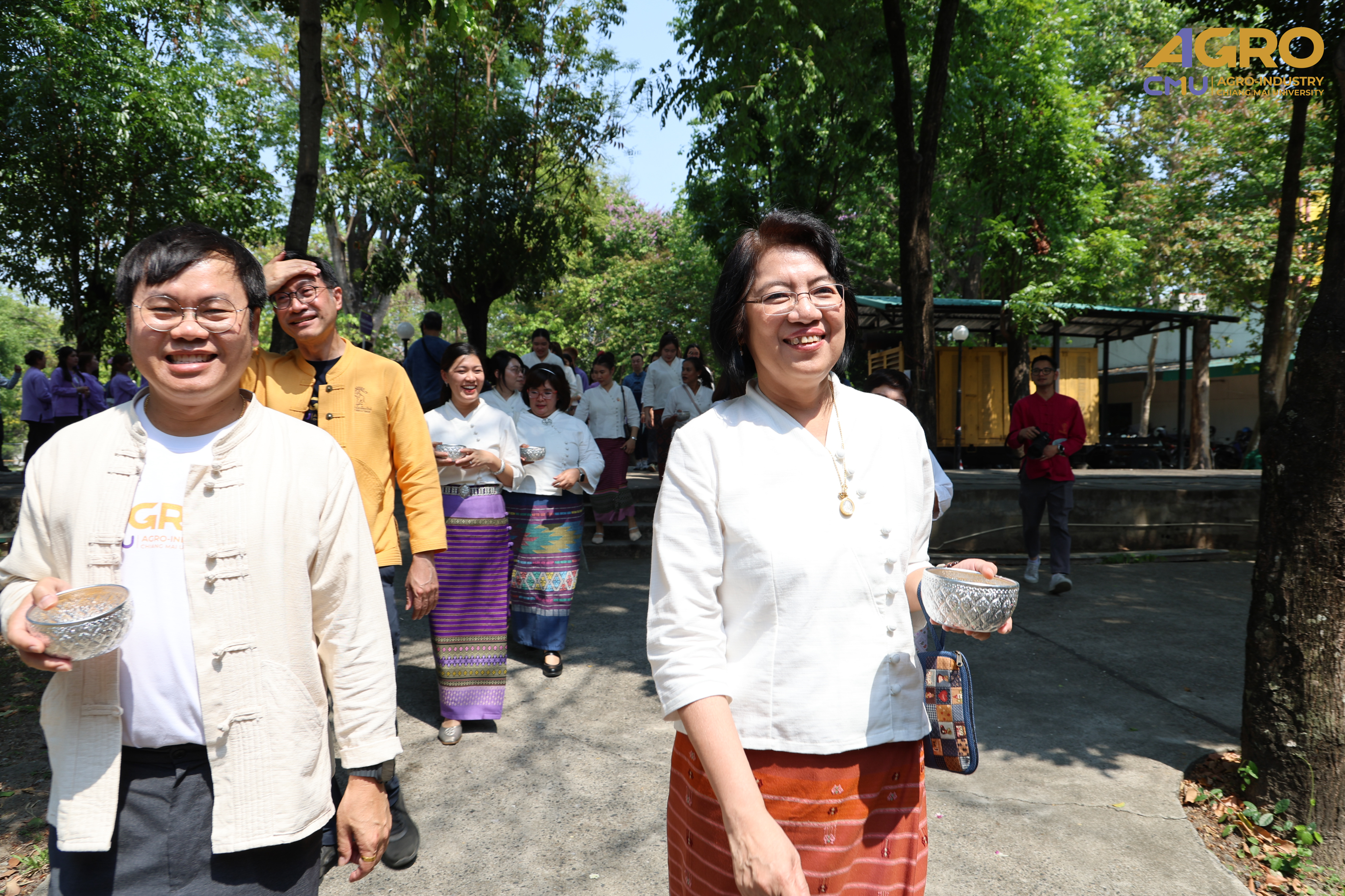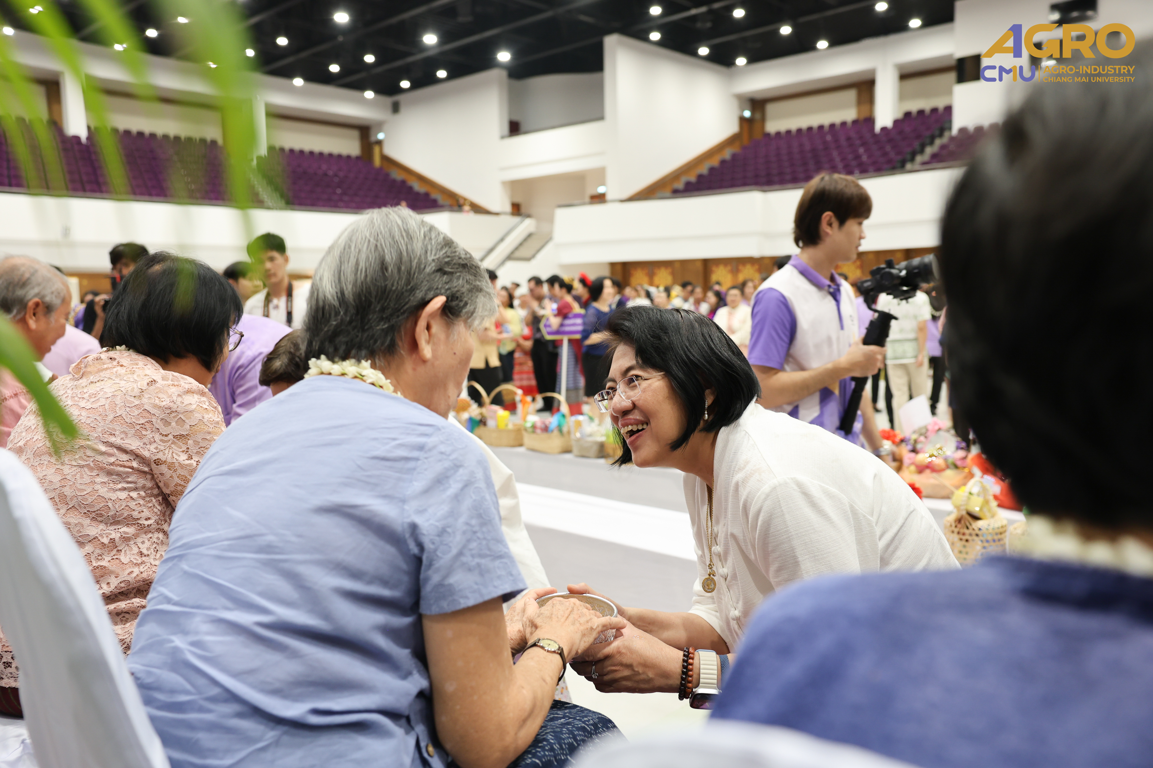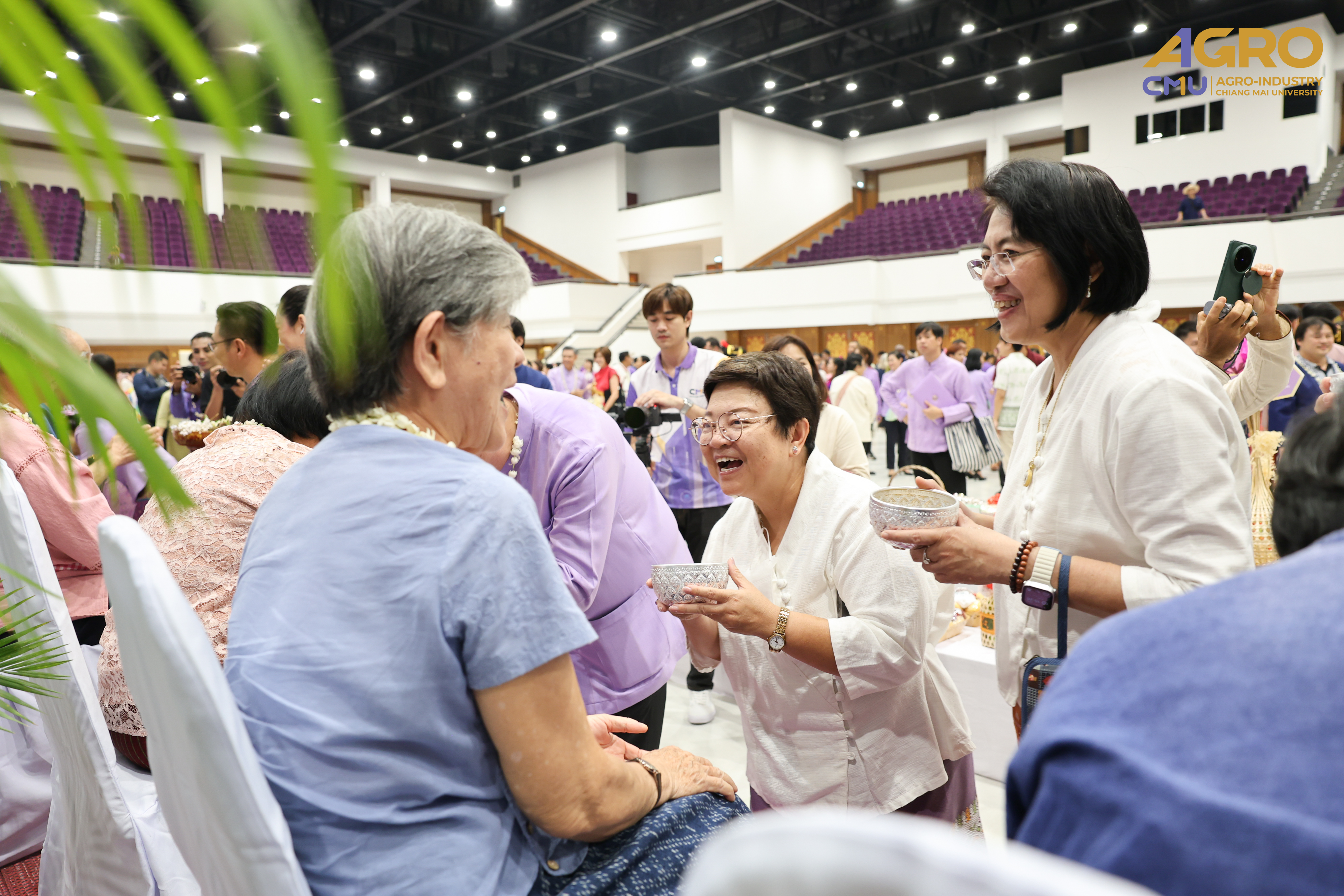 On April 25, 2025, Associate Professor Dr.Yuthana Phimolsiripol, Dean of the Faculty of Agro-Industry, along with the executives, faculty members, participated in “Rod Nam Dum Hua : the Water Pouring Ceremony of the University's President and Elders for the year 2025” , to pay respects to the senior members of the university and ask for blessings from the University's President and Elders for good fortune on the occasion of Songkran Festival which was held at CMU Convention Center, Chiang Mai University. The water blessing ceremony is a significant event in the university's continuous efforts to uphold and preserve Thai traditions, showing respect to elders, and fostering a sense of unity and gratitude within the community.