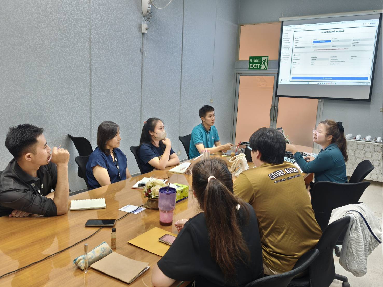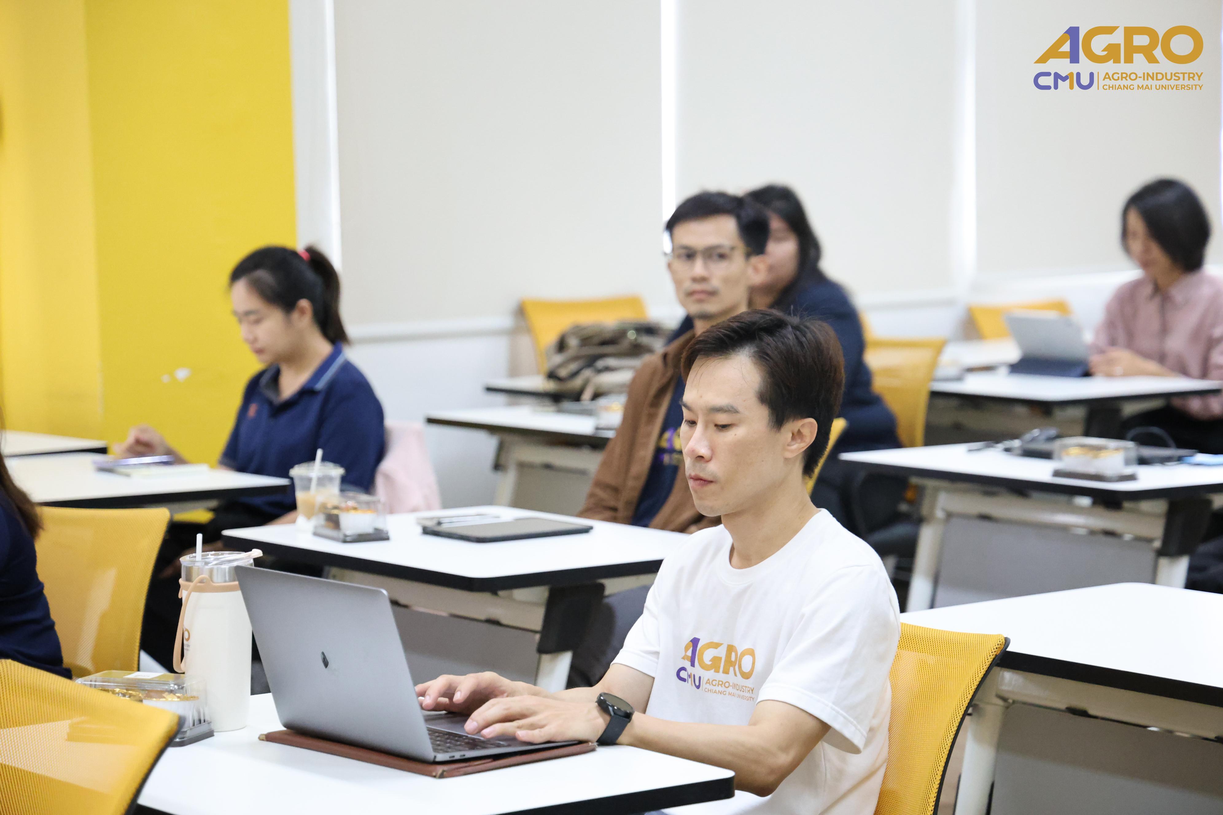 From May 1-2, 2025, the Faculty of Agro-Industry, Chiang Mai University, organized an activity for exchanging work methods among personnel from Chiang Mai and Samut Sakhon. This event involved staff from five departments under the faculty office. Assistant Professor Dr. Srisuwan Naruenartwongsakul, Deputy Dean, presided over the opening ceremony along with Assistant Professor Dr. Suphat Phongthai, Assistant Dean. Additionally, Ms. Piyanuch Sawasdee, Secretary of the Faculty of Agro-Industry, delivered a lecture on filling out General Functional workload forms, performance results according to the faculty office's indicators, and reviewing relevant rules, regulations, announcements, and practices. The event took place in Classroom 1-219, Building 1, 2nd Floor, Faculty of Agro-Industry, Chiang Mai University.