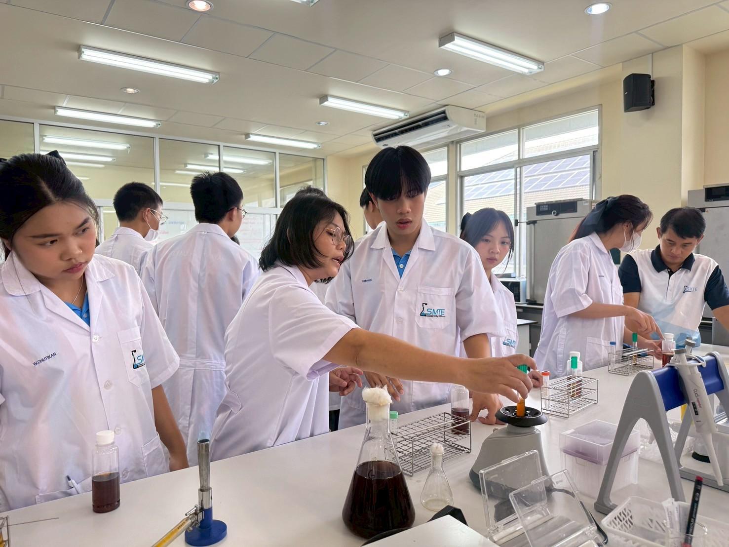 The training was led by experts from the Department of Industrial Biotechnology, including Dr. Niphawan Panti, Dr. Kamon Yakul, Mr. Sathian Boonkum and Mrs. Nunnapat Nguenkhamkhong. During the workshop, students gained both theoretical knowledge and hands-on experience in the lab. They also explored advanced scientific equipment and received valuable insights from our faculty members. This activity was designed to spark students’ interest in food technology and provide them with real-world learning experiences as they prepare for university life.