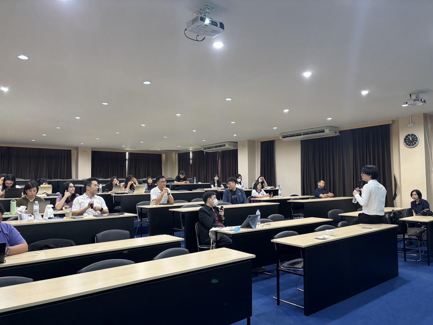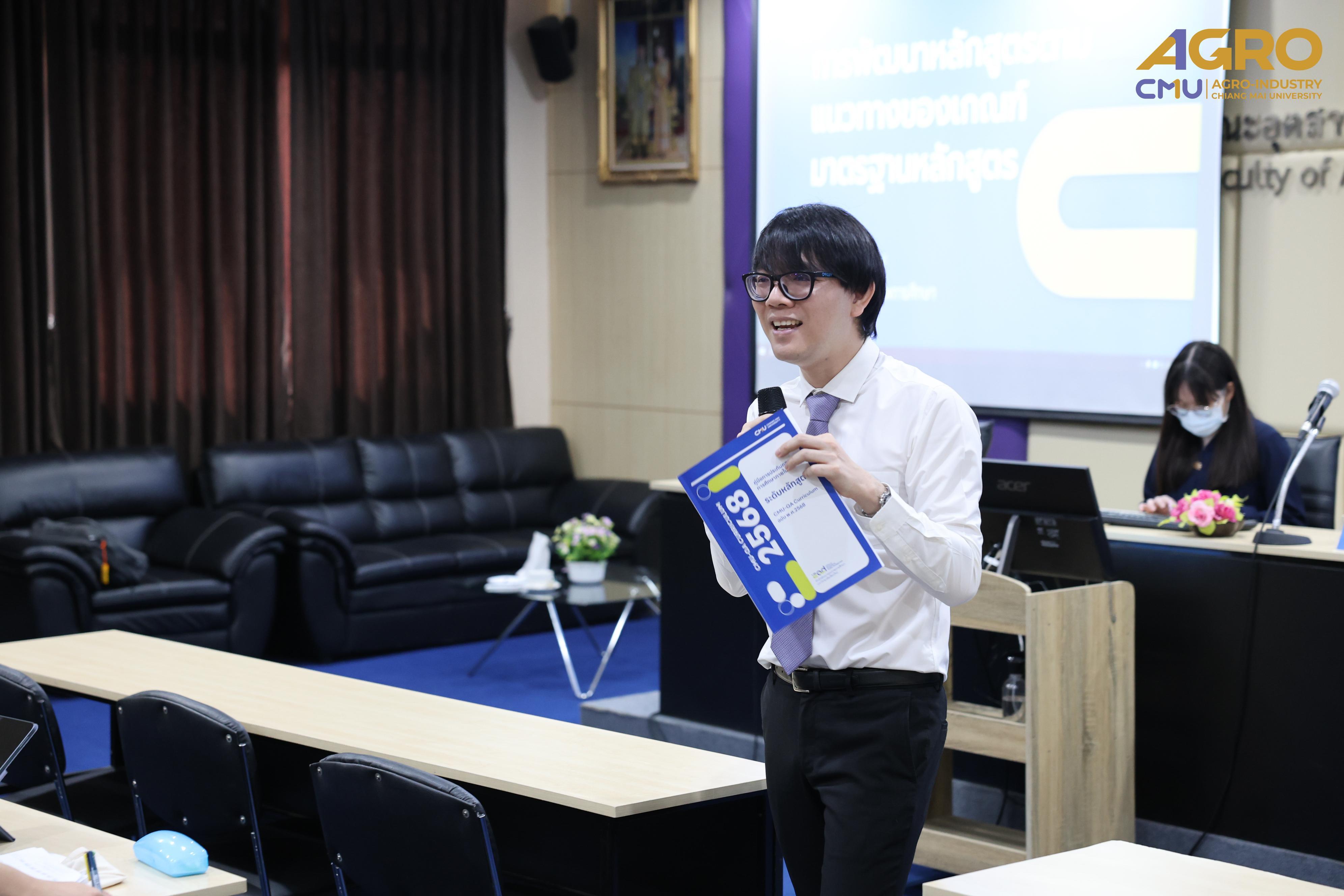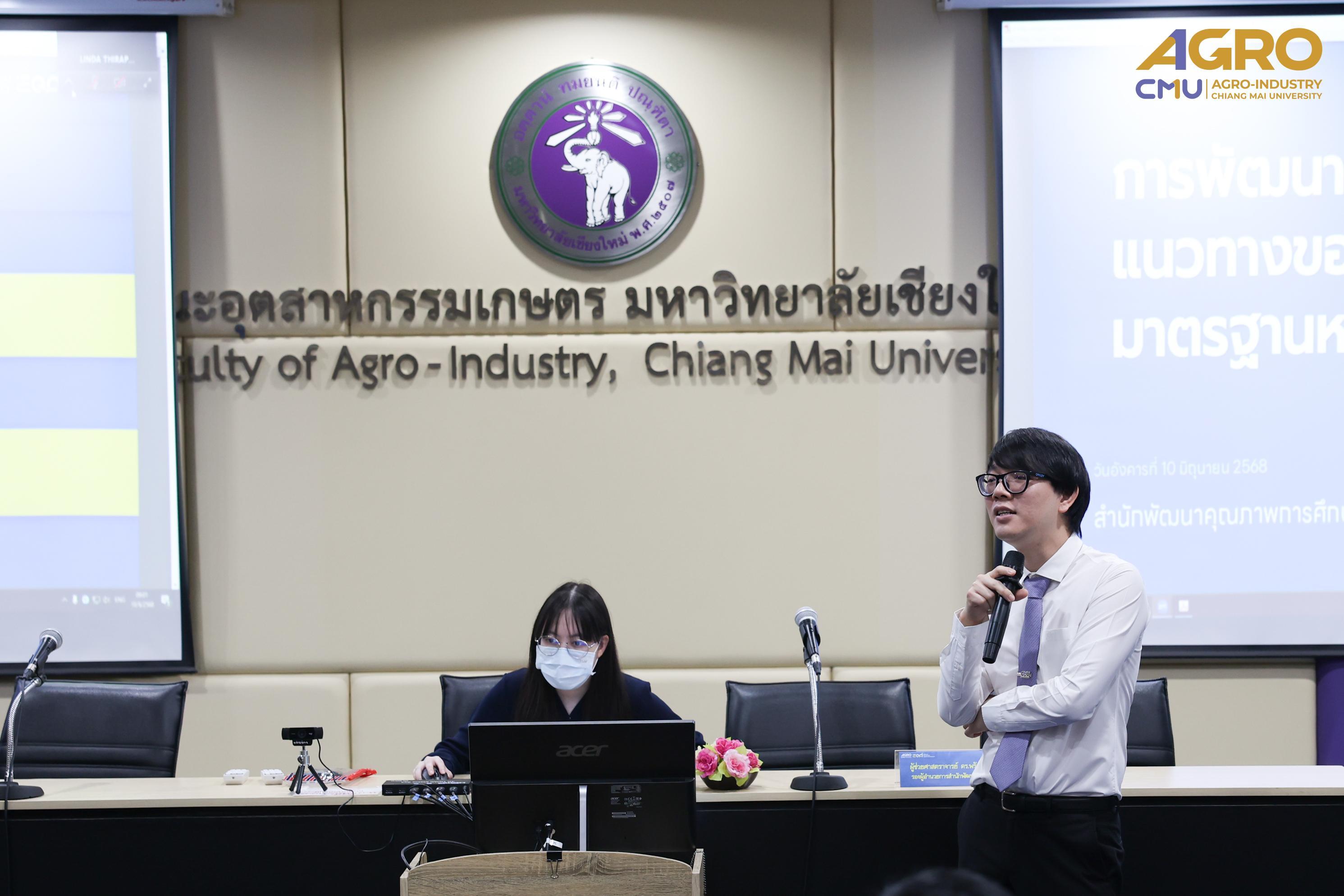 Associate Professor Dr. Suthee Wangtuay, Vice Dean of the Faculty of Agro-Industry, delivered the opening remarks for the event. The training featured Assistant Professor Dr. Prompong Sukansil, Deputy Director of the Office of Educational Quality Development, as the key speaker who provided comprehensive knowledge on curriculum improvement guidelines, processes, and procedures, including higher education curriculum standards and criteria.