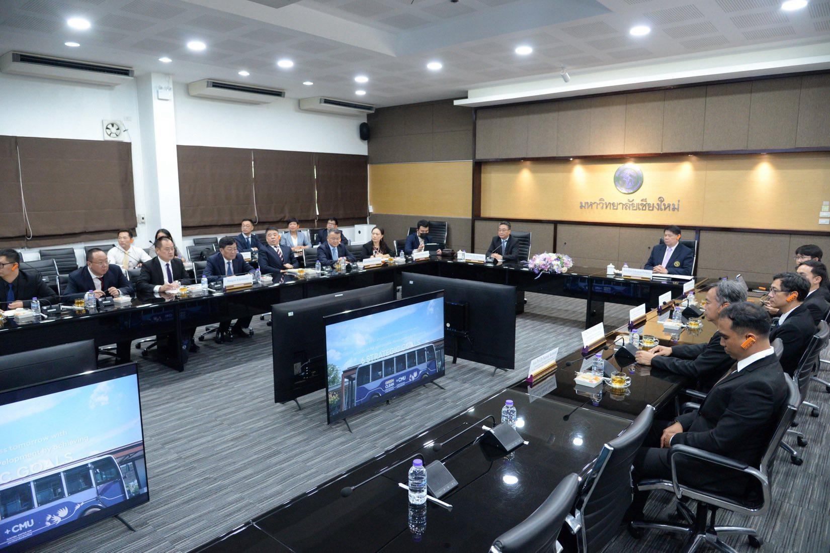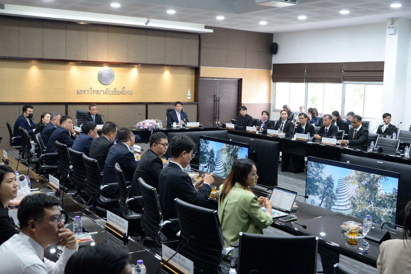 ในการนี้ ผู้ช่วยศาสตราจารย์ทศพร พิชัยยา รองอธิการบดีมหาวิทยาลัยเชียงใหม่ ได้กล่าวต้อนรับและนำเสนอแนวทางความร่วมมือระหว่างมหาวิทยาลัยเชียงใหม่กับฝ่ายจีนในด้านการเกษตร โดยเน้นประเด็นที่เกี่ยวข้องกับเครื่องจักรกลการเกษตร ระบบชลประทาน ความมั่นคงทางอาหาร การฝึกอบรมบุคลากร และโครงการแลกเปลี่ยนนักศึกษา