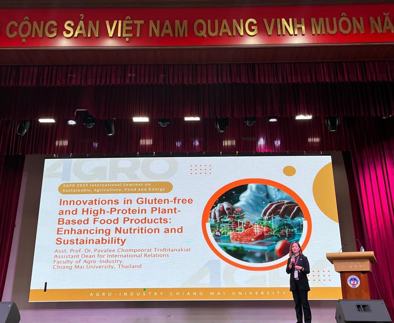 During June 26–28, 2025, Assistant Professor Dr. Pavalee Chomphurat Tridtitanakiat, Assistant Dean of the Faculty of Agro-Industry, Chiang Mai University, was invited as a Keynote Speaker at the SAFE Network 2025 International Seminar on Sustainable Agriculture, Food and Energy, held in National Economics University, Vietnam.