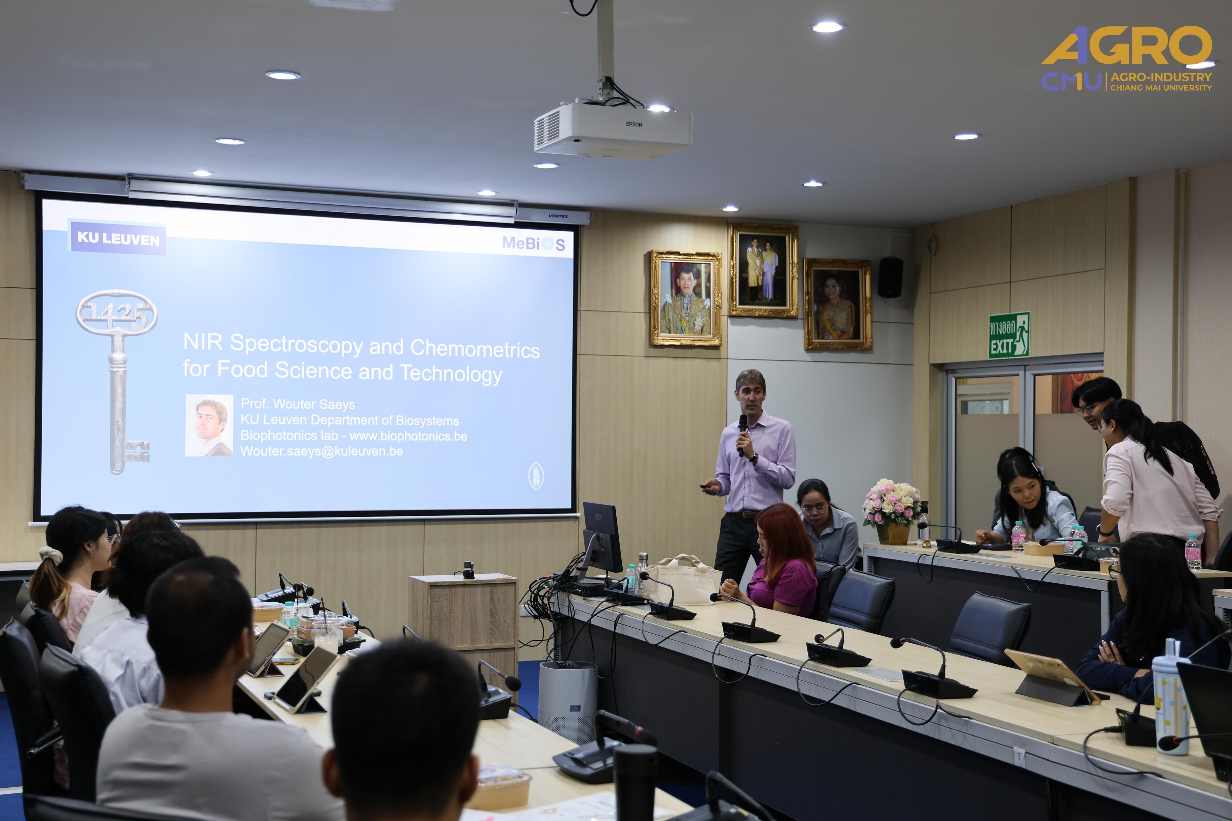 On July 8, 2025, Assoc. Prof. Sudarat Jiamyangyuen and Dr. Saowaluk Rungchang from the Faculty of Agro-Industry organized a special lecture titled “NIR Spectroscopy, Chemometric, and Data Analysis for Food and Nutrition Science.” The lecture was honored by Professor Wouter Saeys from KU Leuven, Belgium, as the guest speaker.