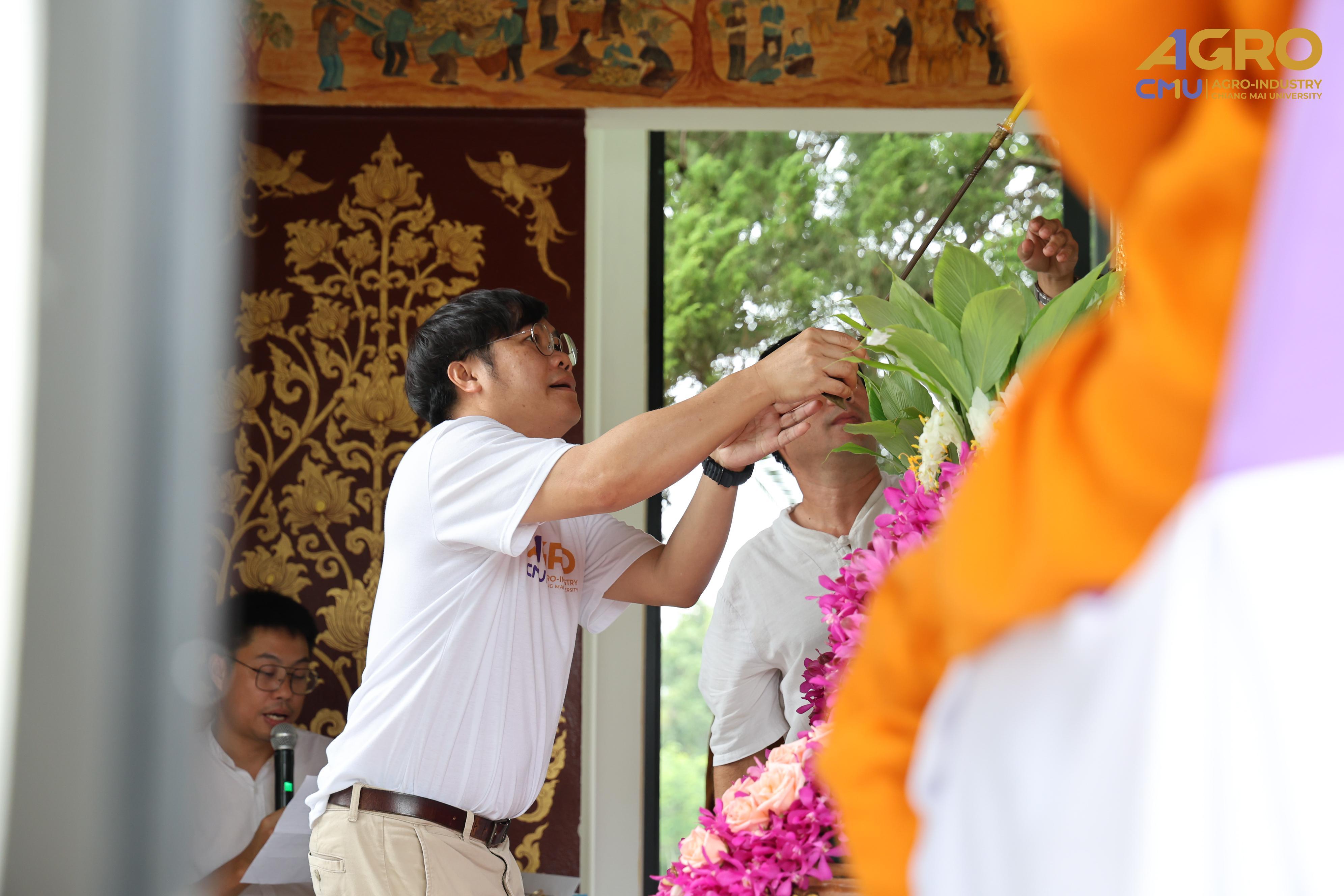 On July 17, 2025, Associate Professor Dr. Sutee Wangtueai, Vice Dean of the Faculty of Agro-Industry, Chiang Mai University, participated in the Ceremonial Placement of the Chatra (Tiered Umbrella) atop the Phra Phuttha Saen Yat Buddha image. This sacred ritual was held as an act of reverence and spiritual offering to honor the Buddha and to bring auspicious blessings to faculty members, staff, and students from various departments of the university. The ceremony took place at the Phra Phuttha Saen Yat Hall, Mae Hia, Faculty of Agriculture, Chiang Mai University.