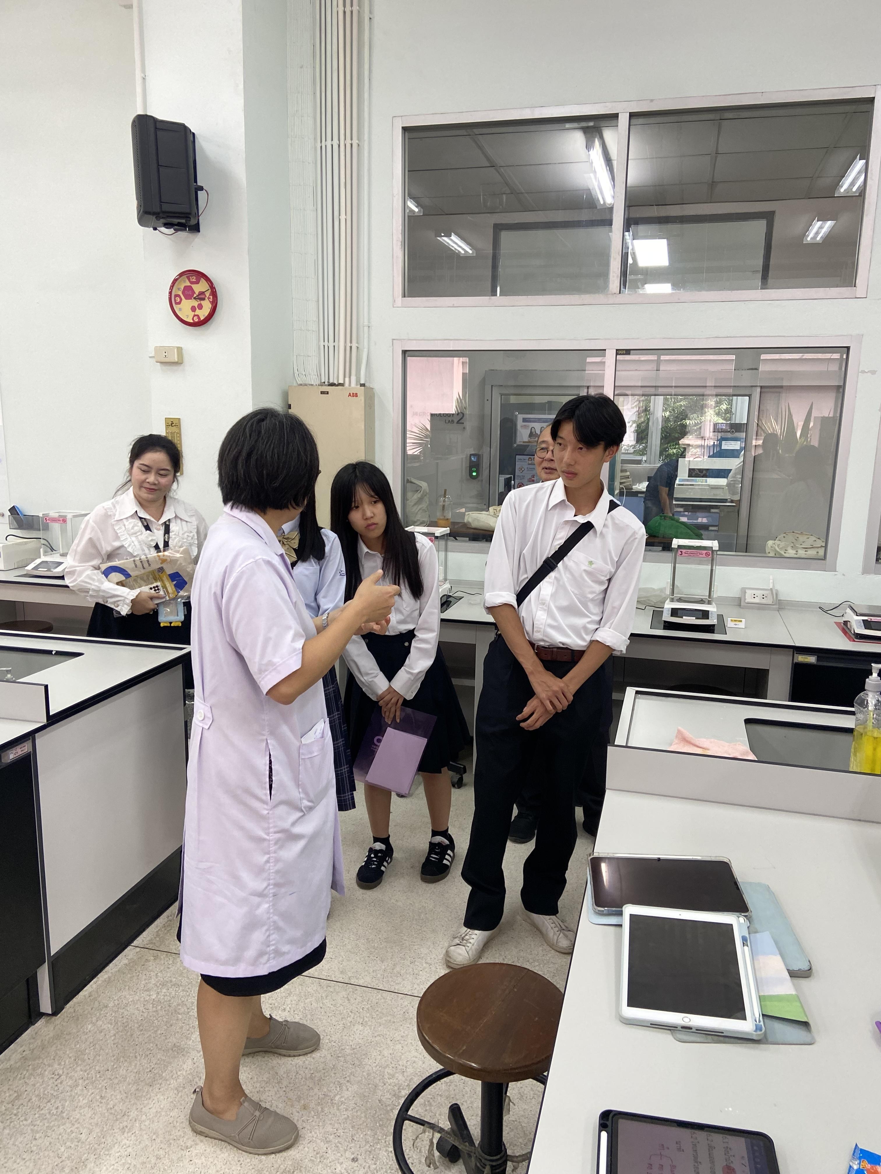 The students were warmly received by Asst. Prof. Dr. Siraphat Taesuwan and Mr. Wimon Khambunrueang from the Educational Services Section. The visit included an introduction to the international program and a guided tour of the faculty’s key facilities — including classrooms, scientific laboratories, and the Pilot Plant — to provide insight into both theoretical and hands-on learning environments.