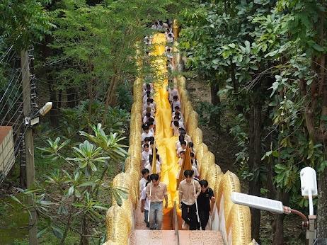 เมื่อถึงวัดพระธาตุ นักศึกษาได้ร่วมกันกราบไหว้ขอพร “หลวงพ่อทันใจ” พระพุทธรูปศักดิ์สิทธิ์คู่บ้านคู่เมืองของจังหวัดเชียงใหม่ และเข้าร่วมกิจกรรม “ห่มผ้าพระธาตุ” เพื่อความเป็นสิริมงคล ซึ่งเป็นการสืบสานและอนุรักษ์ประเพณีอันดีงามของล้านนาให้คงอยู่สืบไป