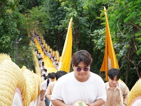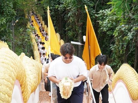 The event began at the Faculty with vibrant cultural performances, including traditional Lanna dance and the Sabatchai drum show, showcasing the beauty of local heritage. Students then proceeded together to Wat Phra That Doi Kham to participate in the pilgrimage ceremony.