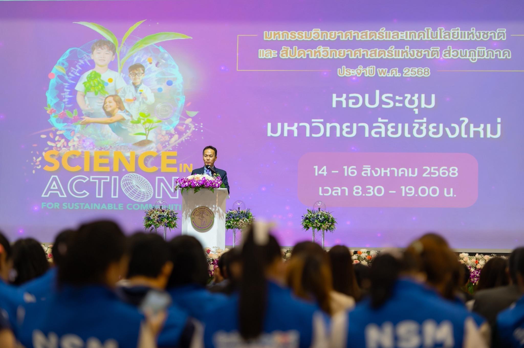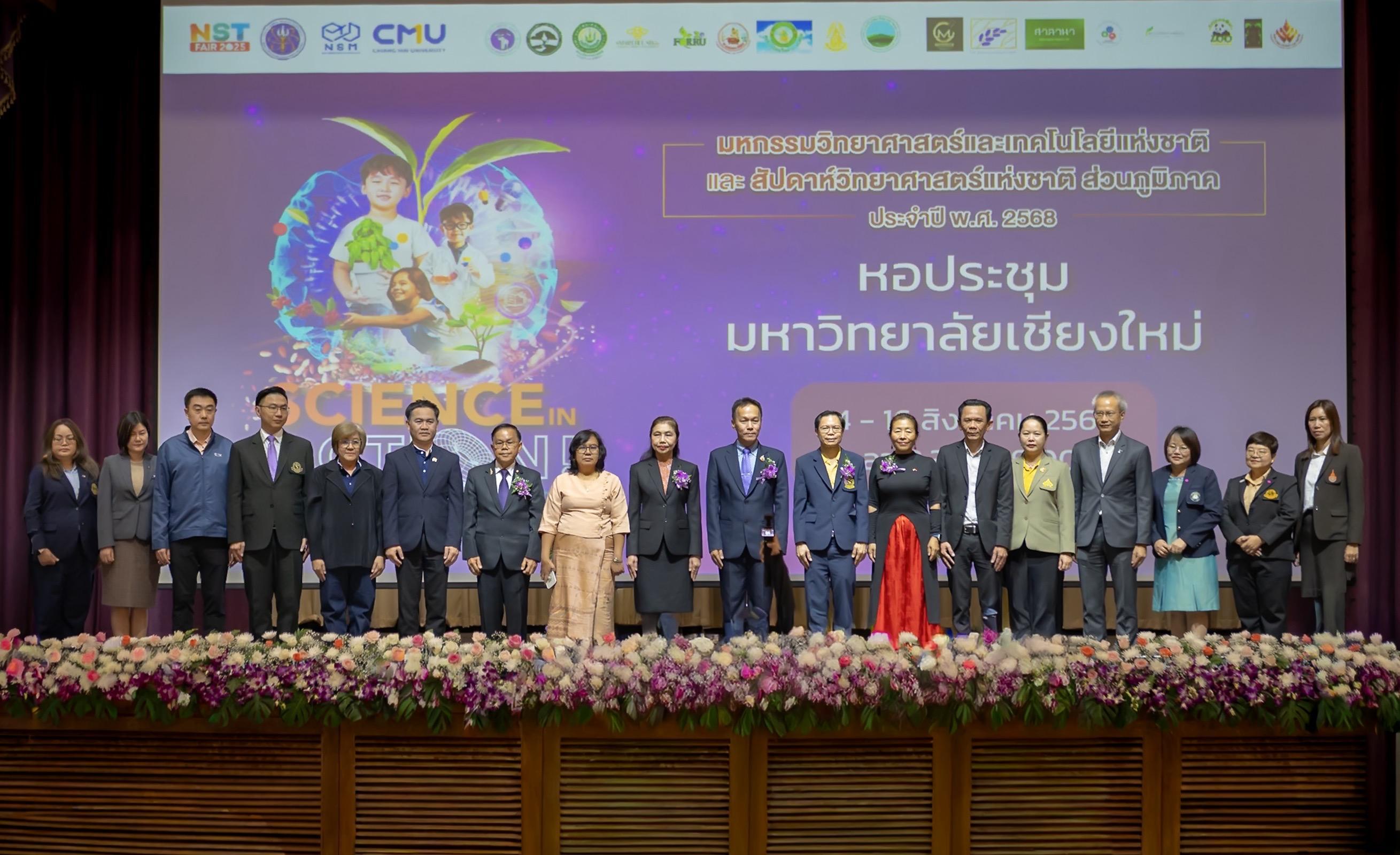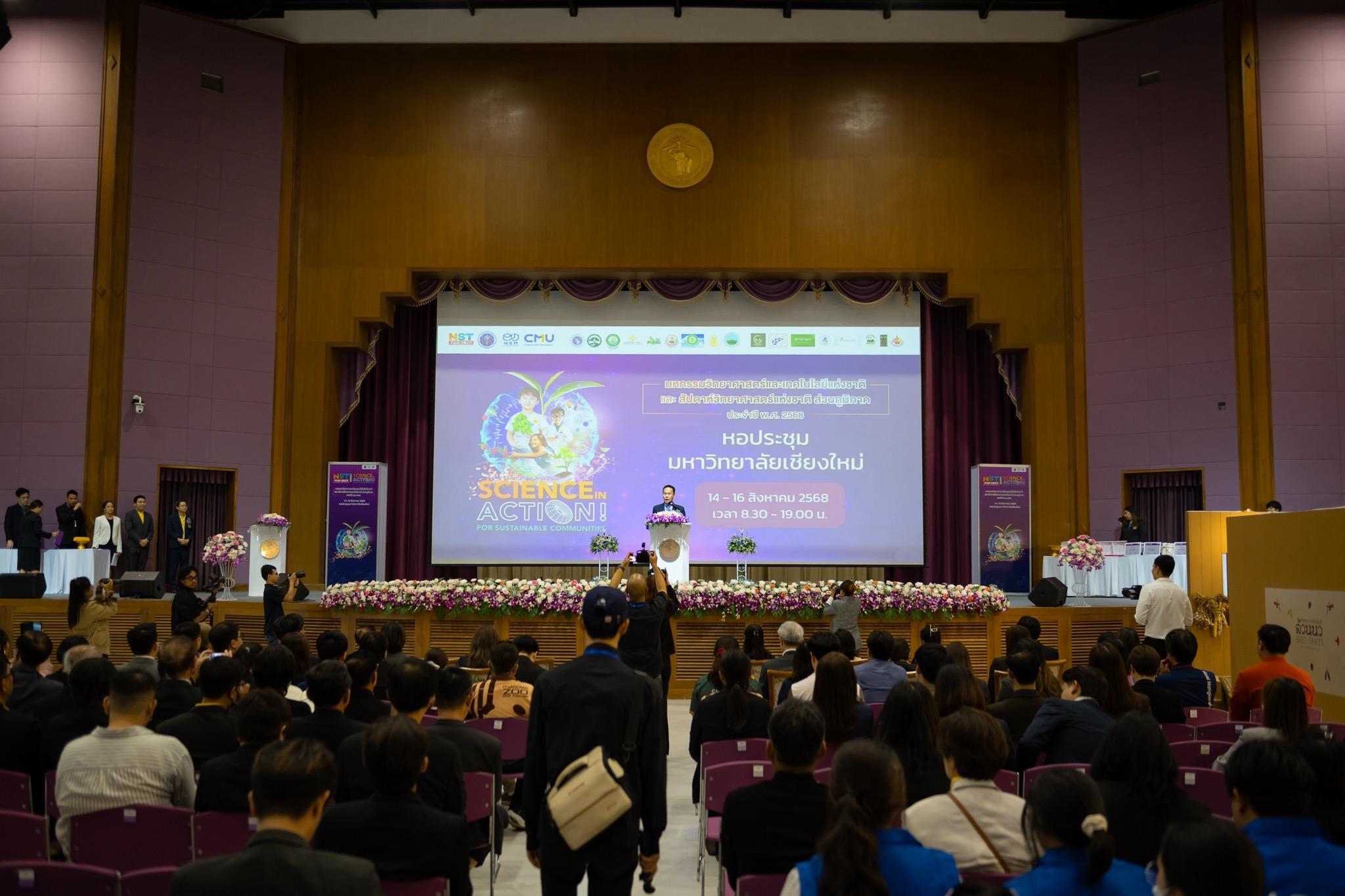 The ceremony was graciously presided over by Mr. Siwa Thamikanon, Deputy Governor of Chiang Mai Province, who delivered the welcome and appreciation remarks. This was followed by a presentation from Ms. Sirirat Sermwithoon, Director of the Central Services Office of the National Science Museum (NSM), outlining the objectives and background of the event. Associate Professor Dr. Piyapong Niamsup, Dean of the Faculty of Science, Chiang Mai University, also extended his congratulations and expressed his support for the event’s initiatives.
