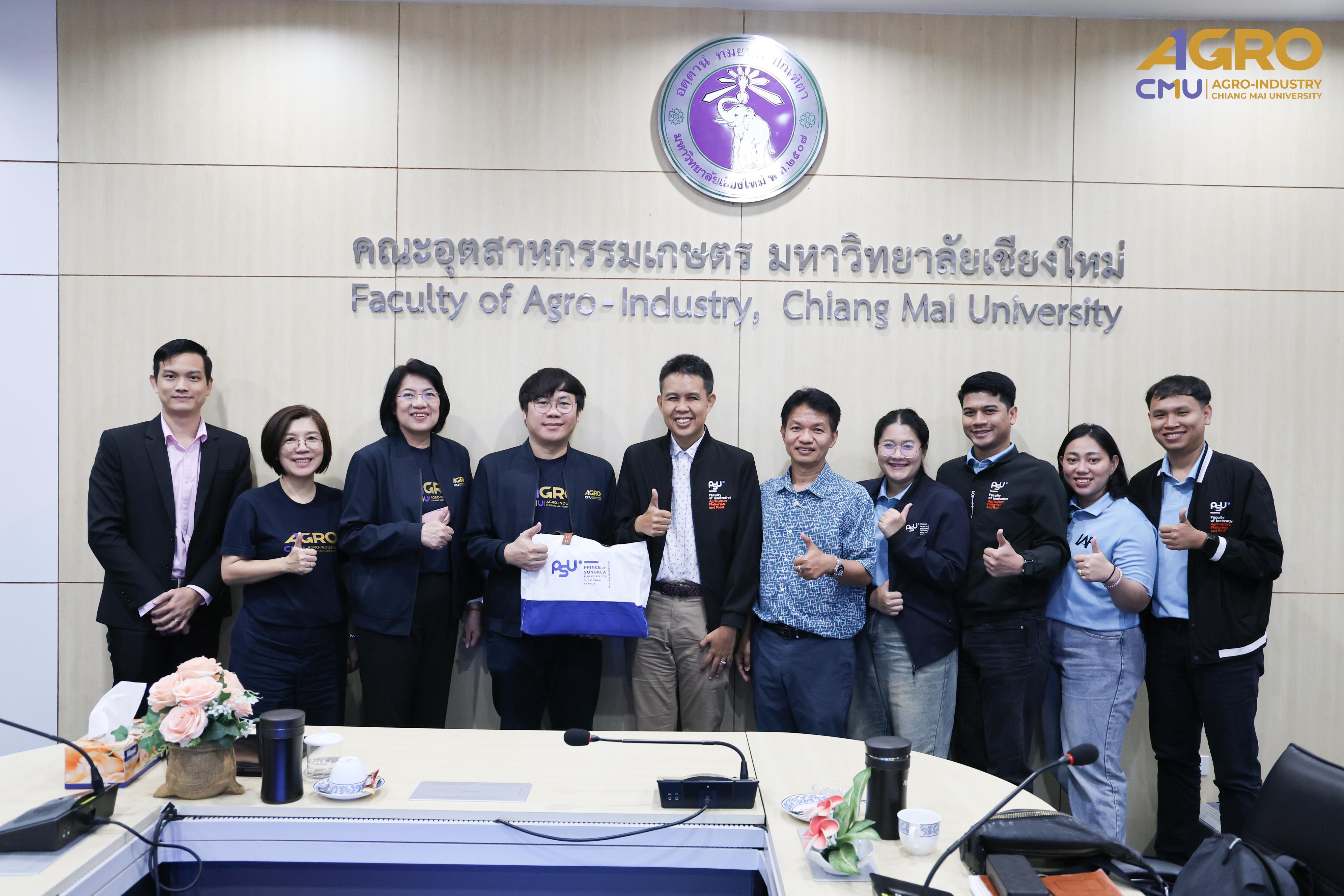On Tuesday, September 2, 2025, administrators and personnel from the Faculty of innovative agriculture and fisheries, Prince of Songkla University, Surat Thani Campus, led by Asst. Prof. Chatchawan Chotimakorn, Ph.D., Associate Dean for Social Mission and Research, and Assoc. Prof. Theerasak Panwichai, Ph.D., Chairman of the Bachelor of Science Program Committee in Food Technology, conducted a study visit and knowledge exchange on internal quality assurance at the curriculum level for the Food Science and Technology program. The visit was hosted by Assoc. Prof. Sutee Wangtueai, Ph.D. , Asst. Prof. Srisuwan Naruenartwongsakul, Ph.D. Associate dean, Tabkrich Khumsap, Ph.D., Assistant Dean, and Pipat Tangjaidee, Ph.D., Head of the Food Science and Technology Department, who participated in welcoming the delegation and engaging in academic knowledge exchange and collaboration discussions at Conference Room 3, Faculty of Agro-Industry