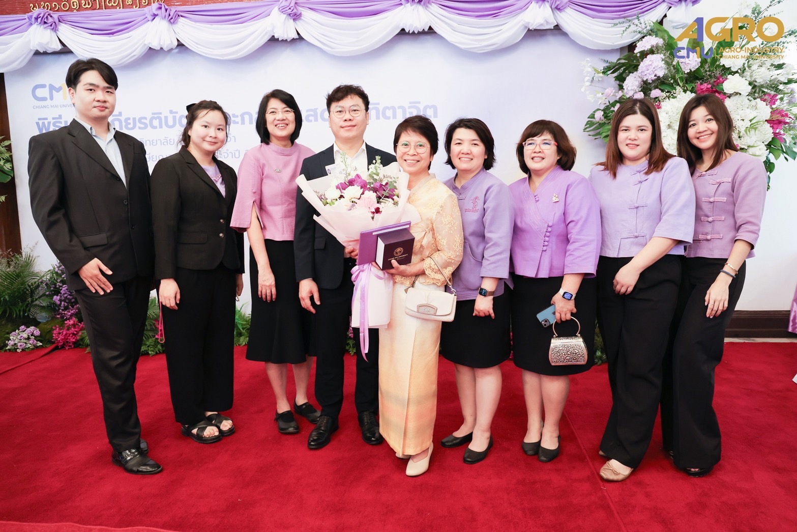 This year, the Faculty of Agro-Industry proudly honors Ms. Sangwan Wannakul, who has reached her retirement, in recognition of her dedication, perseverance, and tireless contributions to the growth and development of Chiang Mai University throughout her years of service. The ceremony took place at the Dhamma pavilion, Chiang Mai University.