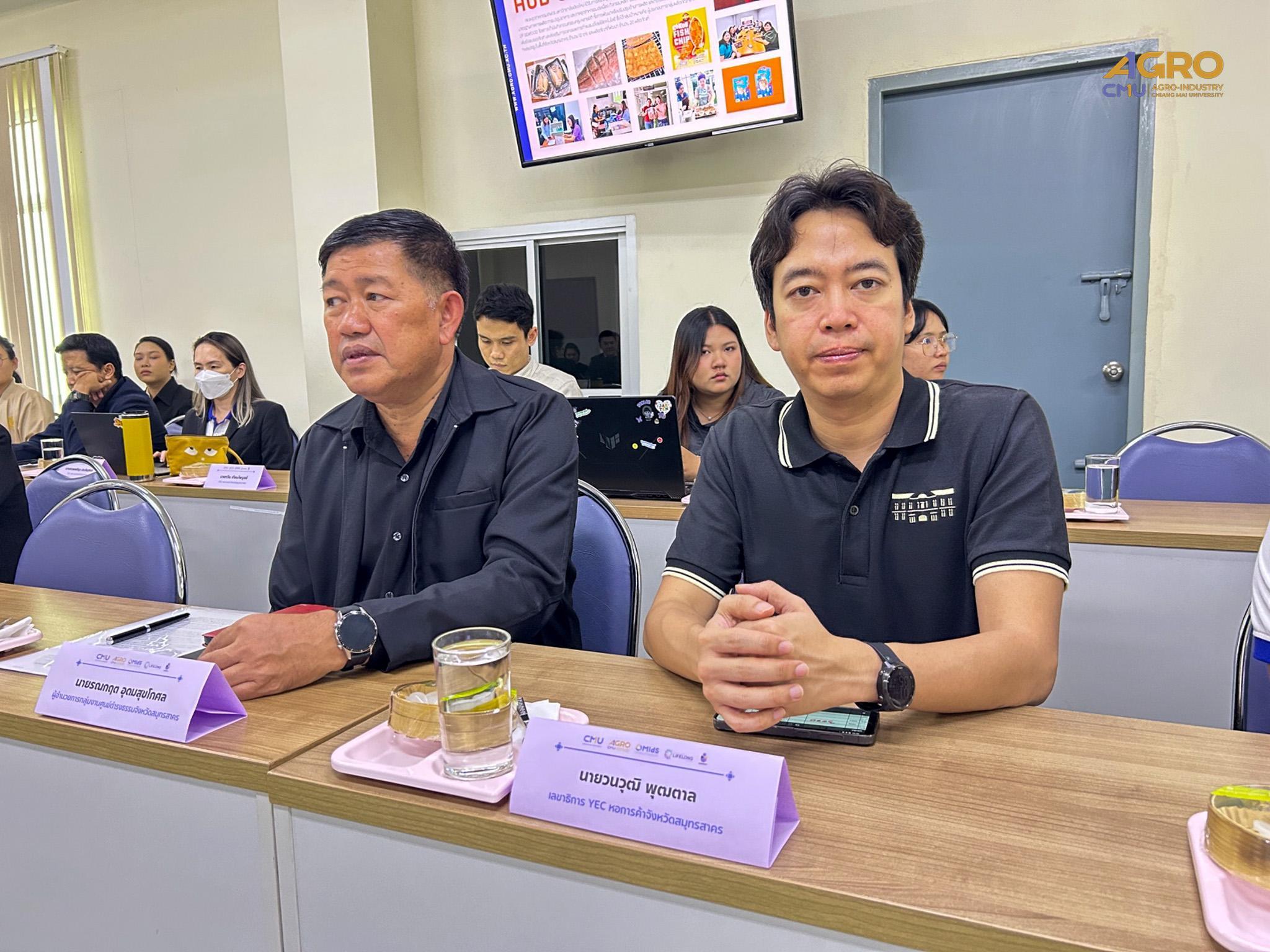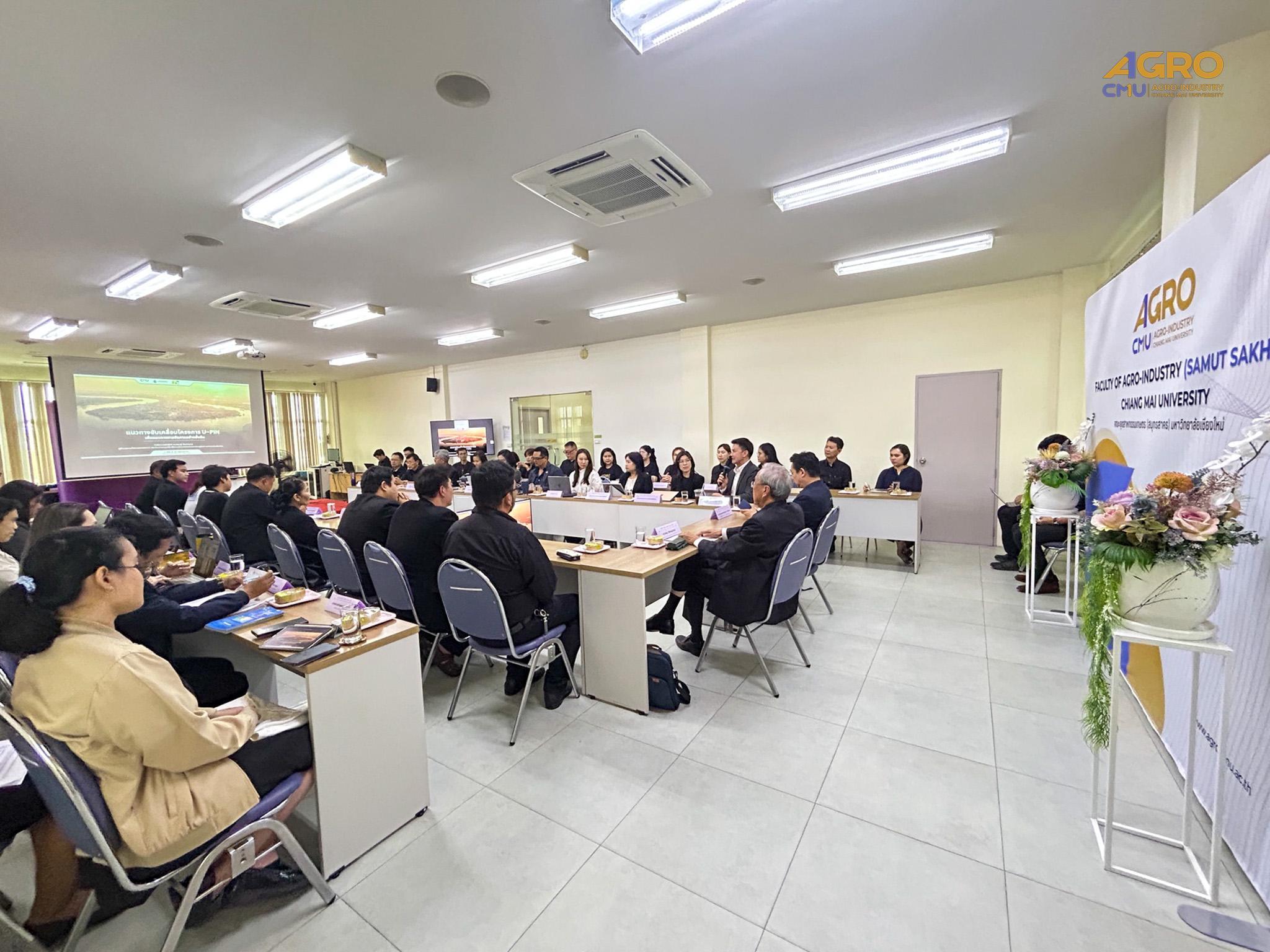 On October 31, 2025, the Faculty of Agro-Industry (Samut Sakhon), in collaboration with the University Academic Service Center (UNISERV), the School of Lifelong Education (LE), and the Multidisciplinary and Interdisciplinary School (MIdS), convened a consultative meeting to explore collaborative strategies for advancing the development of Samut Sakhon Province. The event, held at the Faculty of Agro-Industry (Samut Sakhon), Chiang Mai University, saw the participation of 40 representatives from both government and private sectors who engaged in an exchange of insights. This discussion operated within the U-PIN CMU (University–Planet–Innovation–Network) framework, specifically aiming to promote the “Blue Carbon” concept for the sustainable restoration and management of marine and coastal resources, thereby contributing to Thailand’s Net Zero 2050 goal. The meeting represents a crucial step for Chiang Mai University in leveraging its knowledge, research, and innovation to drive the sustainable development of Samut Sakhon through comprehensive multi-sectoral collaboration.