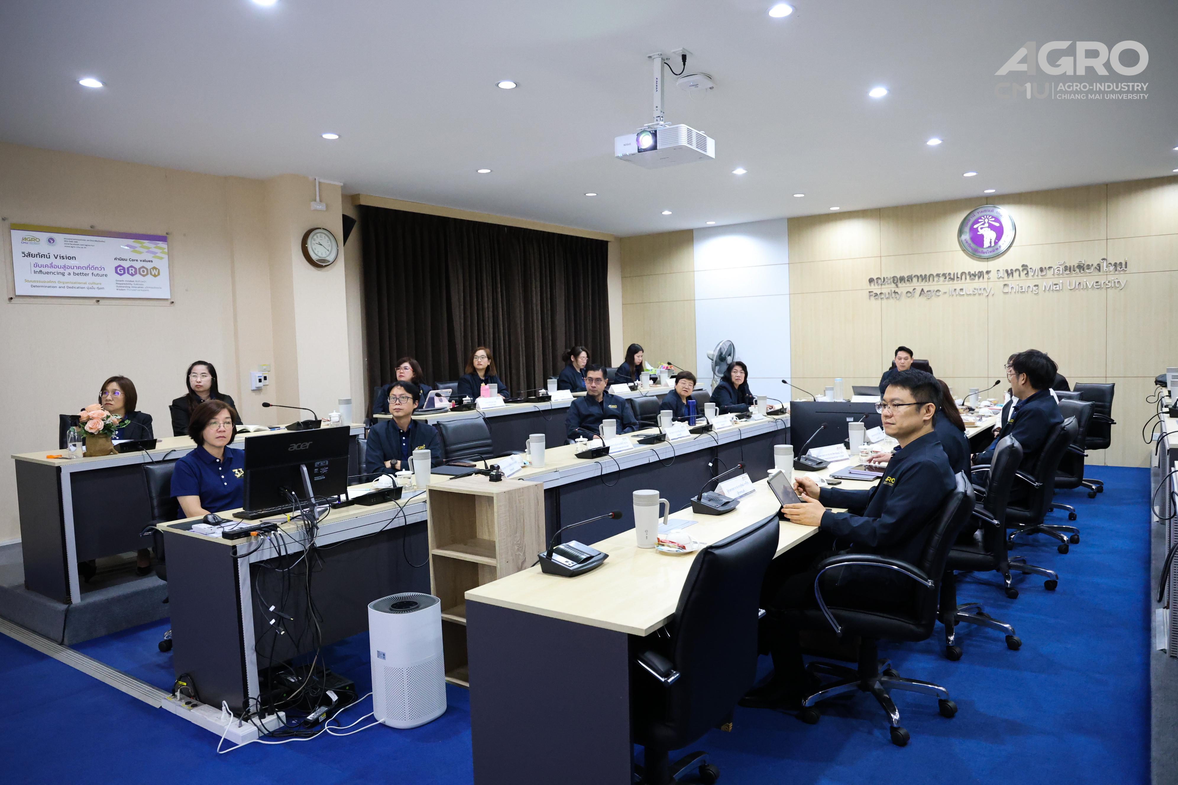 On January 12, 2026, the Faculty of Agro-Industry, Chiang Mai University, welcomed the Internal Organizational Quality Assessment Committee under the Chiang Mai University Education Criteria for Performance Excellence (CMU-EdPEx) for the academic year 2024. The assessment was led by Mr. Kittipong Temiyapradit (External Expert, TQA Assessor) as Chair, together with Associate Professor Dr. Krantarat Sunthornphan and Assistant Professor Tawanachai Potihom (External Experts, TQA Assessors) as committee members. Associate Professor Dr. Yuthana Phimolsiripol, Dean of the Faculty of Agro-Industry, along with the management team and staff, presented the faculty’s operational achievements and future development directions. The committee provided valuable feedback and recommendations to enhance organizational management and drive the Faculty toward excellence in education, research, and academic services, creating sustainable value for society.