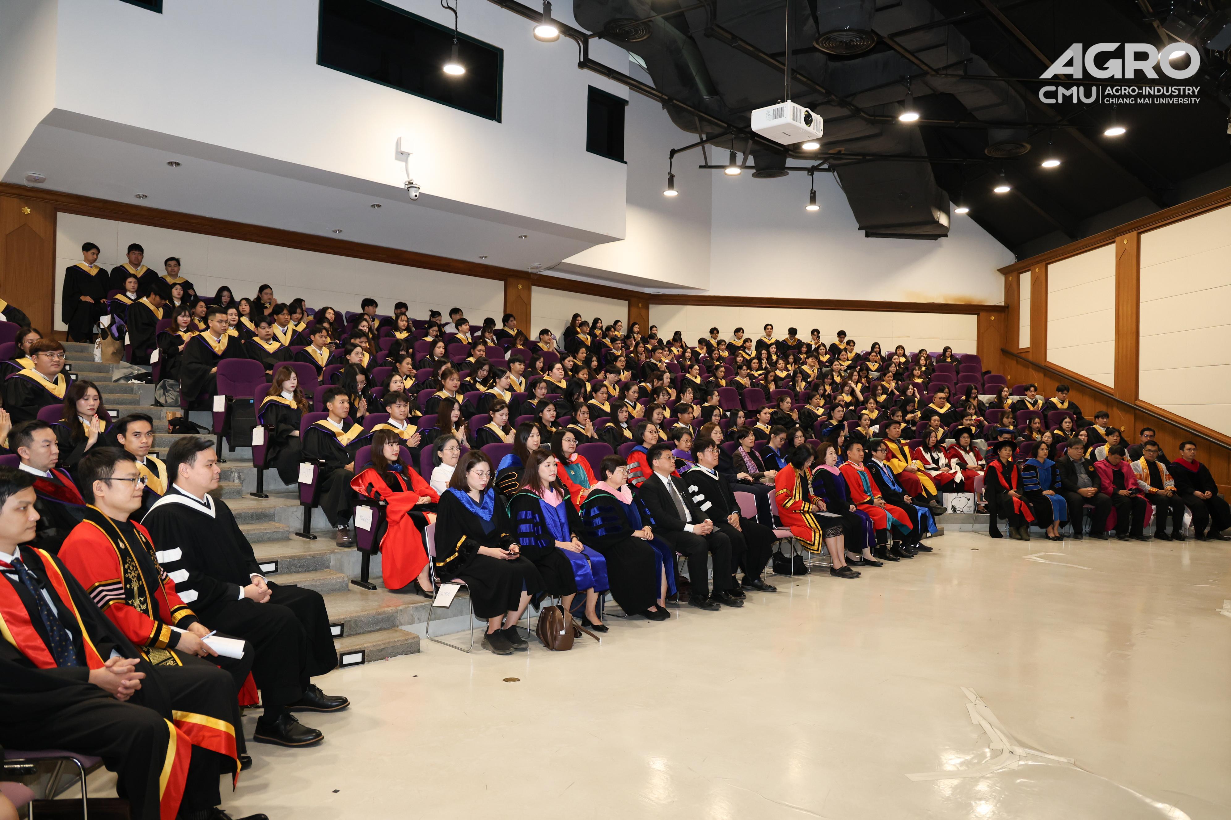 เมื่อวันอาทิตย์ที่ 18 มกราคม 2569 รองศาสตราจารย์ ดร.ยุทธนา พิมลศิริผล คณบดีคณะอุตสาหกรรมเกษตร มหาวิทยาลัยเชียงใหม่ เข้าร่วมให้เกียรติเป็น “ด้วยรักและผูกพัน รับขวัญบัณฑิต อก.มช.” เพื่อแสดงความยินดีกับบัณฑิตมหาวิทยาลัยเชียงใหม่ รุ่นที่ 60 และร่วมฝึกซ้อมการขานชื่อบัณฑิต ในพิธีพระราชทานปริญญาบัตร ครั้งที่ 60 (ส่วนของคณะ) ณ ห้องประชุมเล็ก หอประชุมใหญ่มหาวิทยาลัยเชียงใหม่ ภายในงานประกอบด้วยกิจกรรมแสดงความยินดี รับขวัญบัณฑิต และการฝึกซ้อมย่อยวันแรก เพื่อเตรียมความพร้อมก่อนเข้าร่วมพิธีพระราชทานปริญญาบัตรอย่างเป็นทางการ บรรยากาศเป็นไปด้วยความอบอุ่น เต็มไปด้วยรอยยิ้ม ความภาคภูมิใจ และความผูกพันระหว่างคณะ อาจารย์ และบัณฑิต ทั้งนี้ มีผู้บริหาร คณาจารย์ บุคลากร บัณฑิต มหาบัณฑิต ดุษฎีบัณฑิต รวมถึงนักศึกษาปัจจุบัน เข้าร่วมกิจกรรมมากกว่า 400 คน