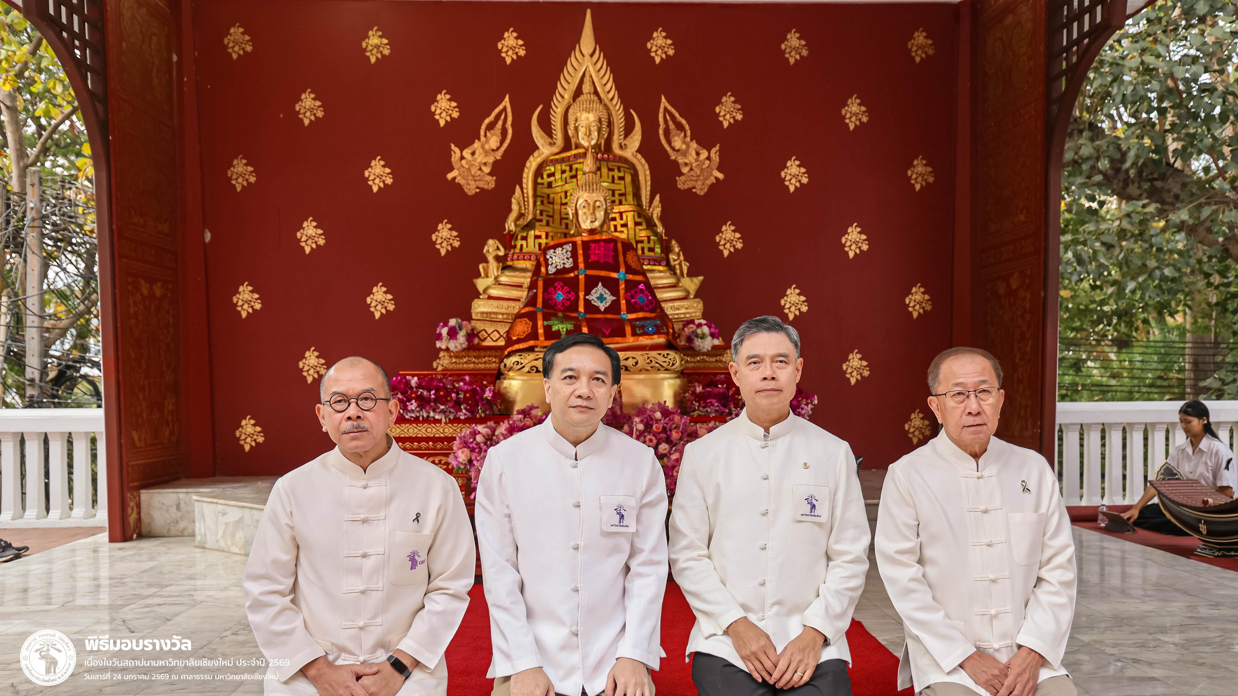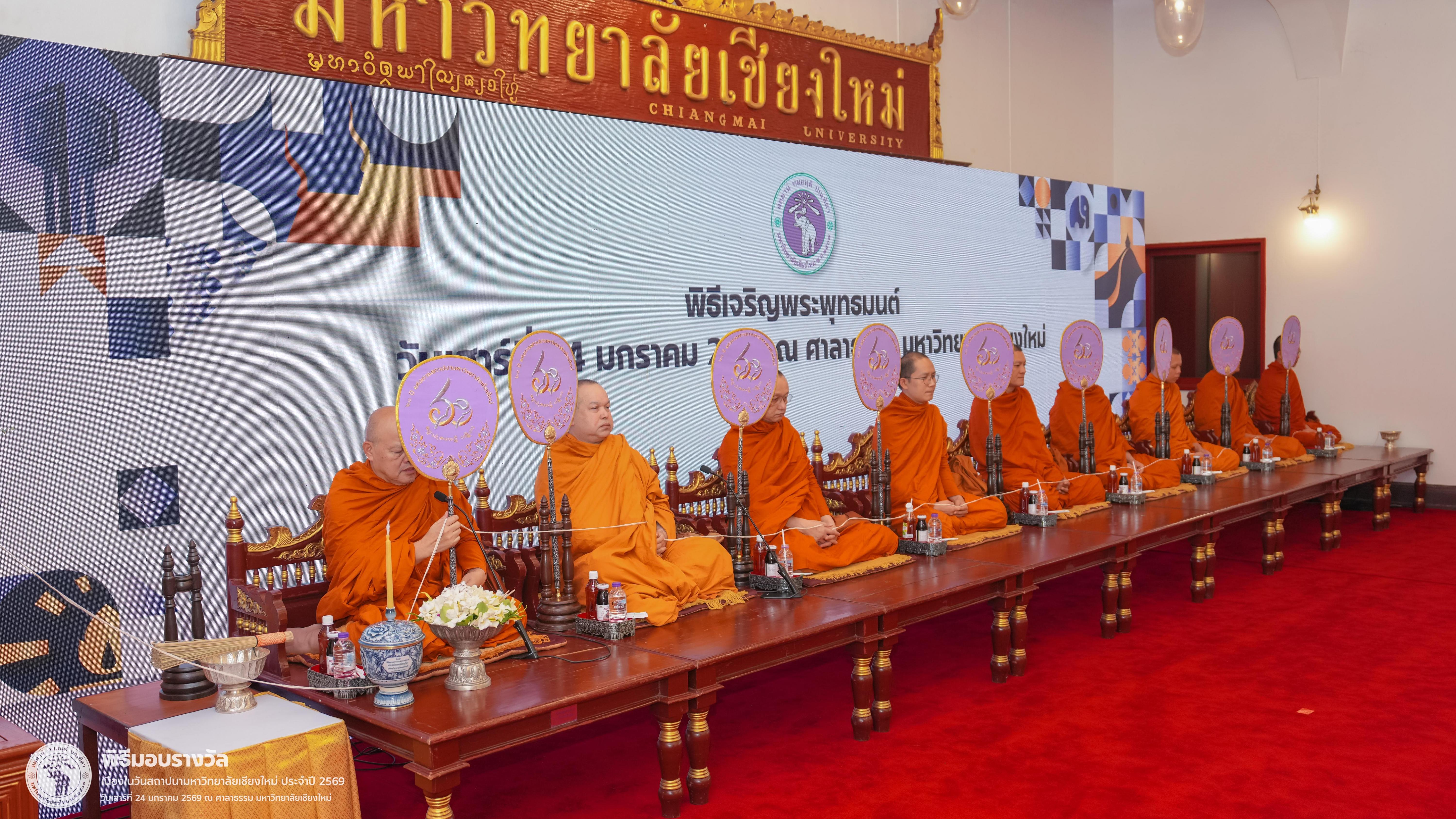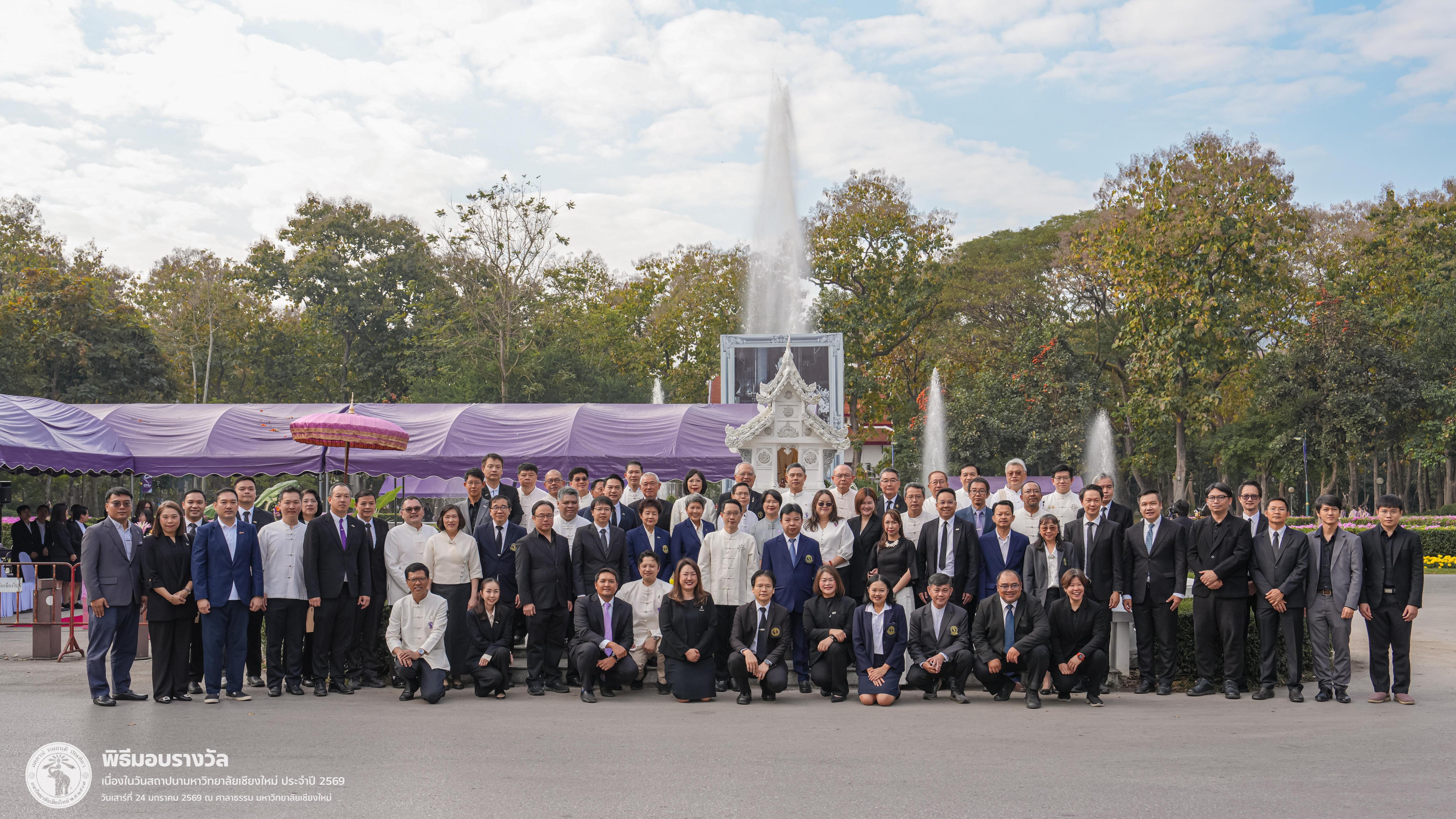 The 61st Anniversary Celebration of Chiang Mai University took place on Saturday, 24 January 2026, from 8:09 a.m. to 12:00 p.m. The ceremony was presided over by Professor Emeritus Dr. Surakiart Sathirathai, President of the Chiang Mai University Council. The program featured a merit-making ceremony to bring prosperity and auspiciousness to the university, a floral wreath offering ceremony to pay tribute to M.L. Pin Malakul, the founder of Chiang Mai University as the first regional university in Thailand, as well as the presentation of Distinguished Administrator Awards, the “Chang Thong Kham” (Golden Elephant) Awards, and honorary plaques to individuals who received Royal Appointments to the rank of Professor.