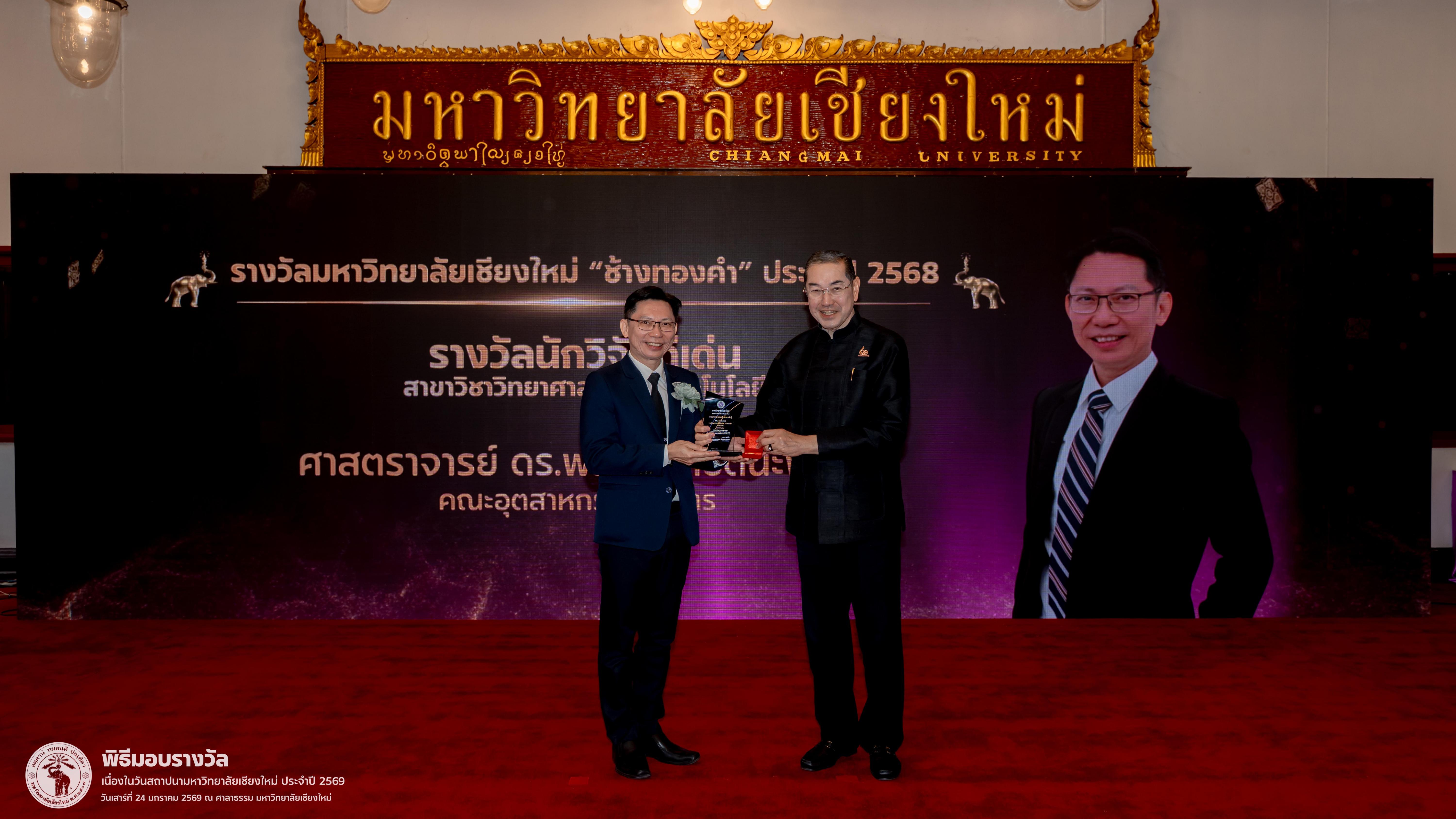 ในโอกาสนี้ คณะผู้บริหารคณะอุตสาหกรรมเกษตร ได้ร่วมมอบช่อดอกไม้แสดงความยินดีกับศาสตราจารย์ ดร.พรชัย ราชตนะพันธุ์ ผู้ได้รับรางวัลมหาวิทยาลัยเชียงใหม่ “ช้างทองคำ” ประจำปี 2568 ประเภทรางวัลนักวิจัย สาขาวิชาวิทยาศาสตร์และเทคโนโลยี เพื่อเชิดชูเกียรติและแสดงความภาคภูมิใจในความสำเร็จอันเป็นแบบอย่างแก่บุคลากรของมหาวิทยาลัยเชียงใหม่