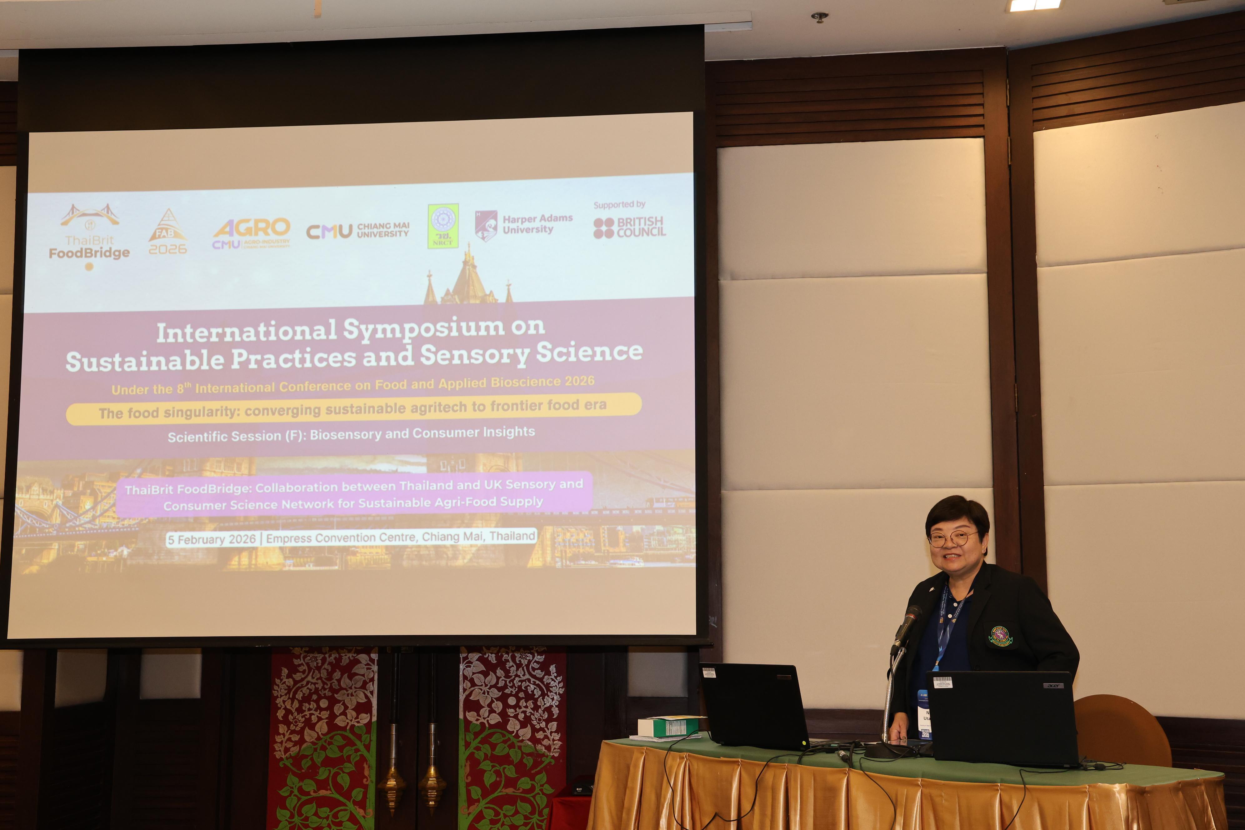 On 5 February 2026, the Faculty of Agro-Industry, Chiang Mai University, organized the International Symposium on Sustainable Practices and Sensory Science as part of the ThaiBrit FoodBridge Project, a collaborative initiative between Thailand and the United Kingdom aimed at strengthening research networks in sensory and consumer science for sustainable agri-food supply systems. The symposium was held under the International Conference on Food and Applied Bioscience (FAB 2026) at Chiang Mai 1 Meeting Room, Empress International Convention Centre, Chiang Mai Province.