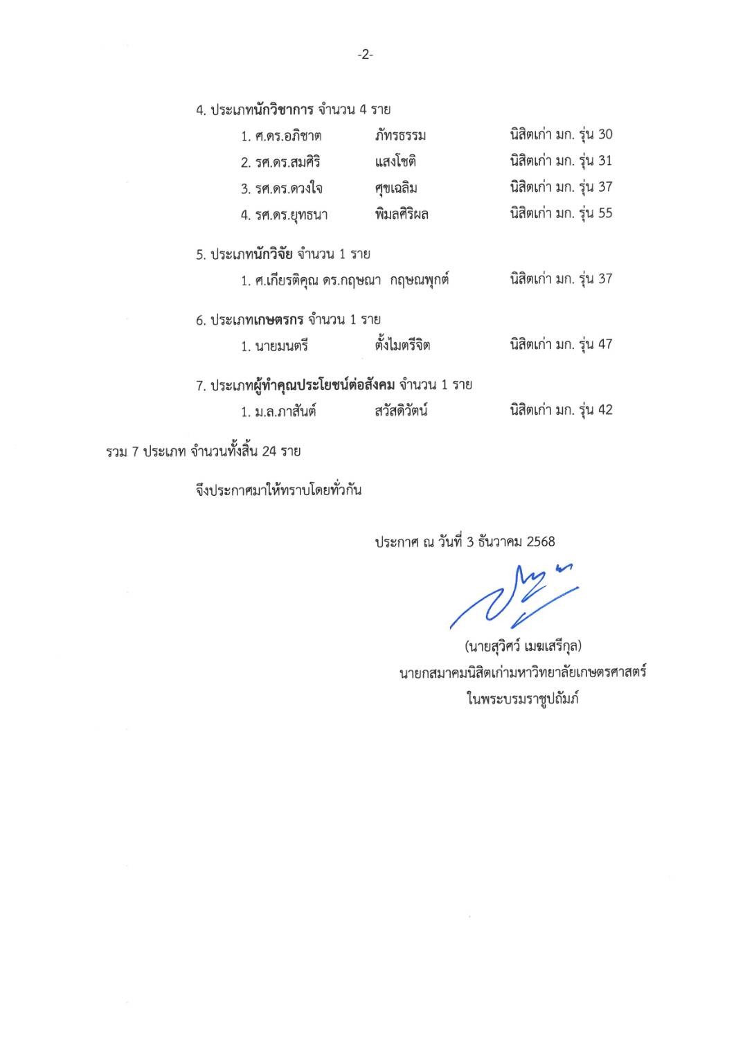 คณะอุตสาหกรรมเกษตร มหาวิทยาลัยเชียงใหม่ ขอแสดงความยินดีอย่างยิ่งแก่ รองศาสตราจารย์ ดร. ยุทธนา พิมลศิริผล ในโอกาสได้รับการคัดเลือกให้เป็น นิสิตเก่าดีเด่น ประจำปี 2569 ประเภท นักวิชาการ นิสิตเก่า มหาวิทยาลัยเกษตรศาสตร์ รุ่นที่ 55 โดย สมาคมนิสิตเก่ามหาวิทยาลัยเกษตรศาสตร์ ในพระบรมราชูปถัมภ์