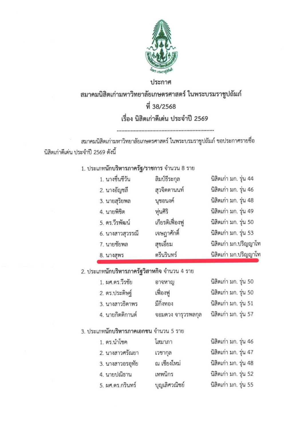Dr. Yuthana is an esteemed alumnus of Kasetsart University, Class 55, and this prestigious recognition is conferred by the Kasetsart University Alumni Association Under the Royal Patronage.