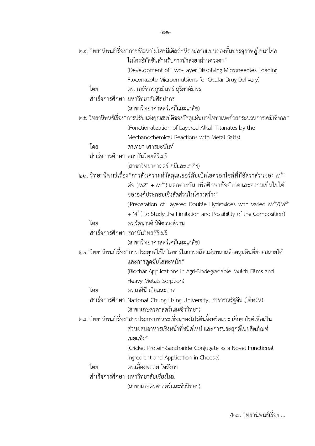 คณะอุตสาหกรรมเกษตร มหาวิทยาลัยเชียงใหม่ ขอแสดงความยินดีกับ ดร.เอื้องพลอย ใจลังกา หัวหน้ากลุ่มยุทธศาสตร์และแผนงาน กองผลิตภัณฑ์ปศุสัตว์ ที่ได้รับรางวัลผลงานคุณภาพ NRCT Quality Achievement Award ในวิทยานิพนธ์เรื่อง“สารประกอบพันธะเชื่อมของโปรตีนจิ้งหรีดและแซ็กคาไรด์เพื่อเป็นส่วนผสมอาหารเชิงหน้าที่ชนิดใหม่ และการประยุกต์ในผลิตภัณฑ์เนยแข็ง” (Cricket Protein-Saccharide Conjugate as a Novel Functional Ingredient and Application in Cheese) (สาขาเกษตรศาสตร์และชีววิทยา) โดยมี รองศาสตราจารย์ ดร. ยุทธนา พิมลศิริผล เป็นอาจารย์ที่ปรึกษา